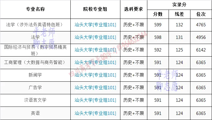 汕头大学2025年在四川本科批B段历史类设1个专业组,101组共8个专业,部分专业下降。