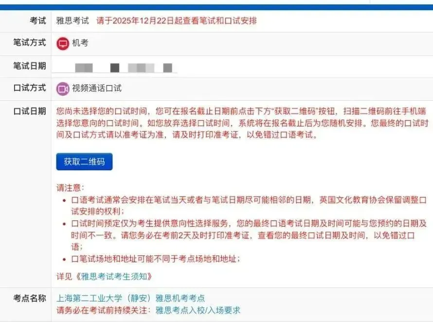 最终依据:口语考试确切时间以准考证为准,预约时间可能调整。
