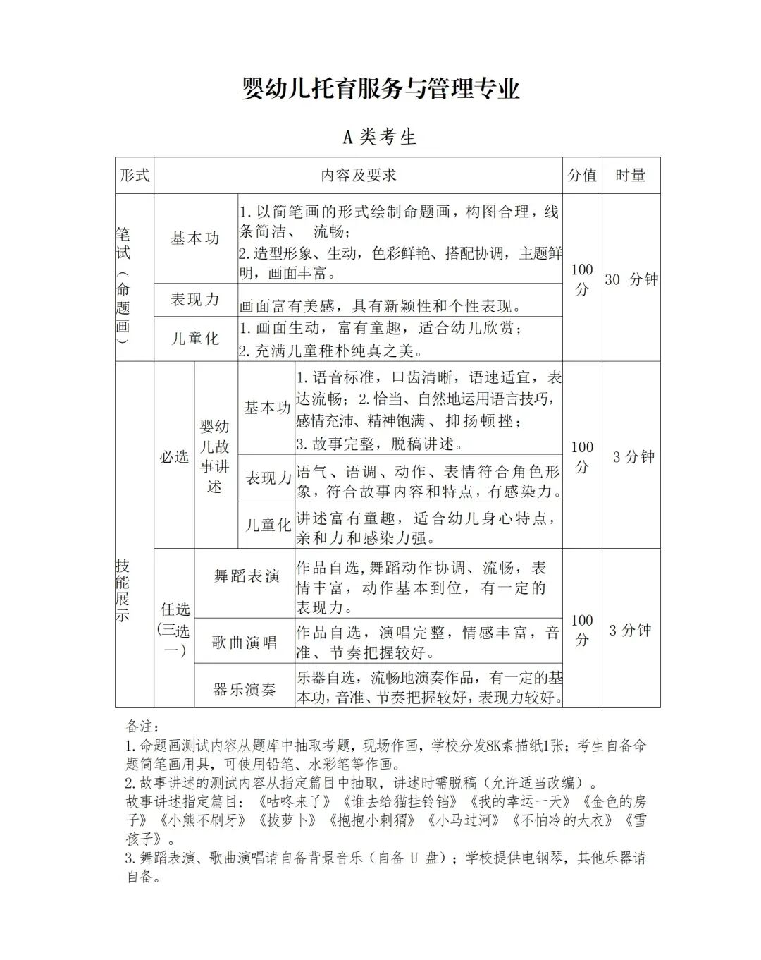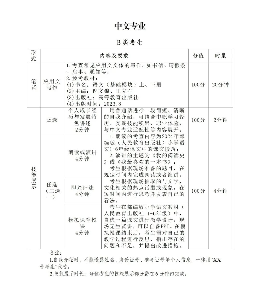 1.专业组一的专业(婴幼儿托育服务与管理、中文)采取笔试+技能展示的方式进行考察。