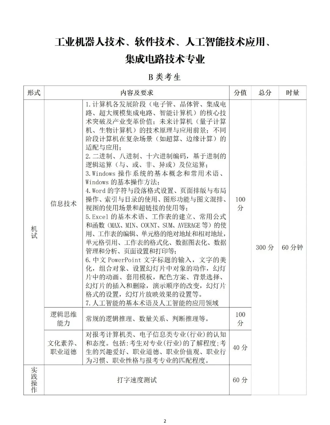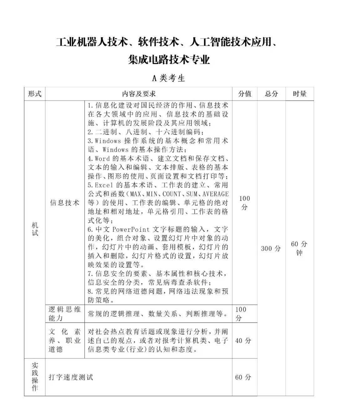 3.专业组四的专业(工业机器人技术、软件技术、人工智能技术应用、集成电路技术)采取机试+实践操作方式进行考察。