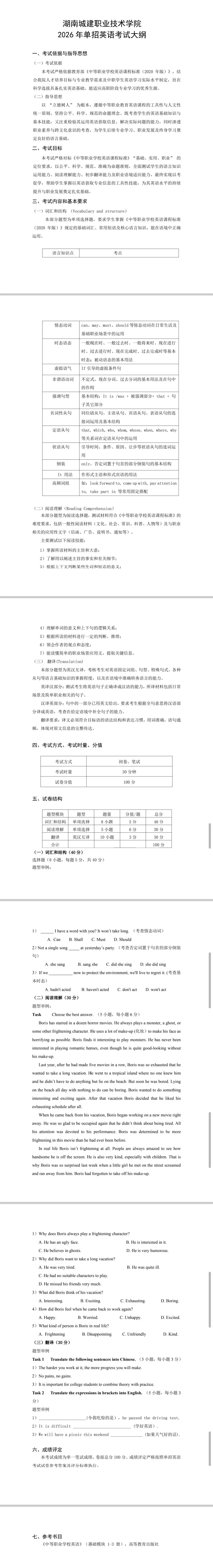 【考试大纲】2026长沙轨道交通职业学院单招考试大纲
