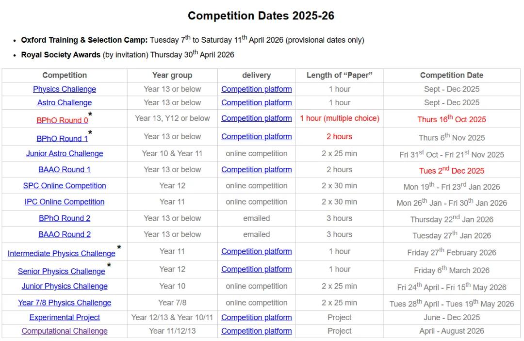 BPHO物理竞赛分为13种,针对英国Y10-Y13(国内9-12年级)的学生开设了不同级别和类型。