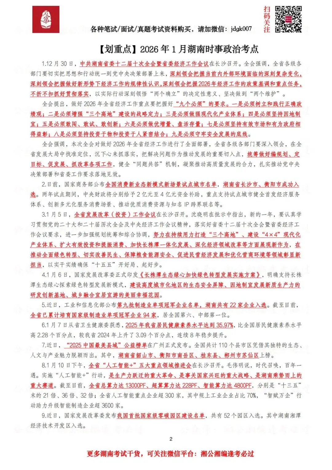 【湖南时政考点】内含2025年4月—2026年1月湖南时事政治考点,全部为湖南地方时政知识点,包含中共湖南省委十二届九次全会暨省委经济工作会议、中共湖南省委十二届九次全会、2025年湖南省委一号文件、总书记在湖南考察等,重点加红并加下划线,共计42页;