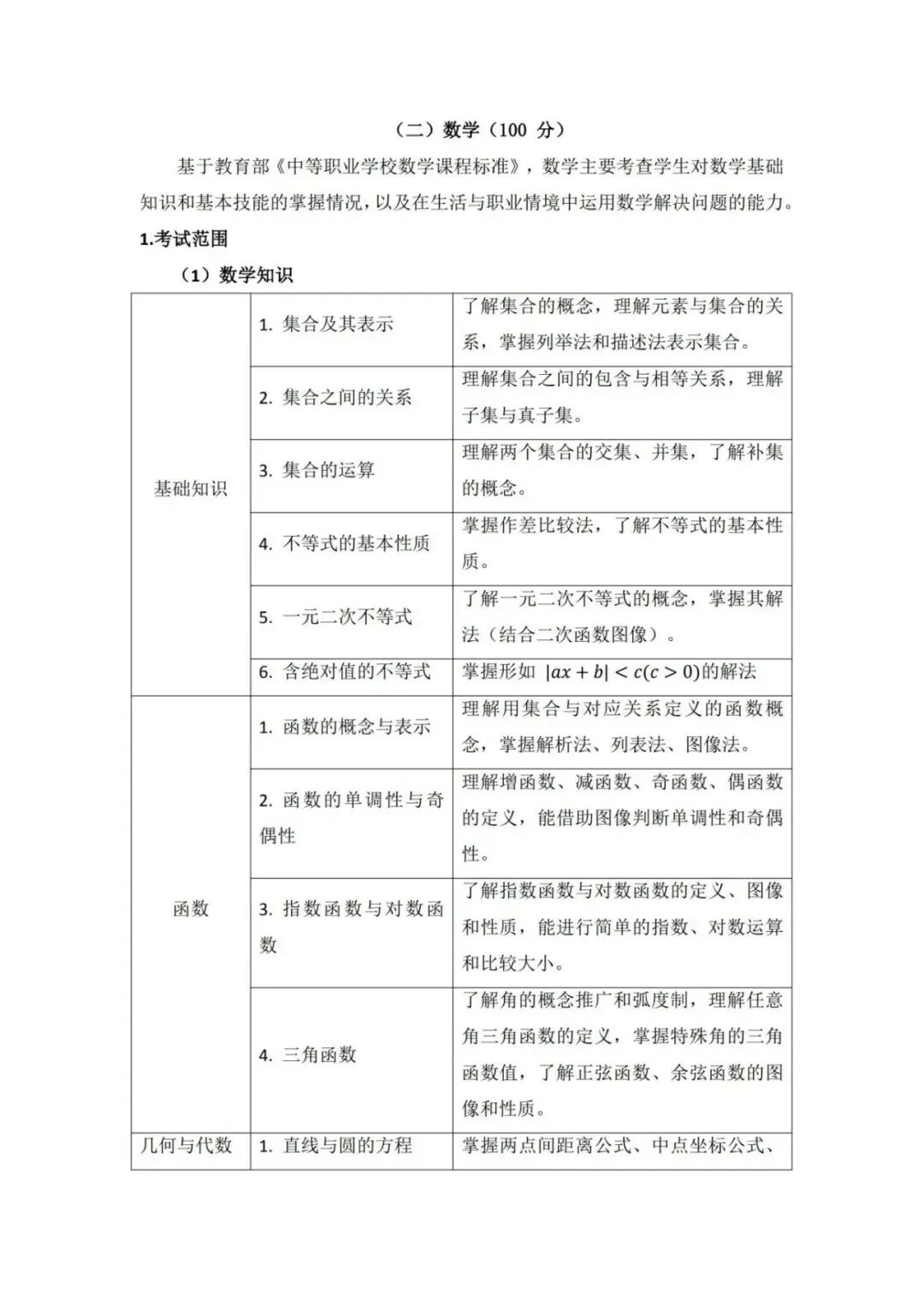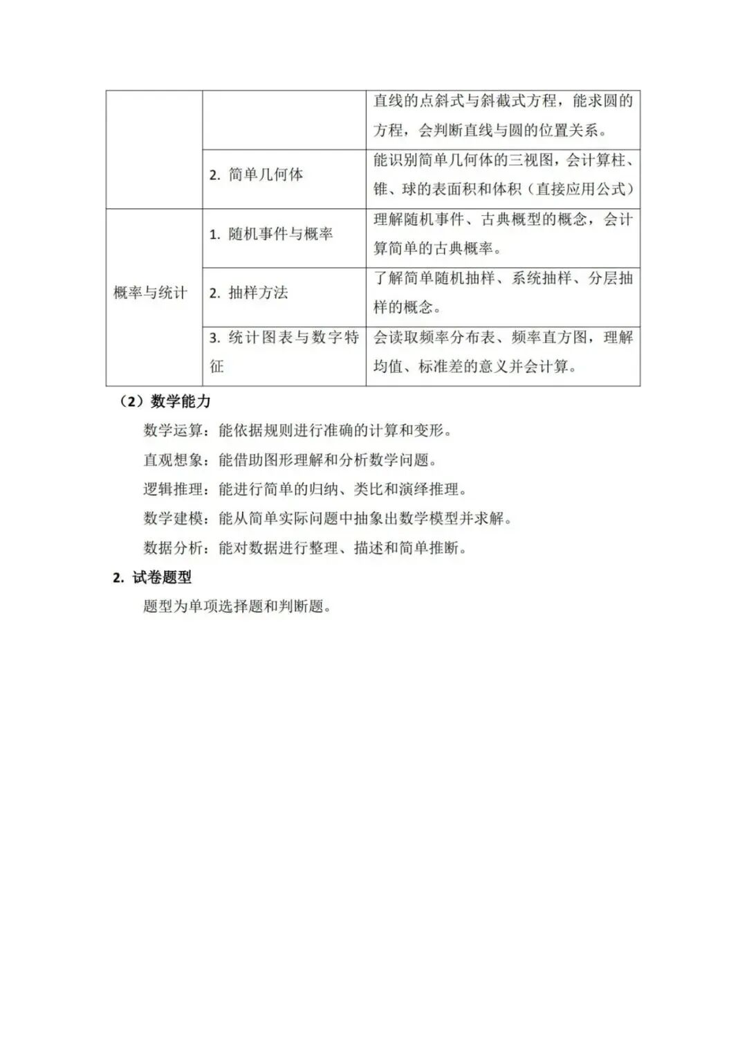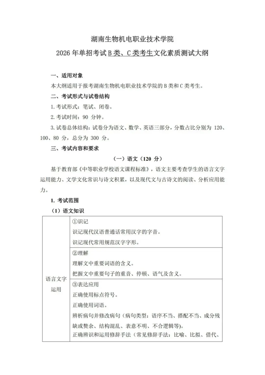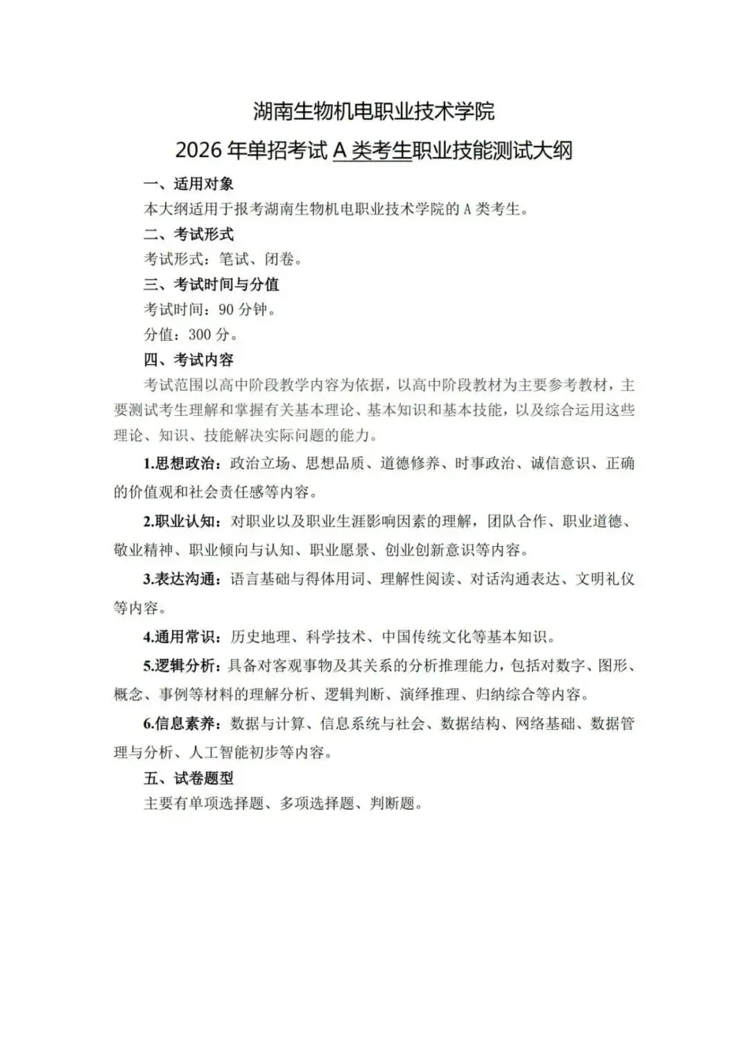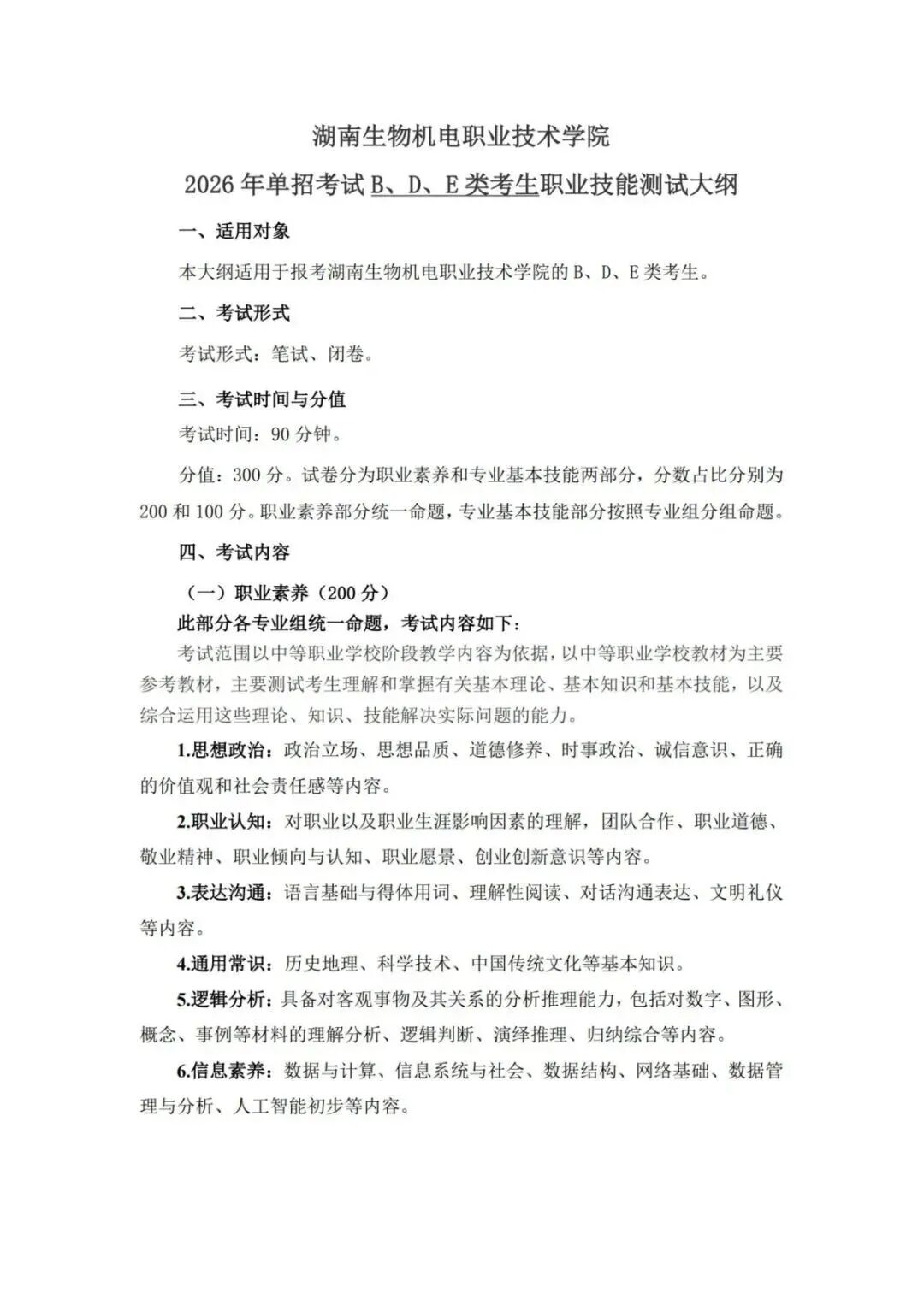 2026年单招考试大纲