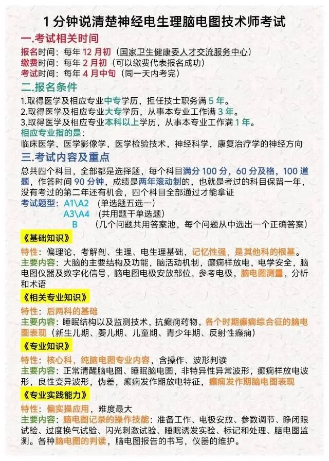 5️⃣神经电生理脑电图技术考试和脑电图专业考试不要混淆了,我之前也是分不清。前者是卫生资格证书,后者是中国抗癫痫协会+国家医学考试中心联合的行业水平认证。