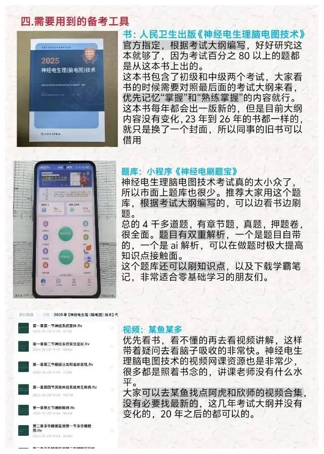 关于神经电生理脑电图技术师的考试内容我已经整理在上面的图片上了,希望可以帮到大家,加油✊