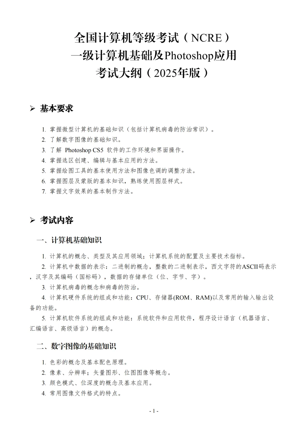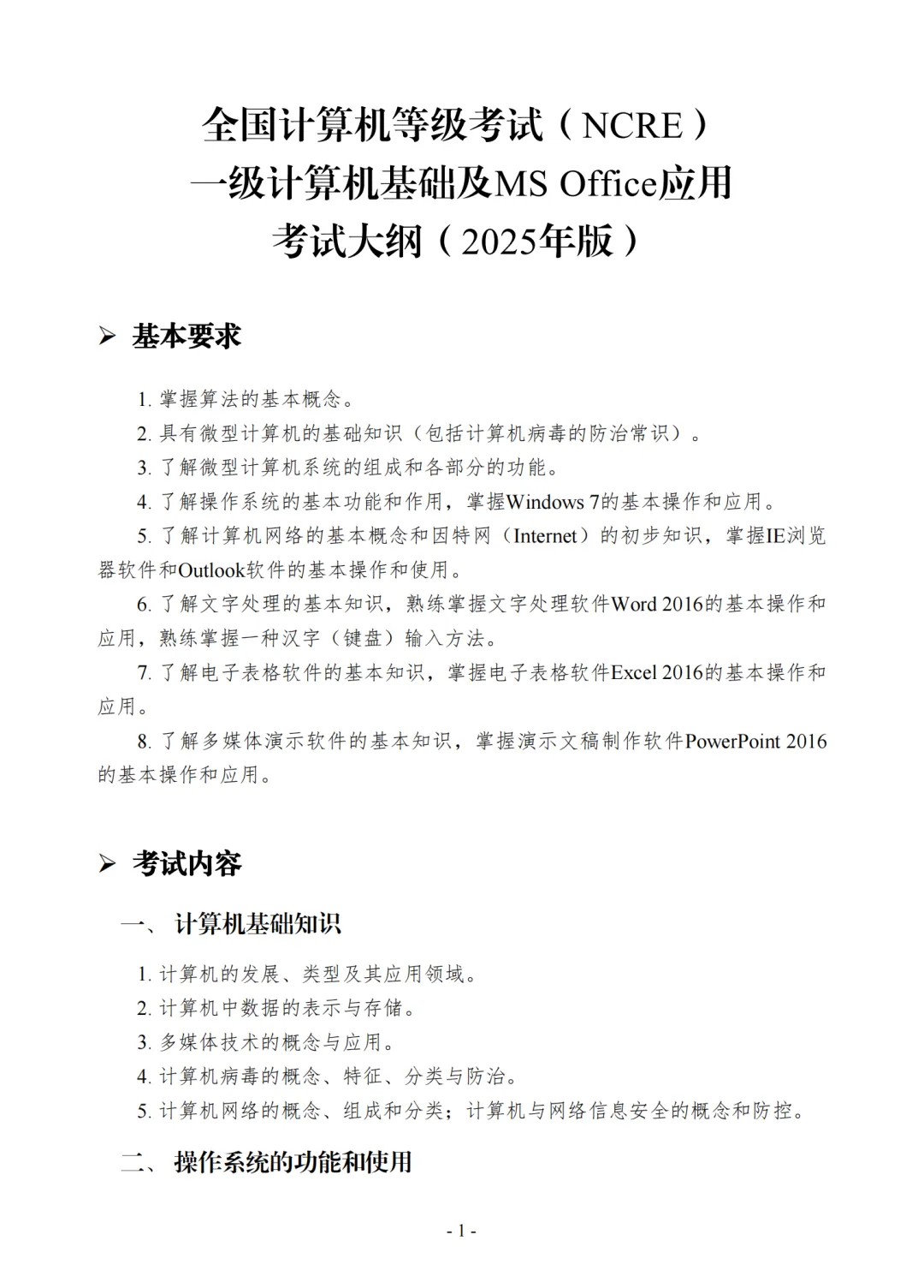 >2025年全国计算机等级考试一级考试大纲
