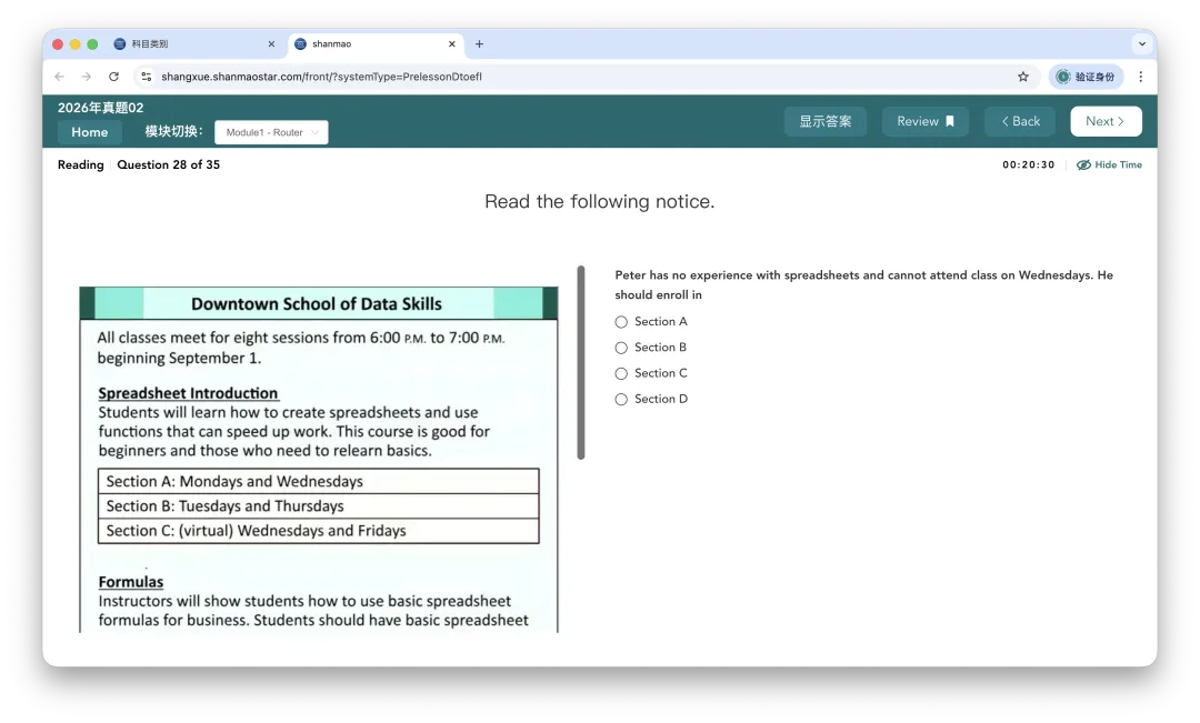 今日,备受瞩目的新托福首场正式考试顺利开考,尚学堂老师们也参加了今日的上午场考试。虽然前两场的考试,尚学堂老师都参加过。但毕竟是首场正式对外的考试,从难度和题型设置可能与前两场有所区别。果不其然,考试结束后,老师们第一时间反馈了今日的考试情况。总体来说,难度相较于前两场有所提升,但整体来说较为适中(毕竟之前两场过于简单),有个别题目较难。老师们也整理了此次考试的考情回顾,让我们看看新托福首场正式考试的具体情况。#1