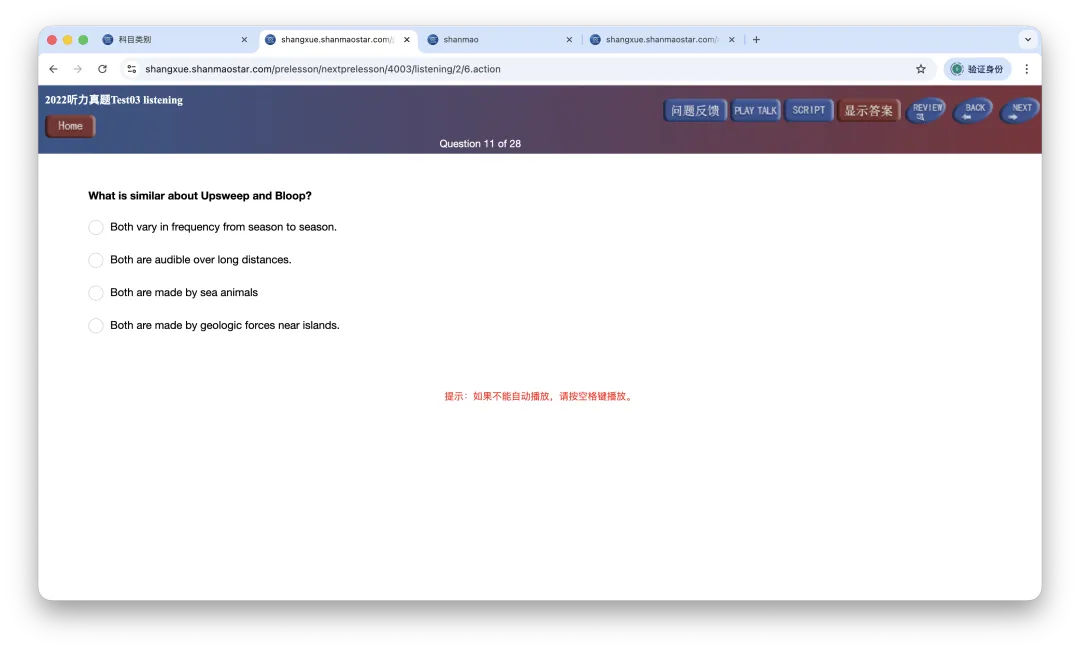 对话回复:这次考试中,非直接回答的比较多,考验学生的快速辨音能力;