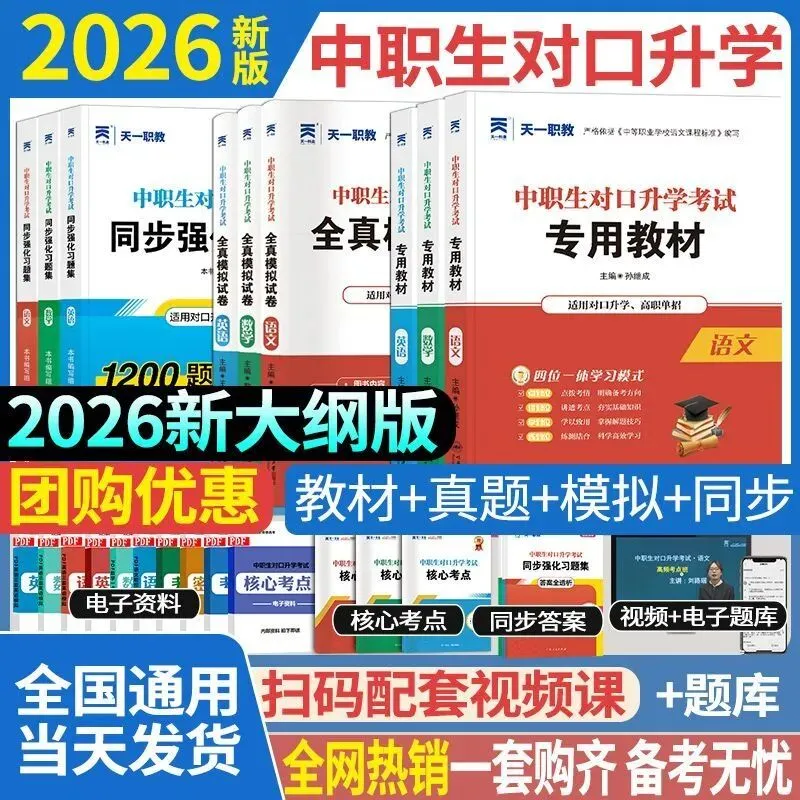 >中职生对口升学2026新版高职单招语文数学英语教材全真模拟必刷题