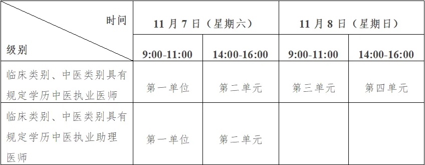 2026年在医师资格考试临床类别、中医类别具有规定学历中医实施医学综合考试第二试。在安徽考区已报考当年医师资格考试,实践技能考试合格成绩在有效期内,未通过医学综合考试第一试且无违纪违规行为的考生,或医学综合考试第一试缺考及未缴纳考试费的考生,可报名参加医学综合考试第二试,考试时间如下: