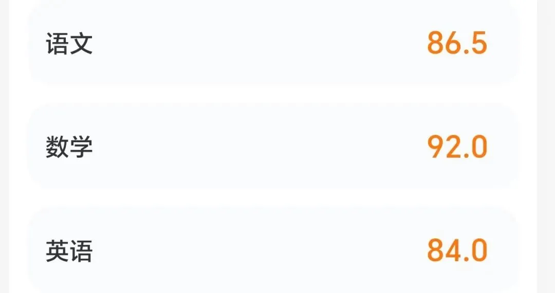 英语方面还是84分,这个分数我并不惊讶,他词汇课文还是不熟悉。