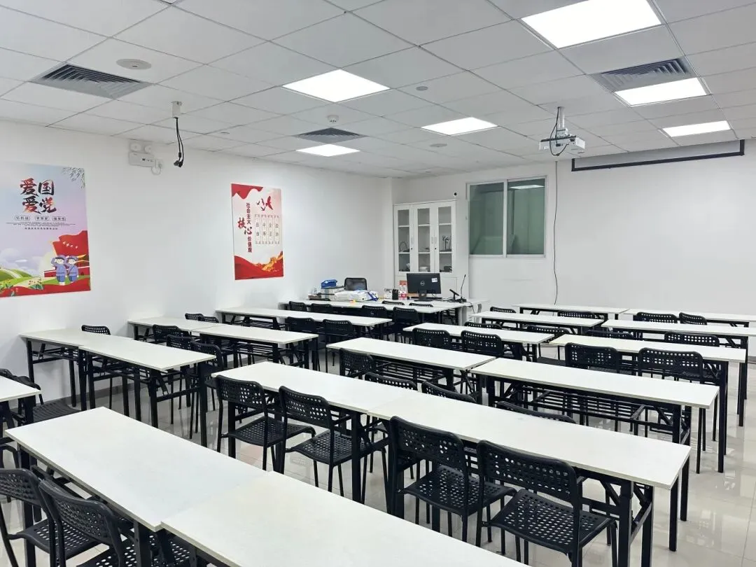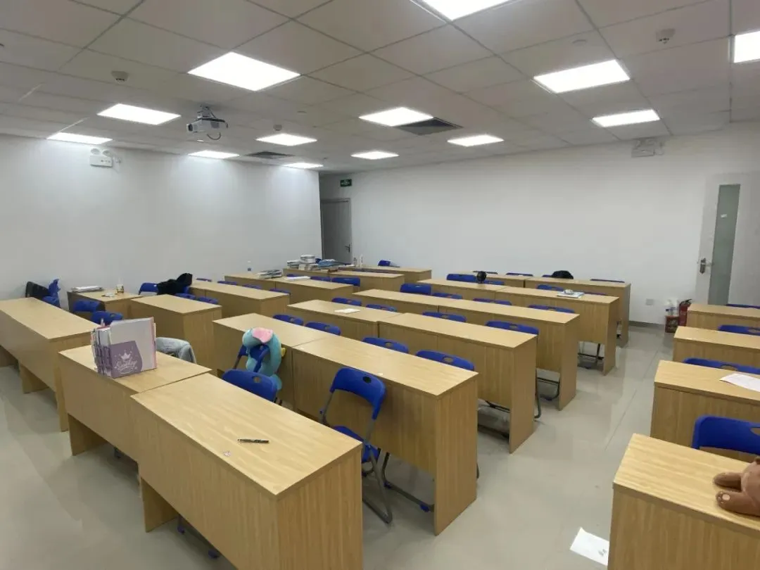 教室内宽敞明亮,各类型功能齐全,配有插座、空调、插座等设施,满足个性化学习需求。