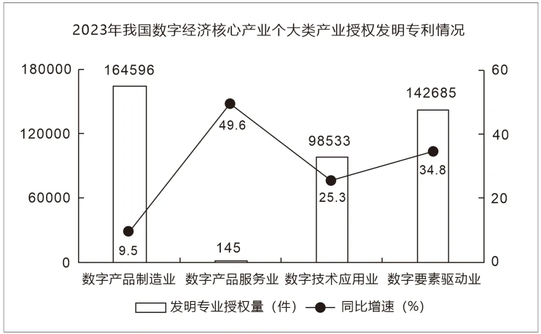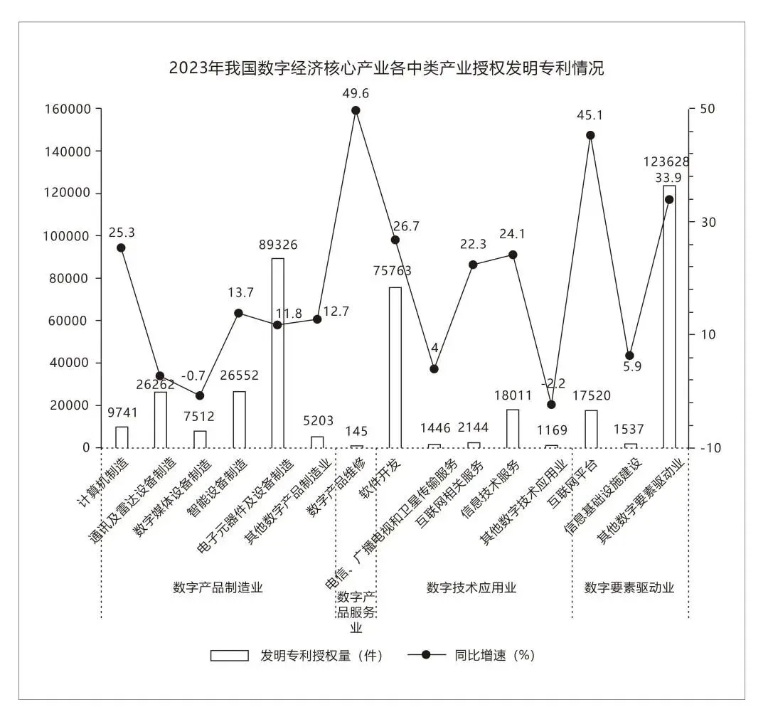 A.2023年,我国数字经济核心产业发明专利授权量同比增长超过20%