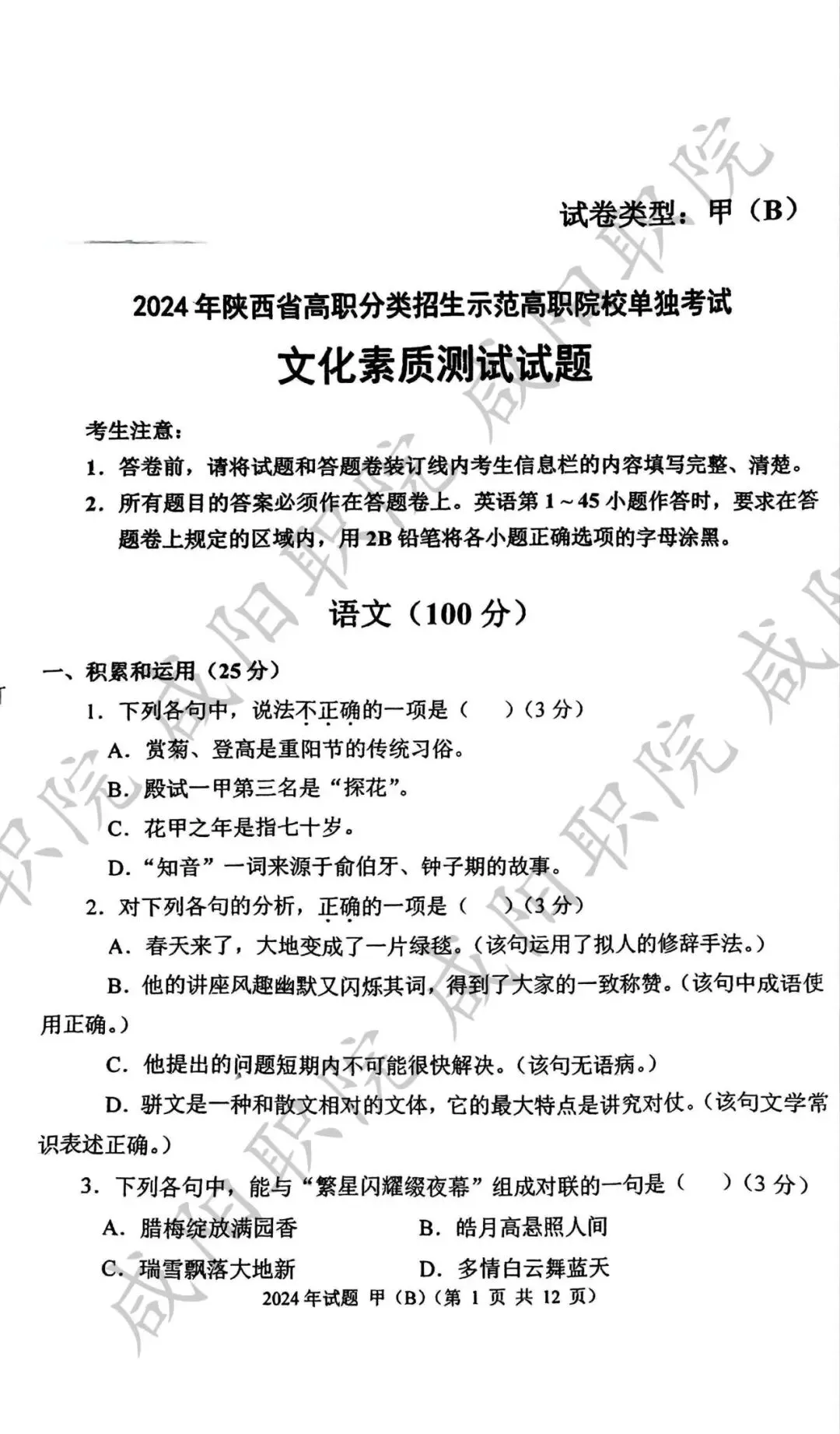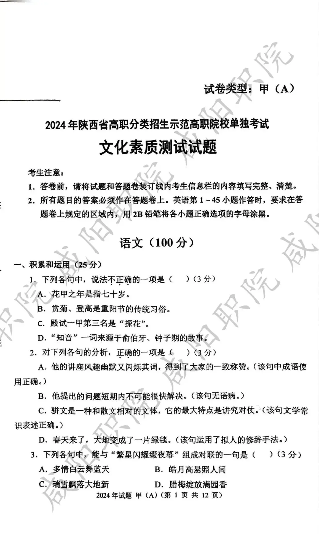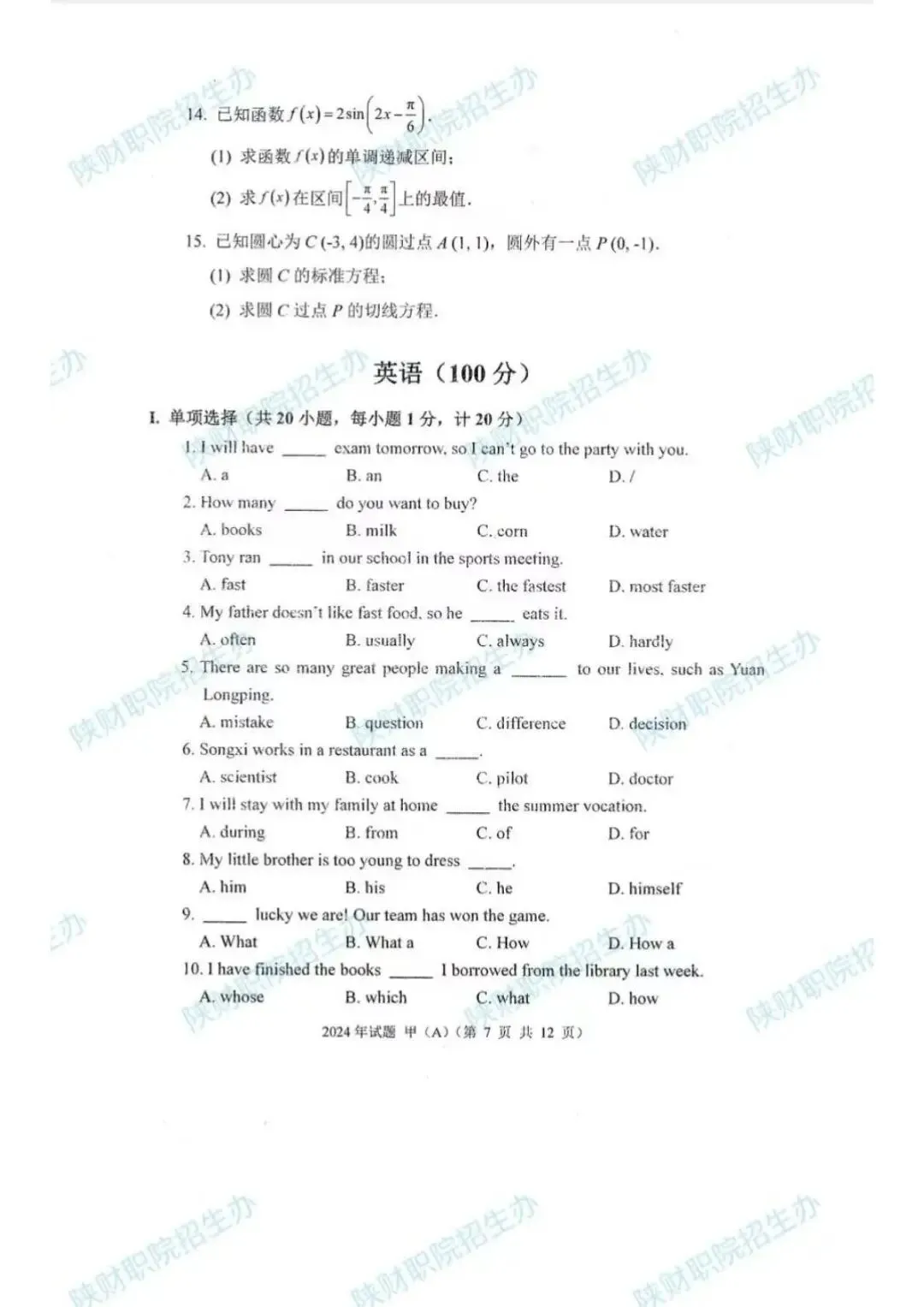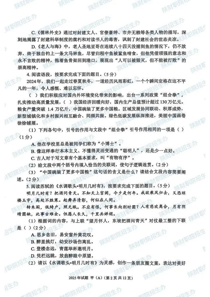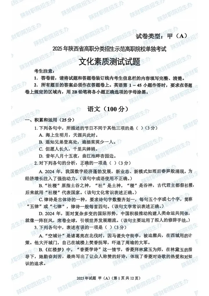 2024年甲卷-普招生