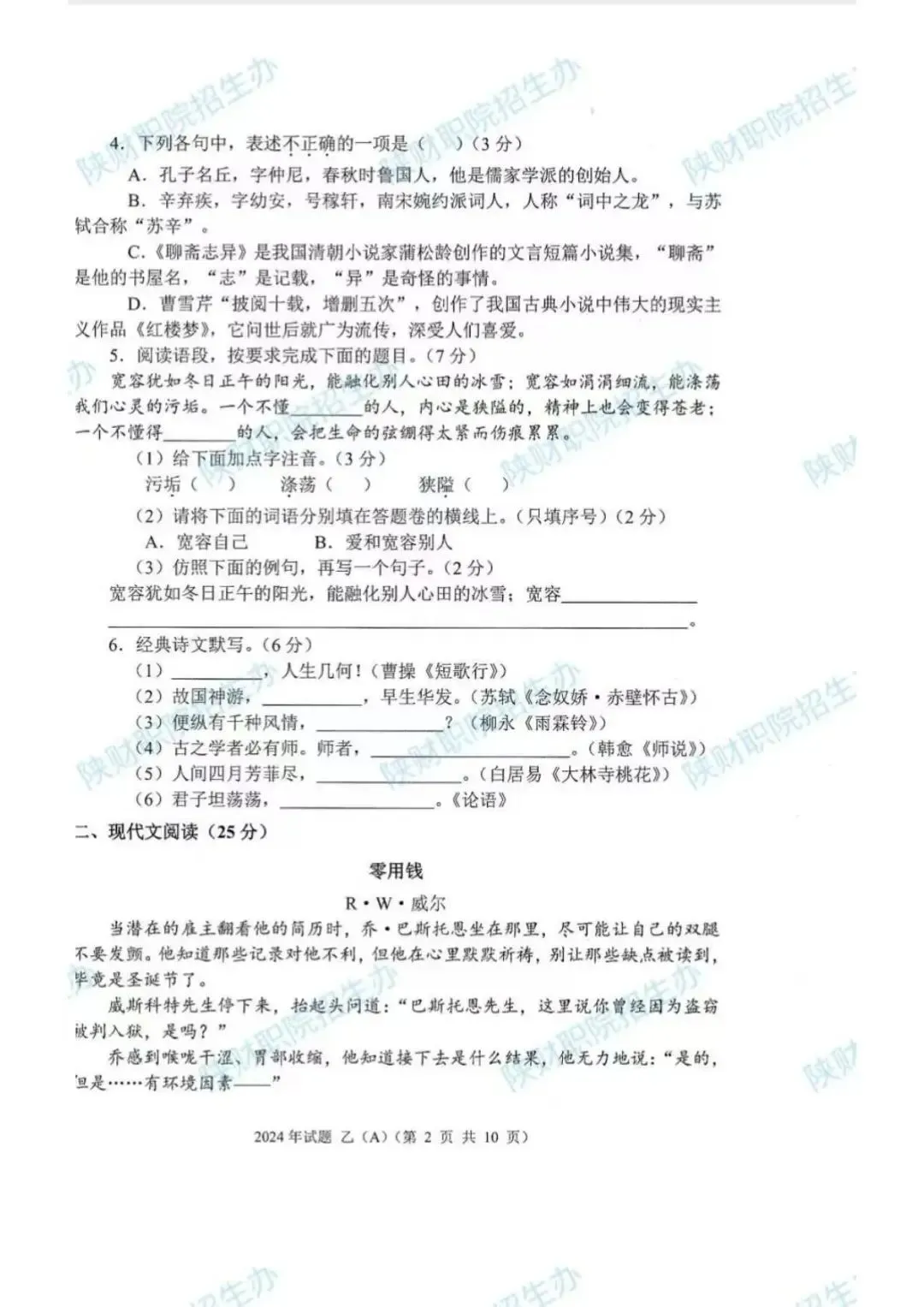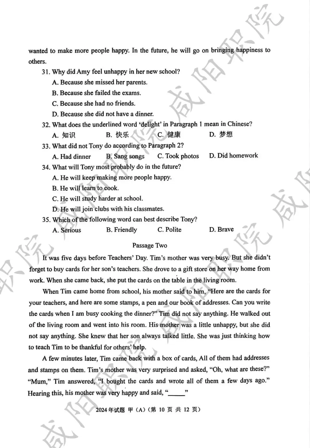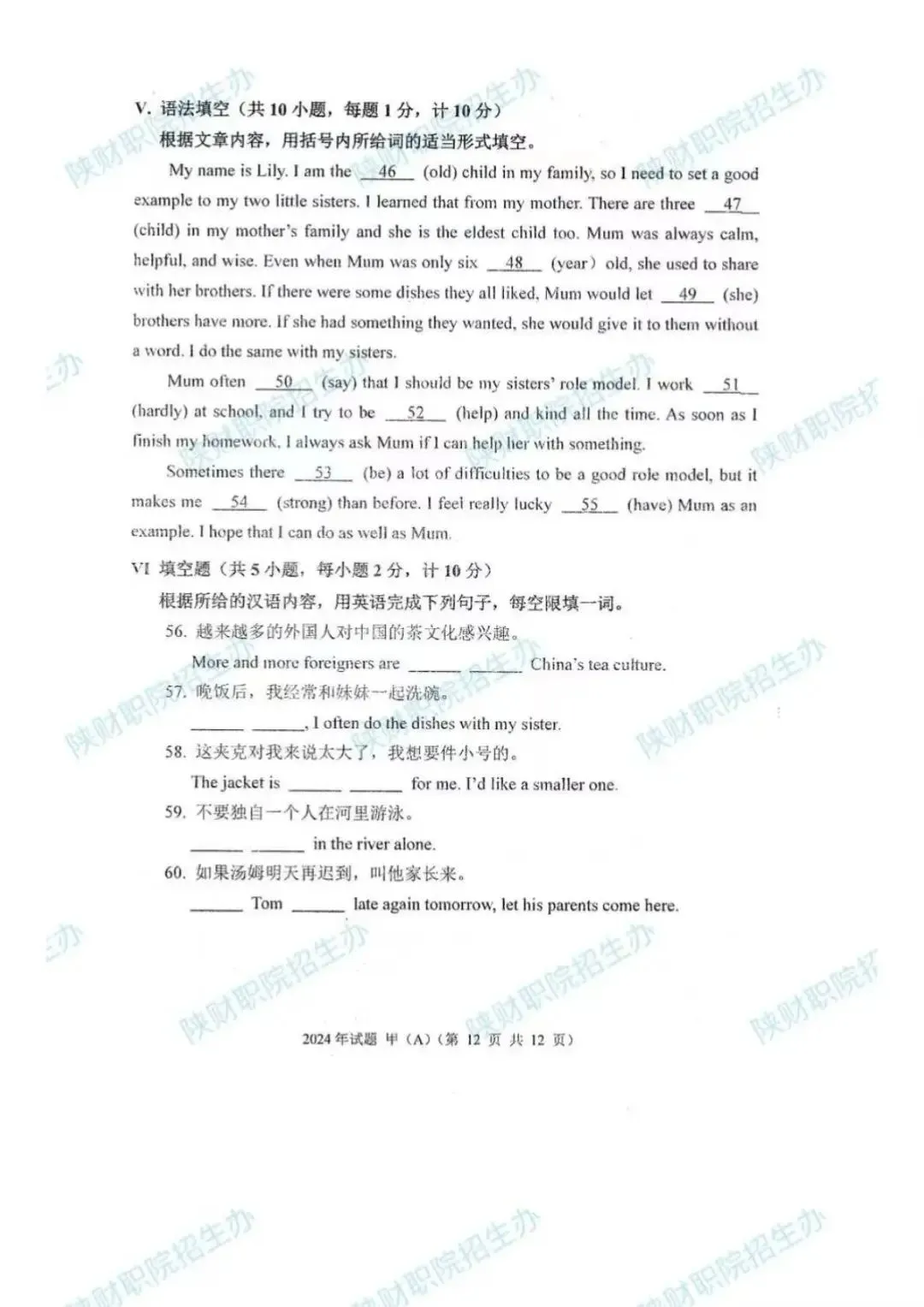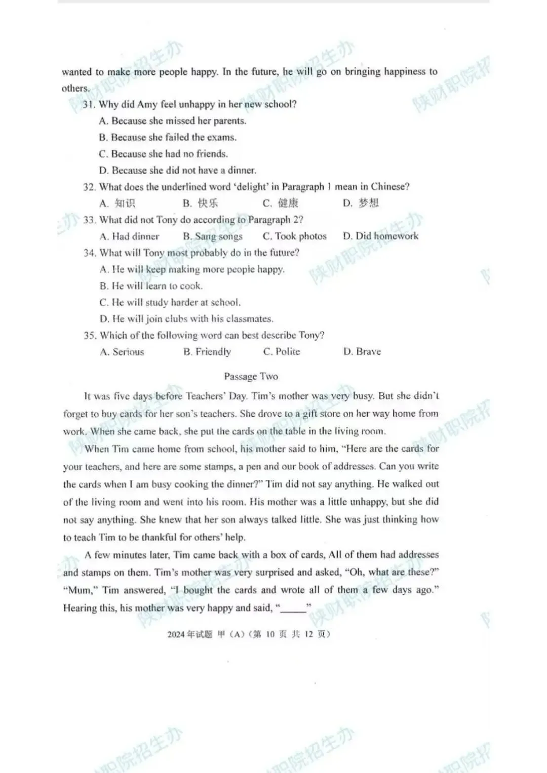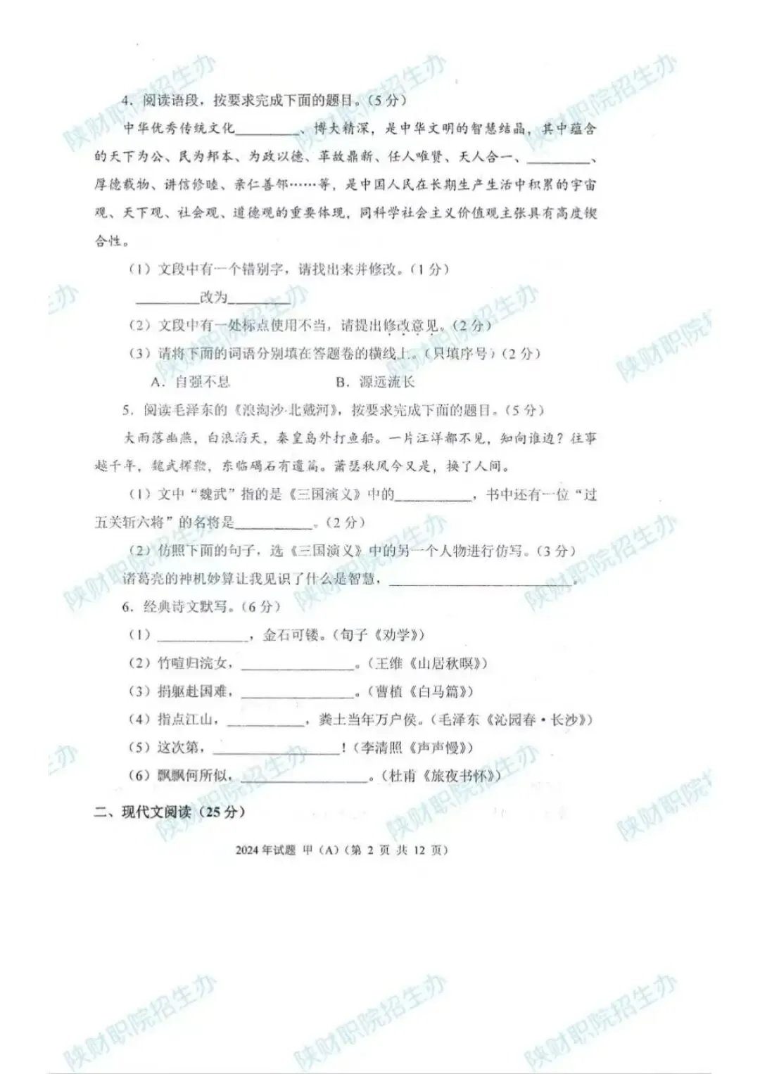 2024年甲卷-普招生