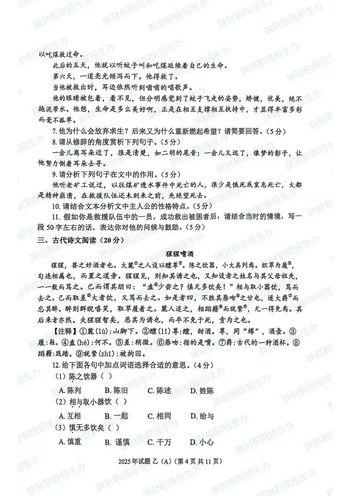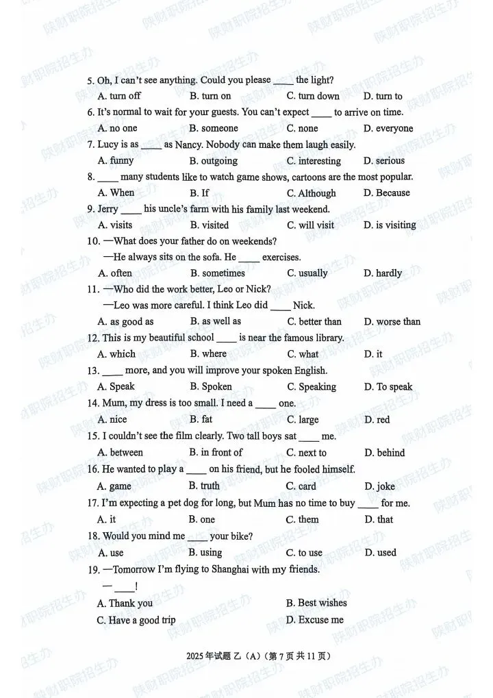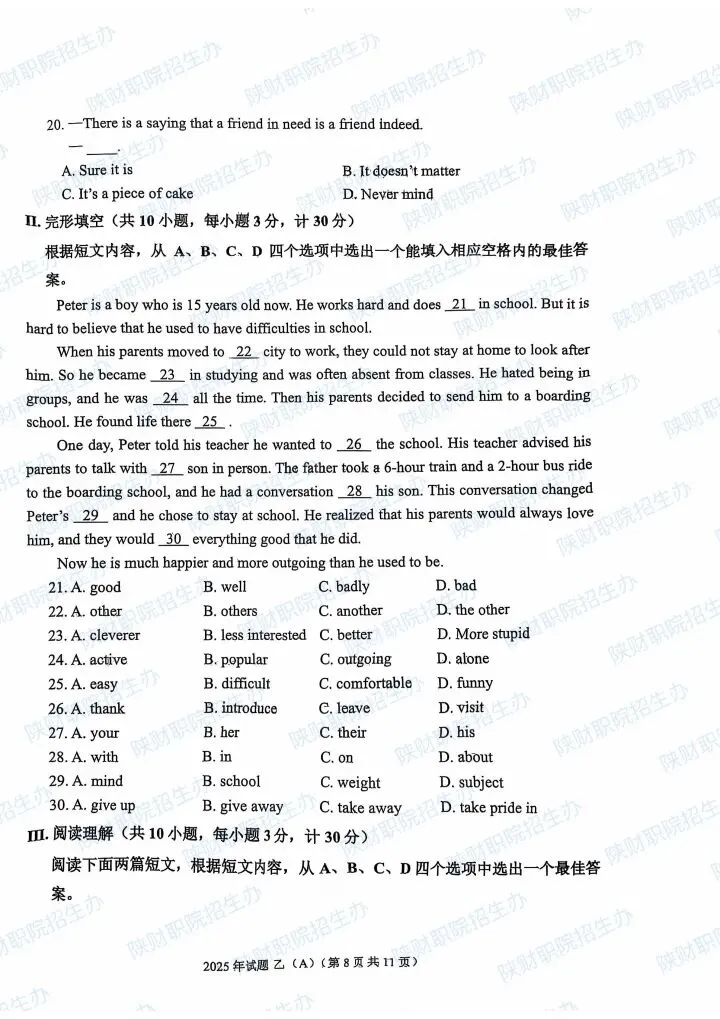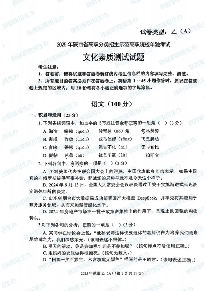 2025年乙卷—三校生