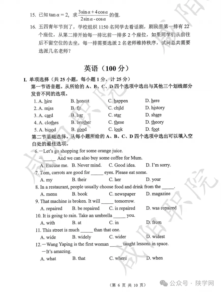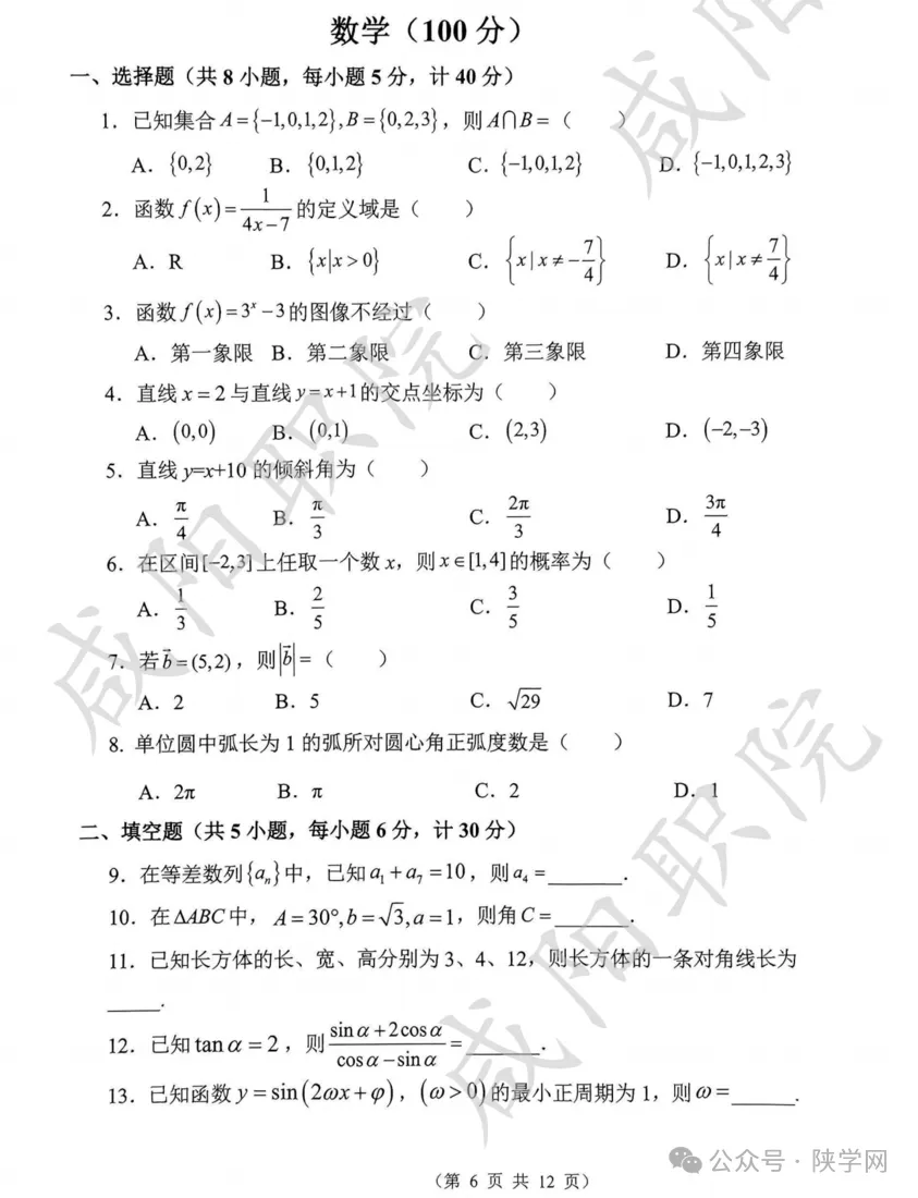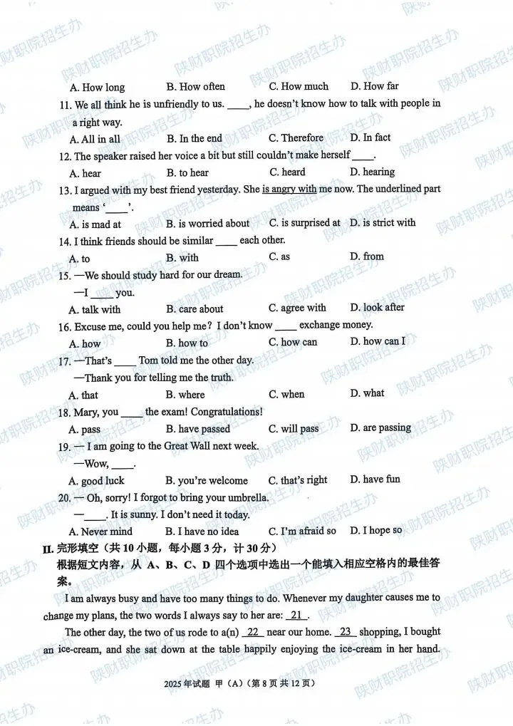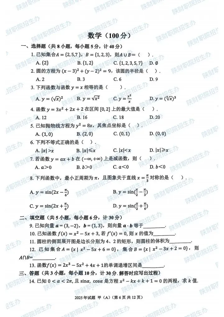 2025年乙卷—三校生