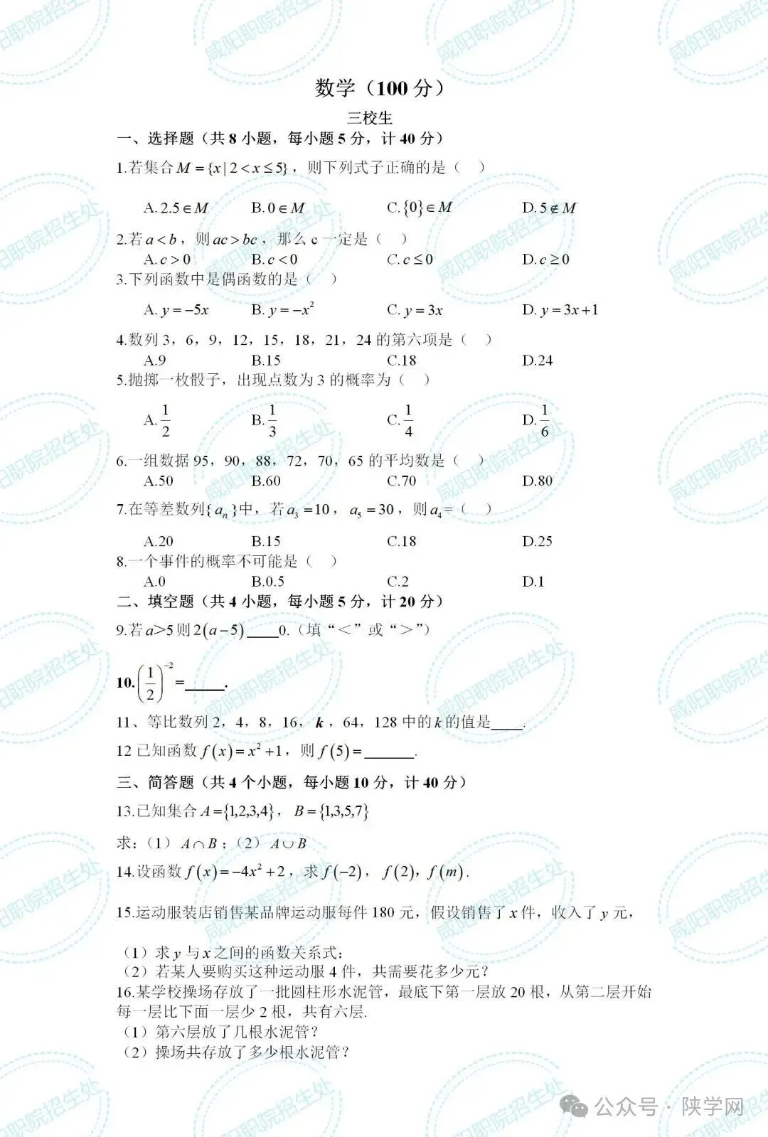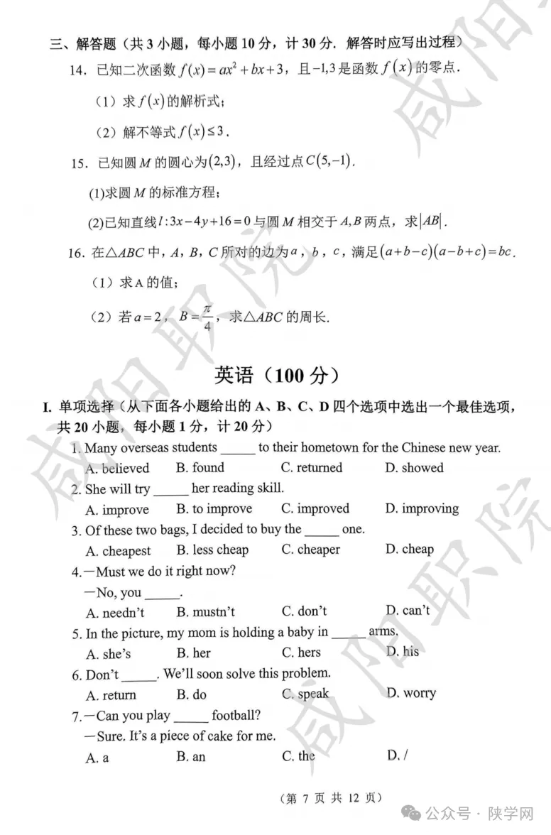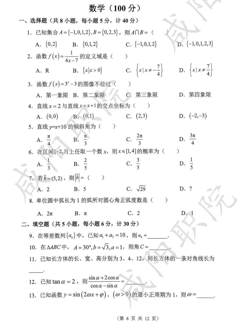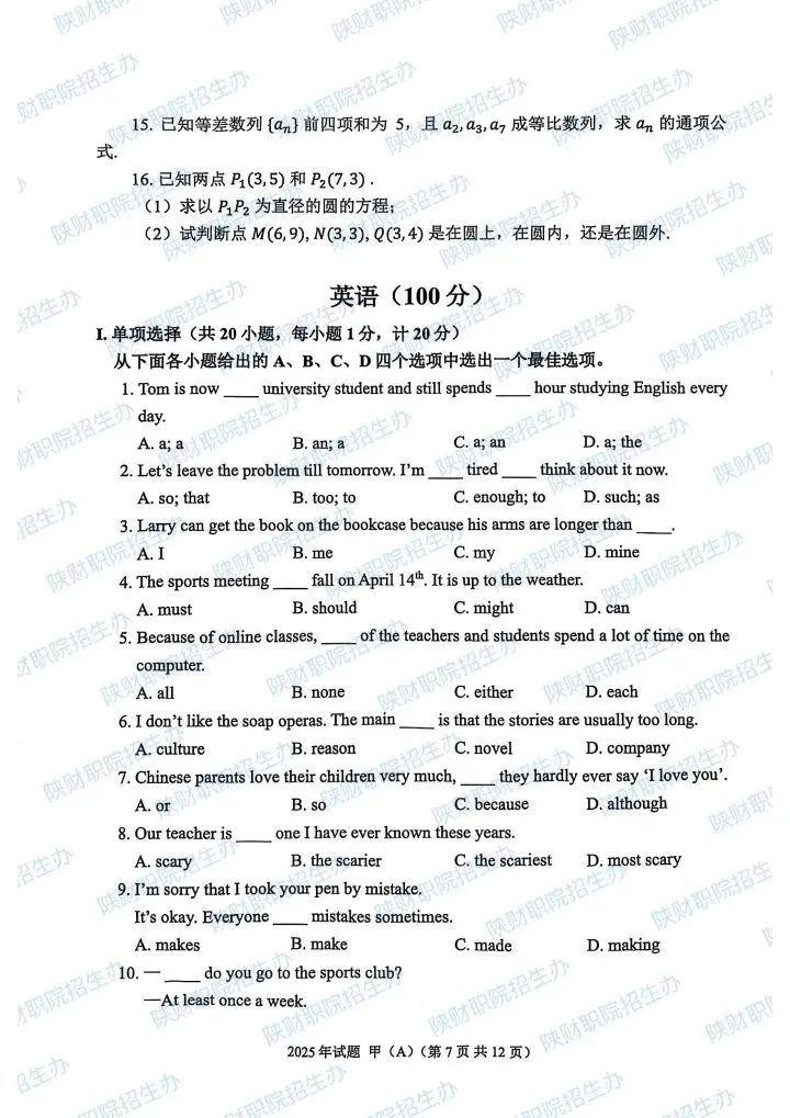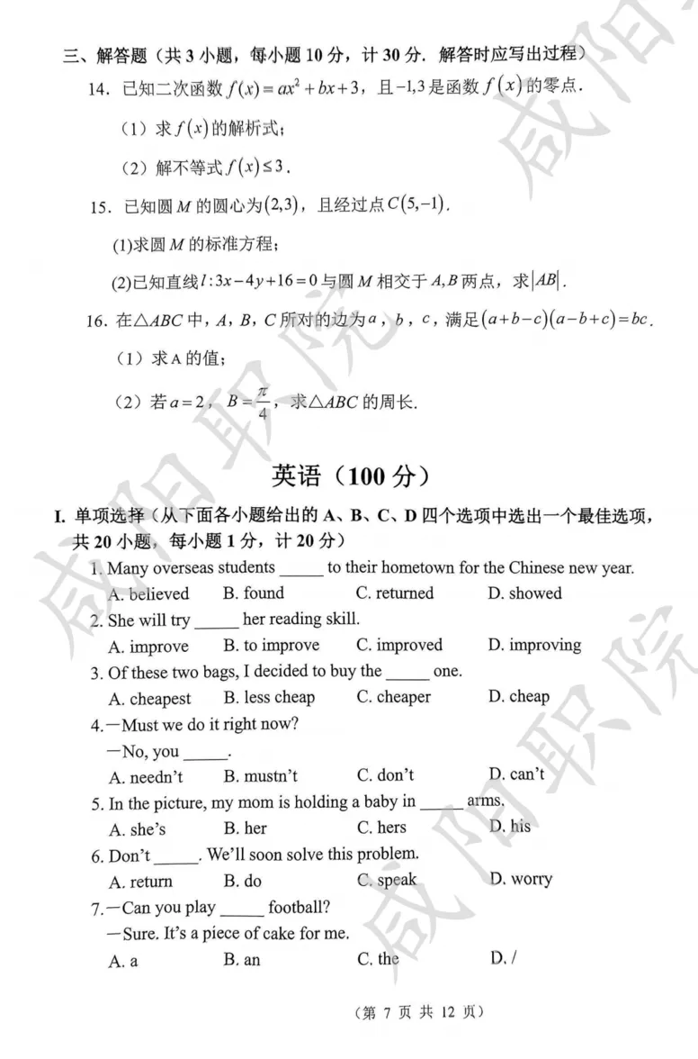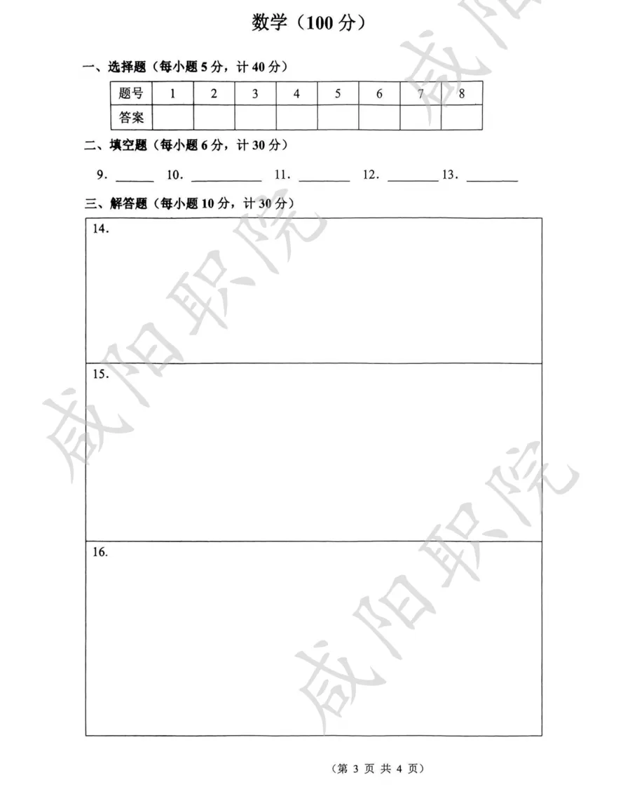 三校生试卷及答案