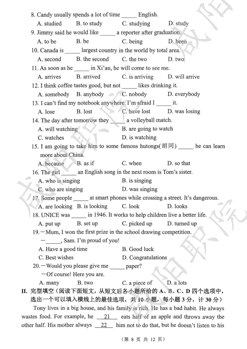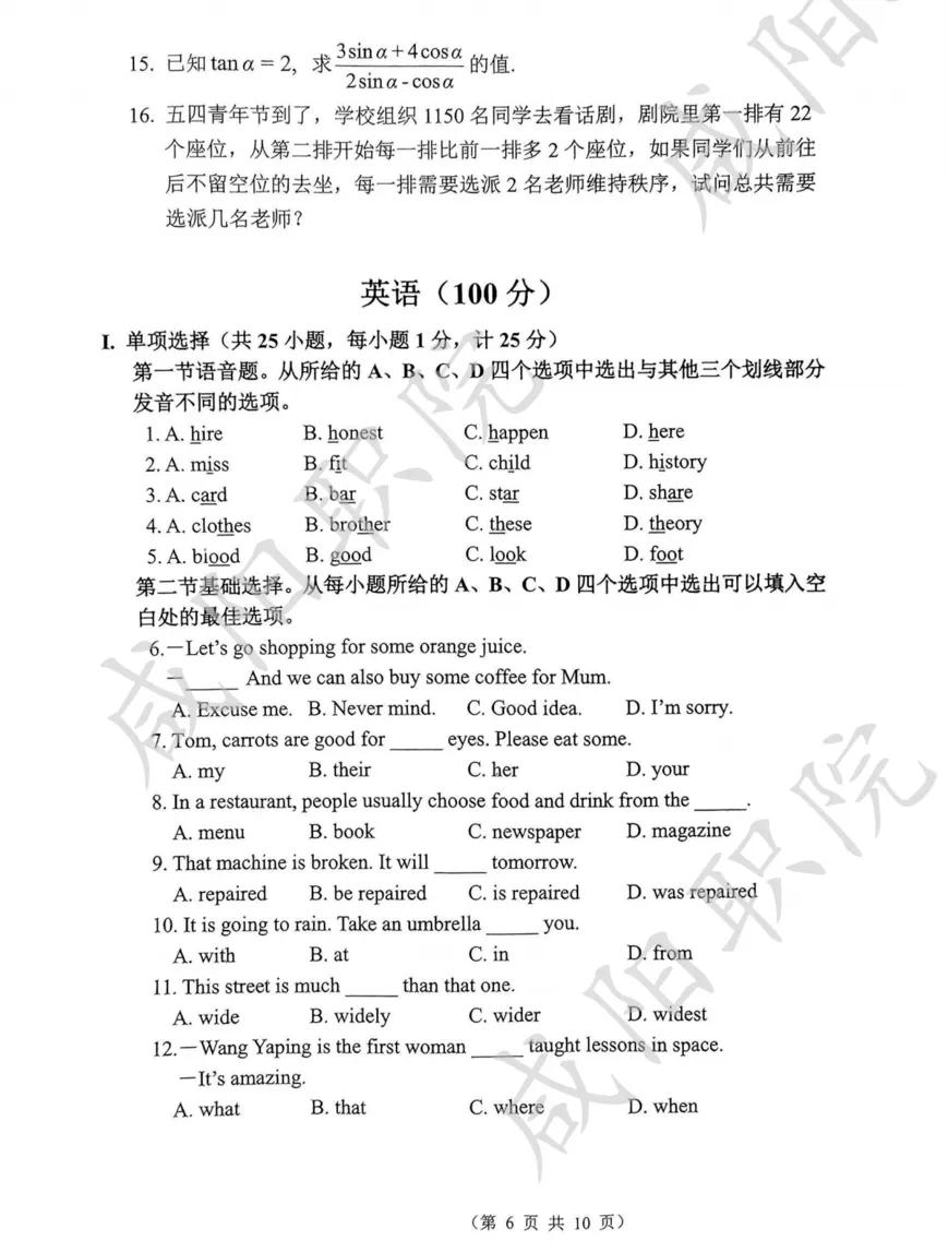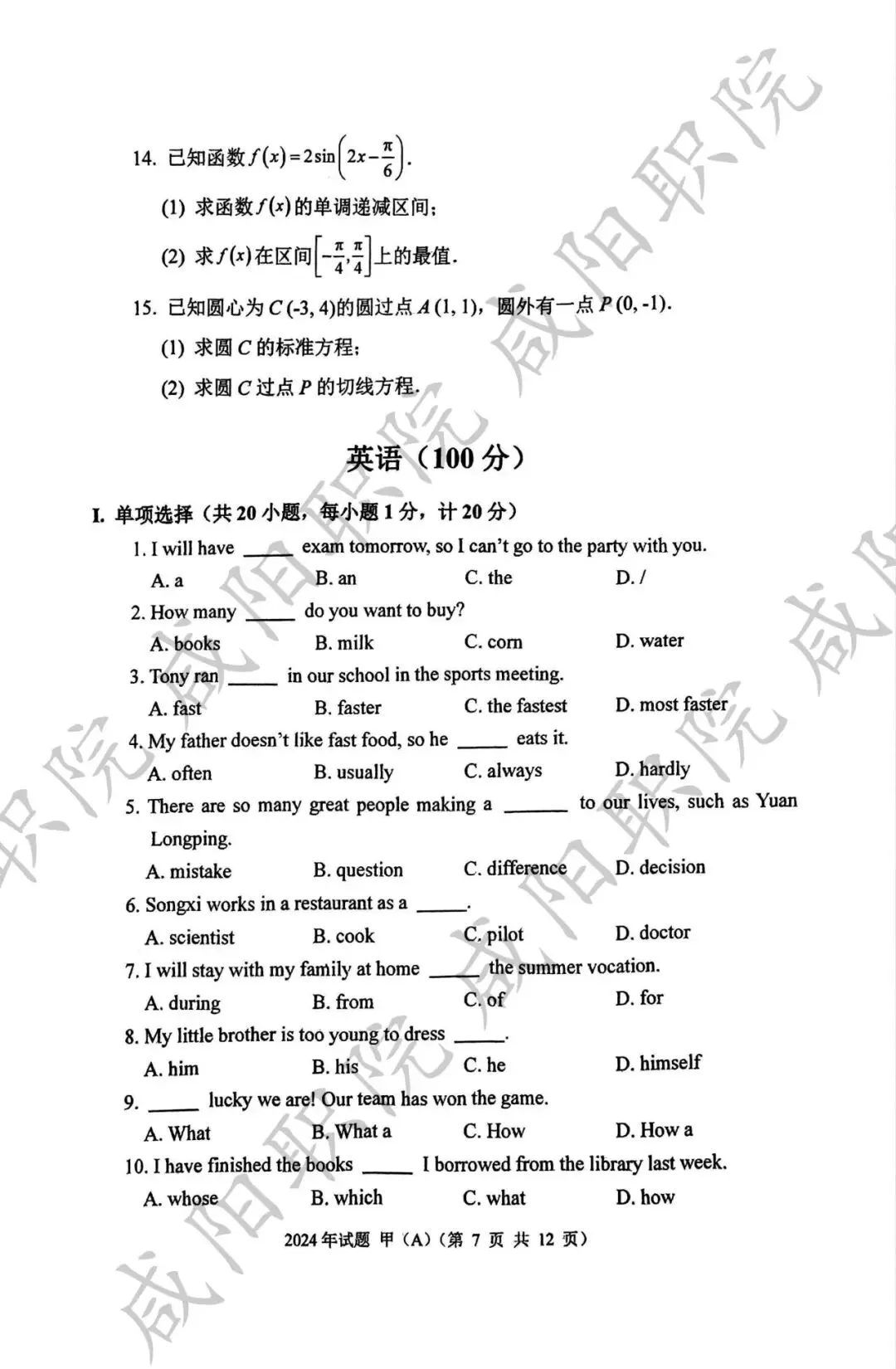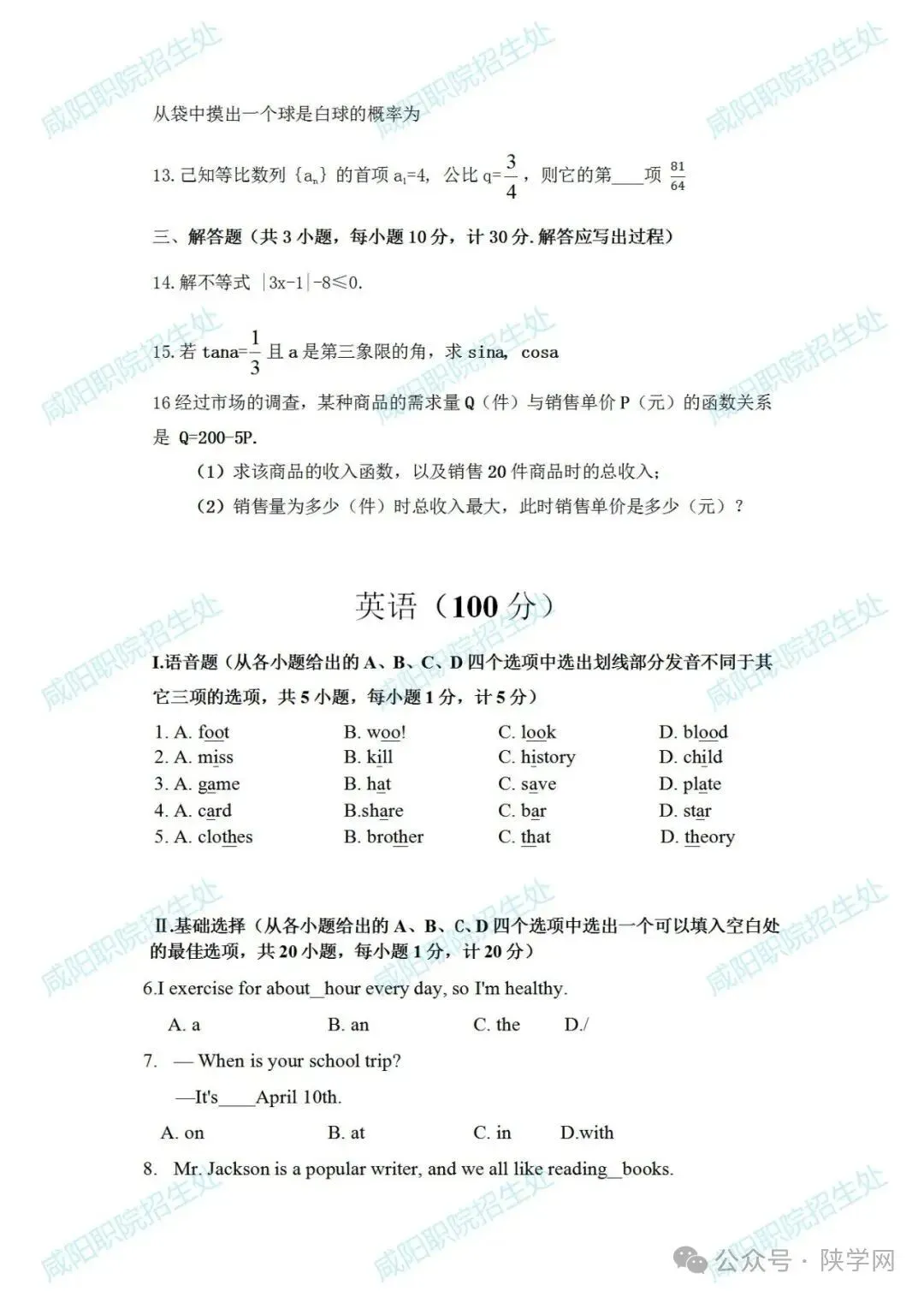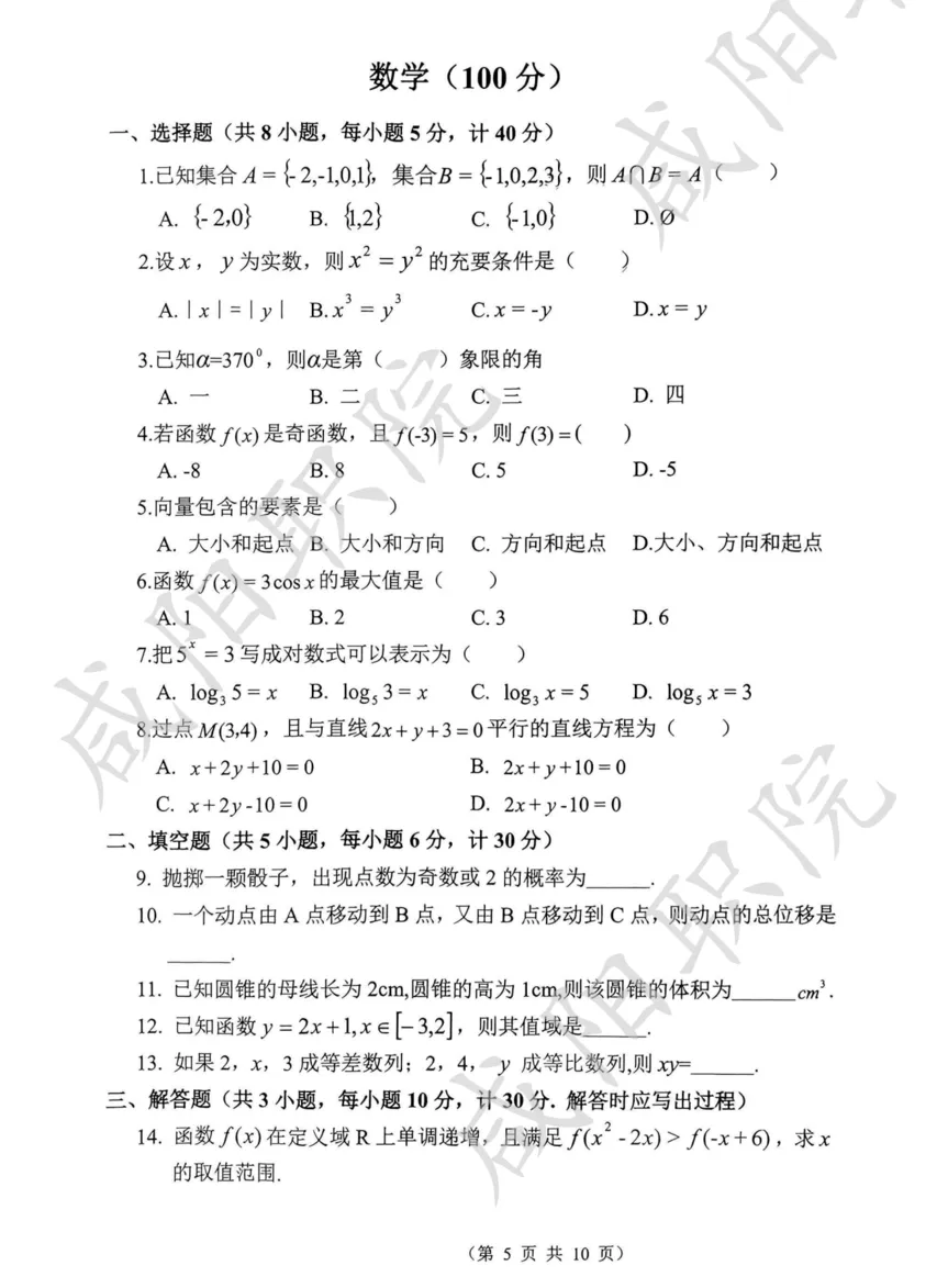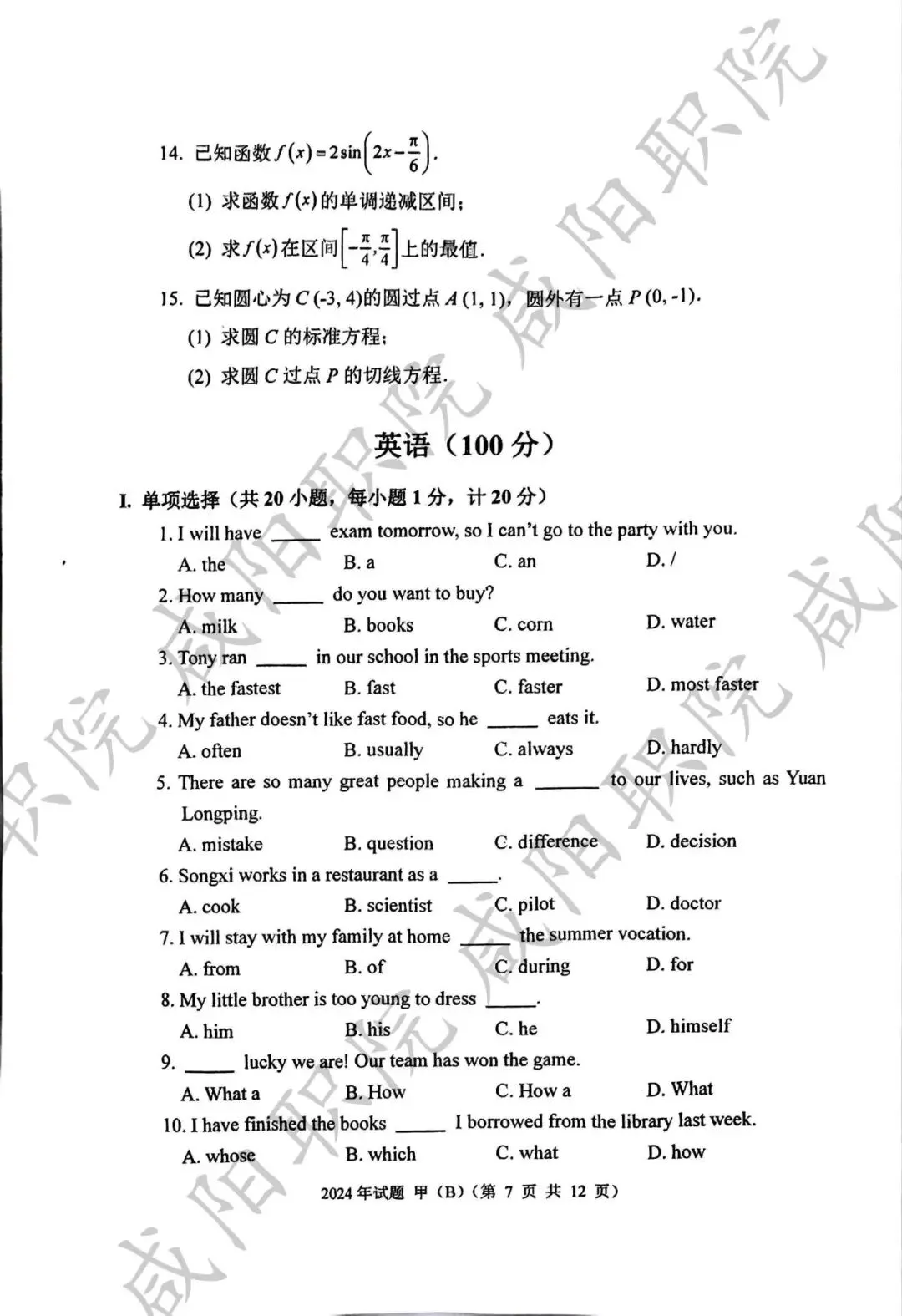 三校生试卷及答案