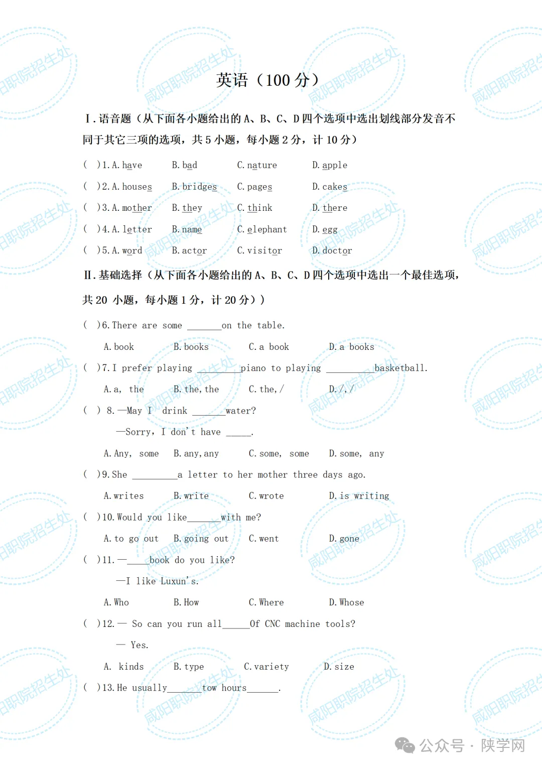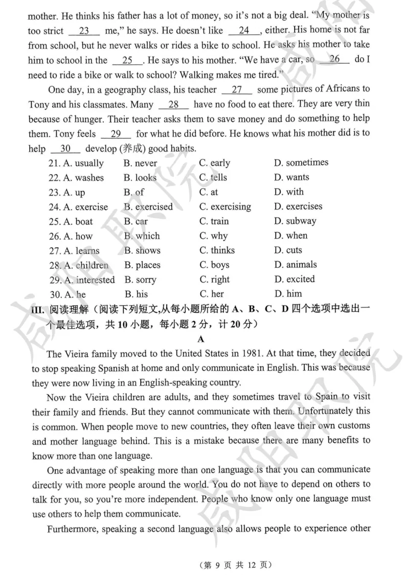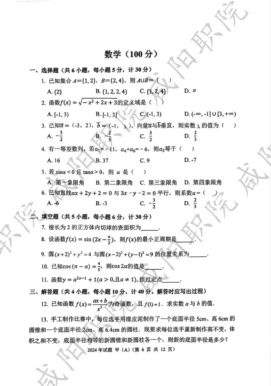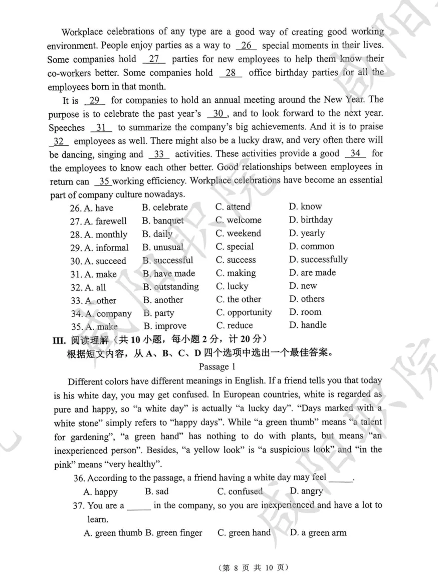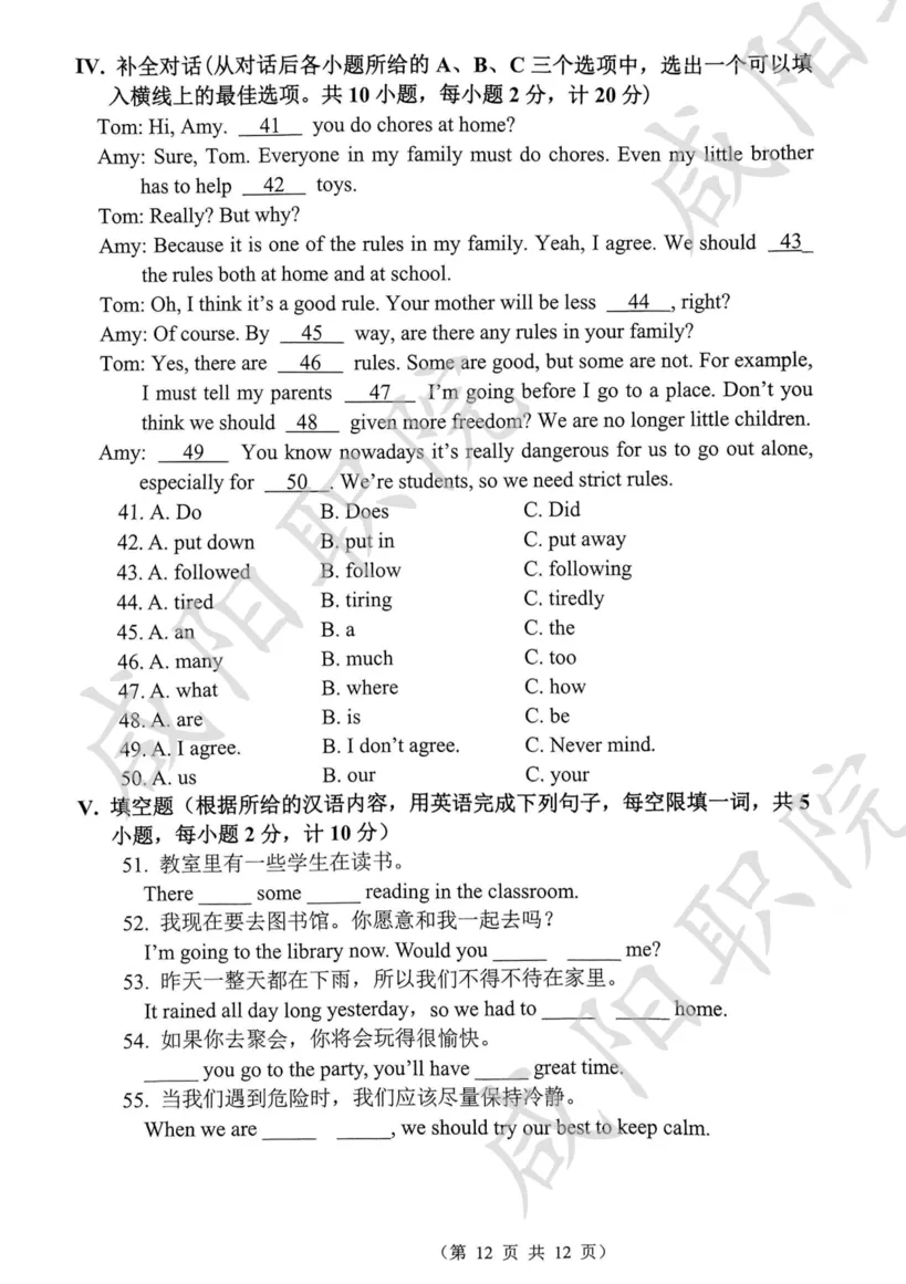 三校生试卷及答案