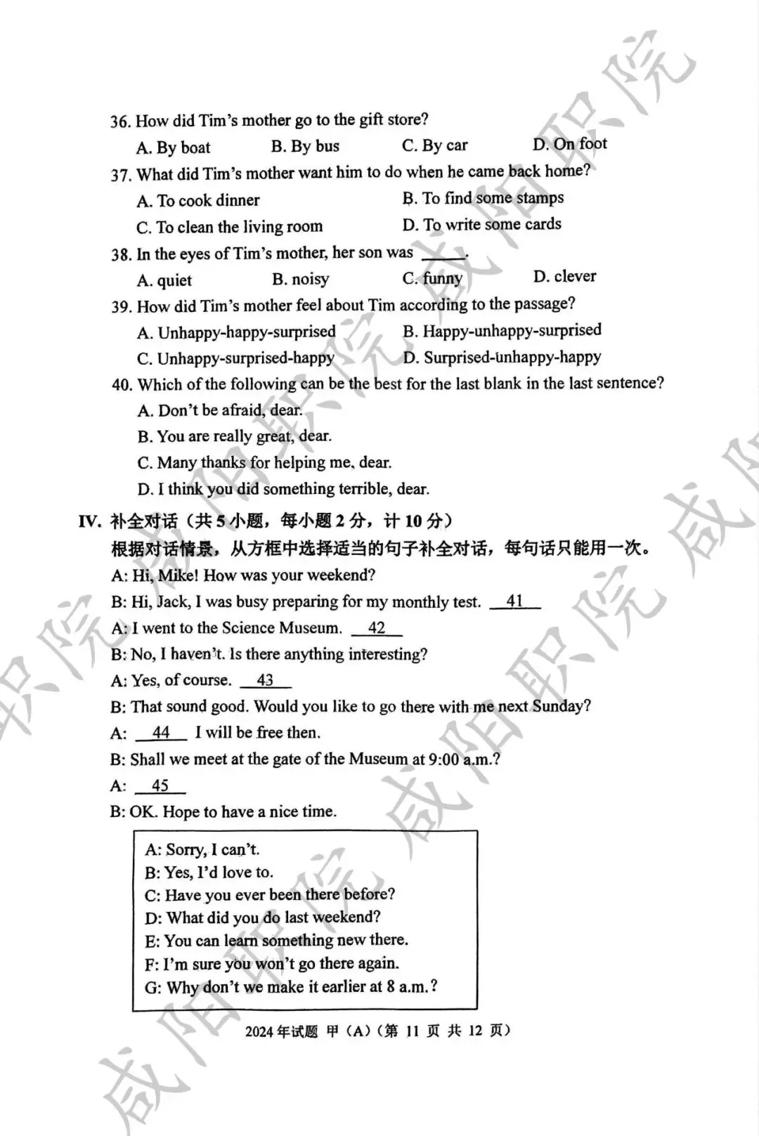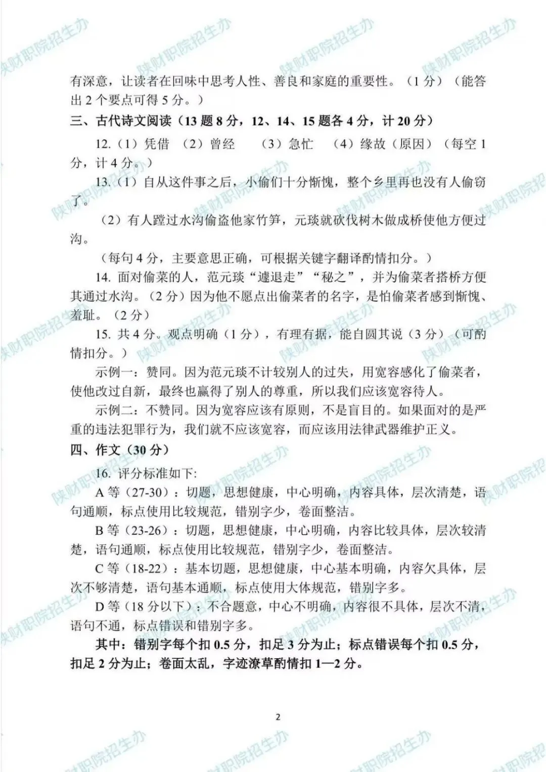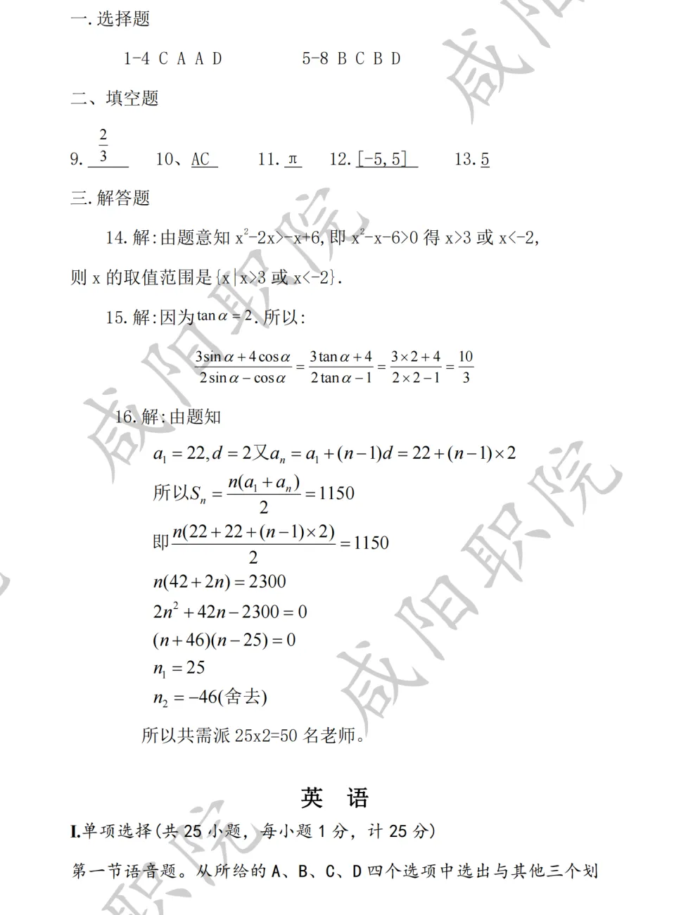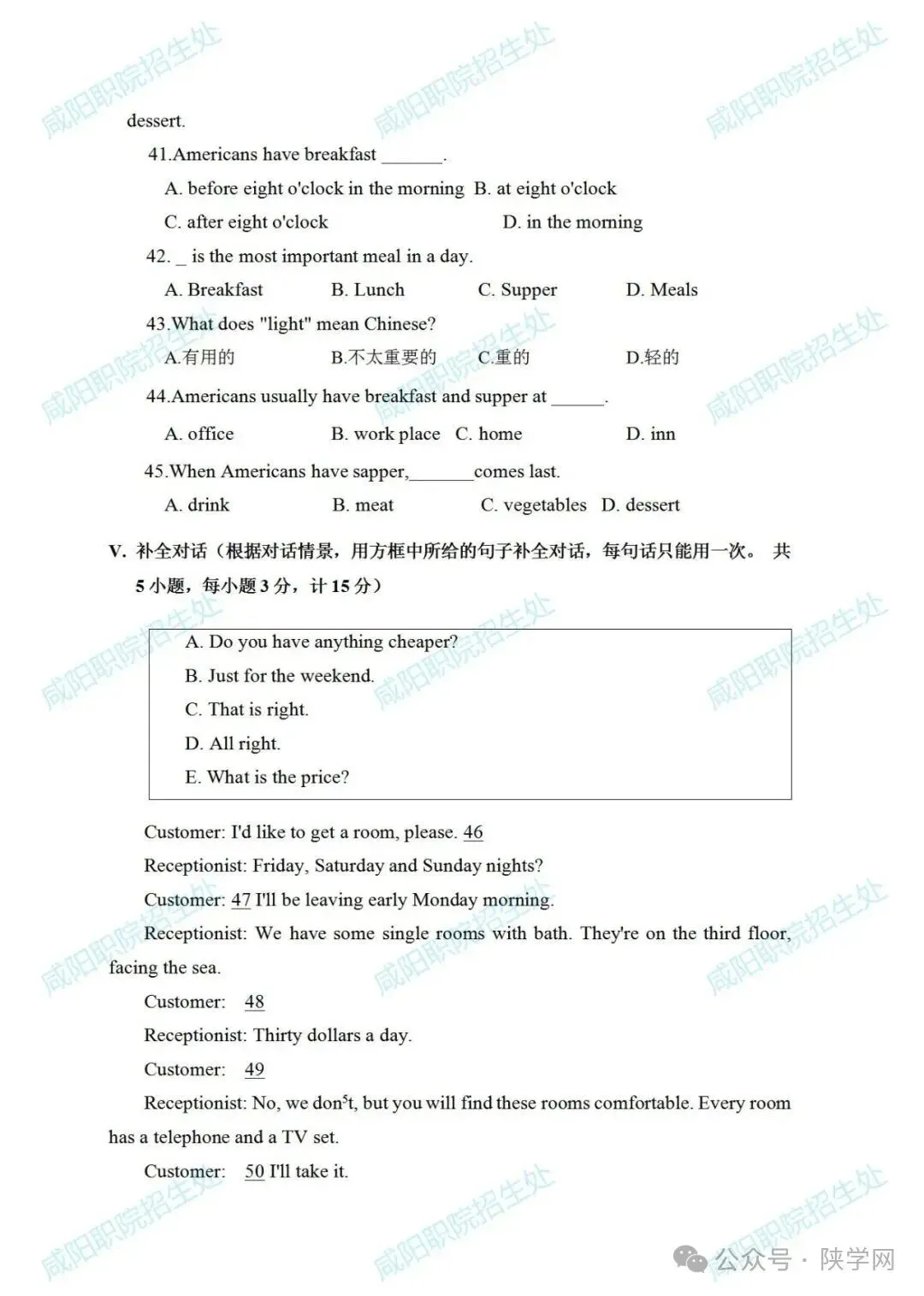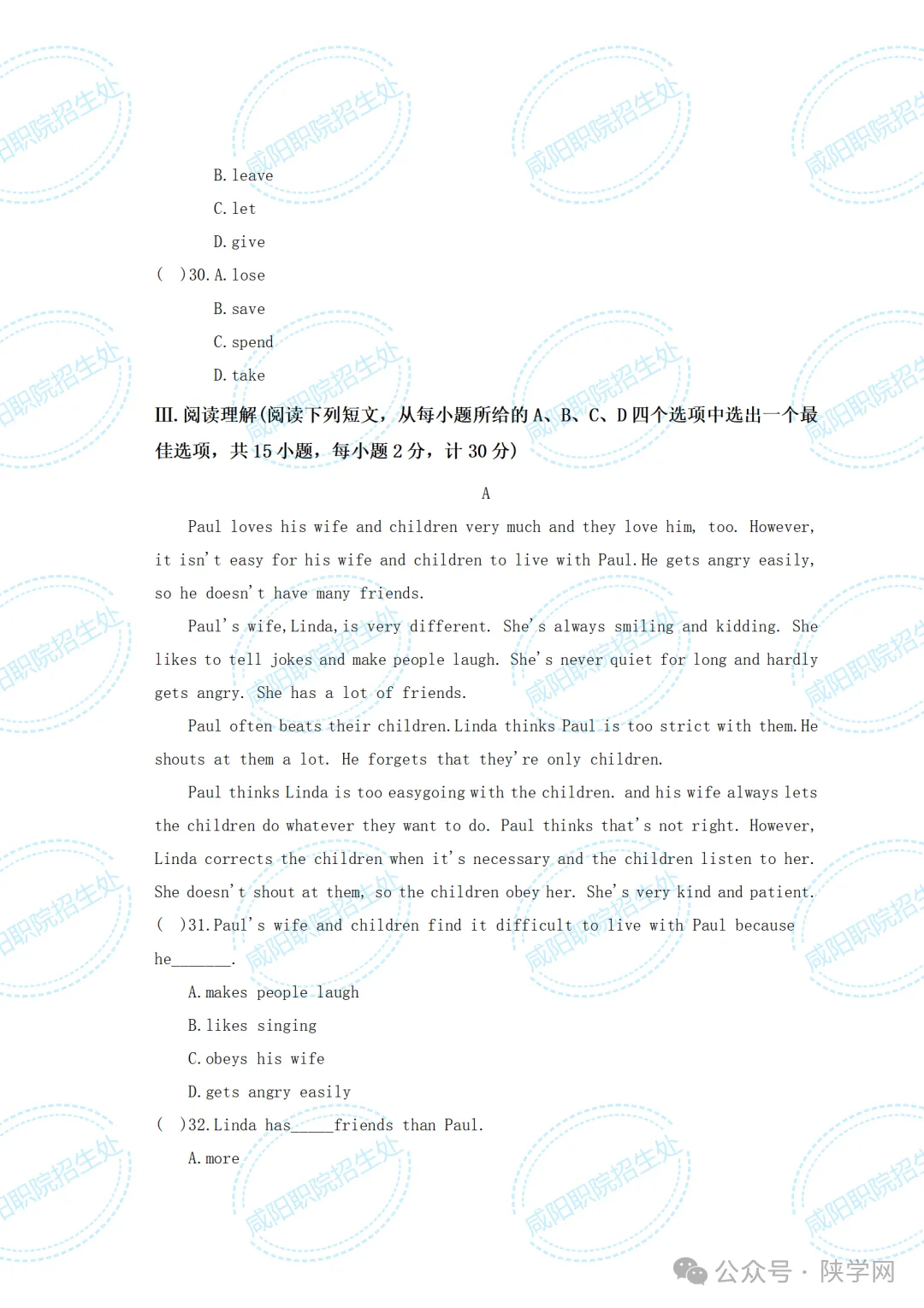 三校生试卷及答案