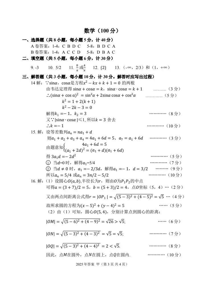 2025年甲卷—普高生