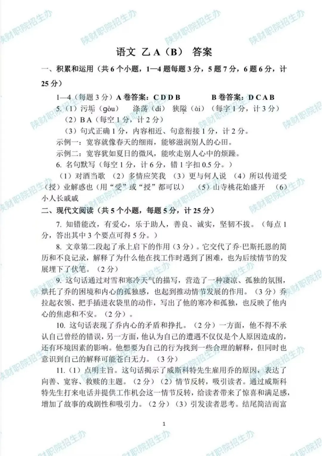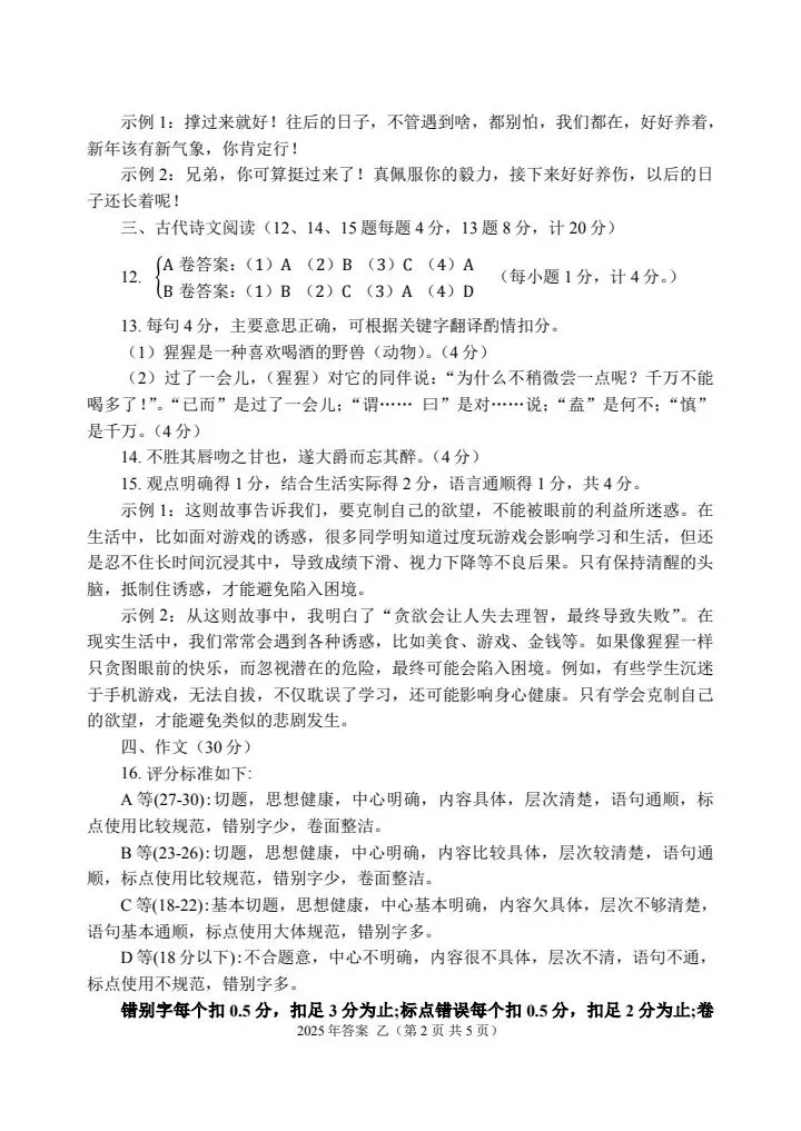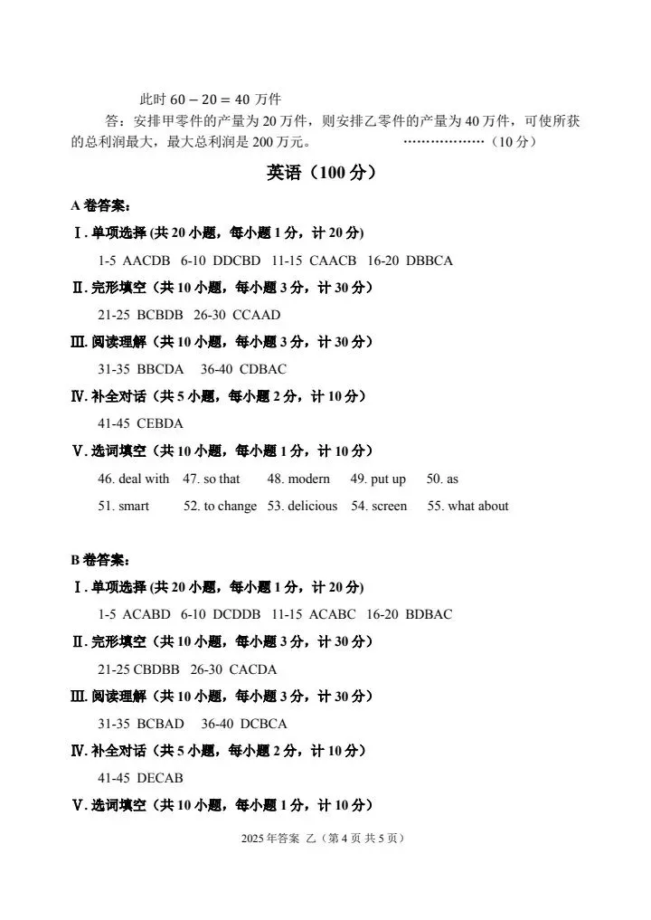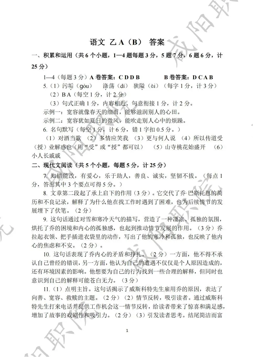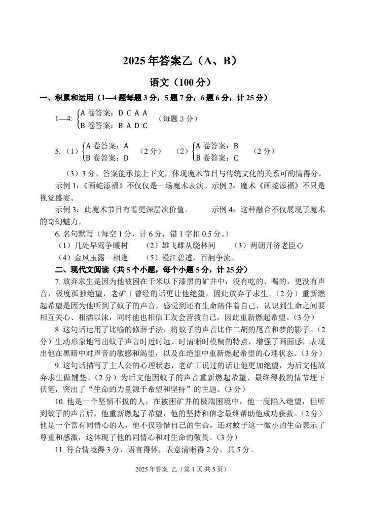 乙卷试题答案