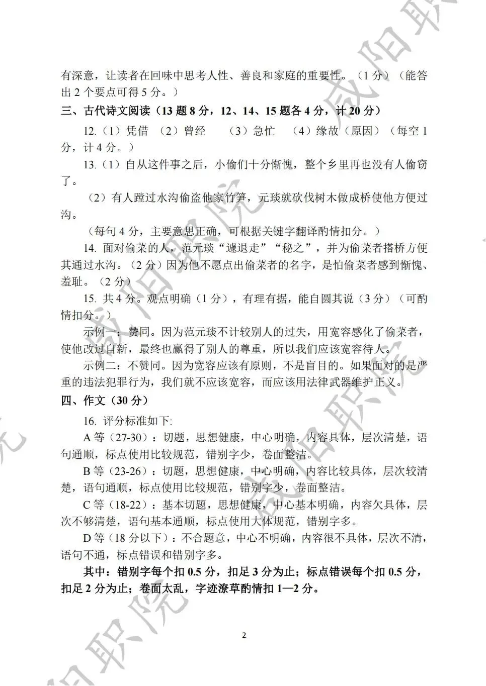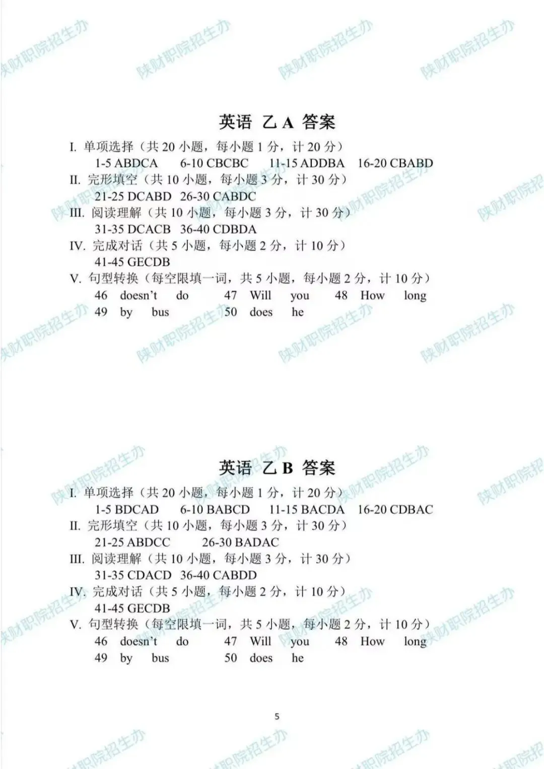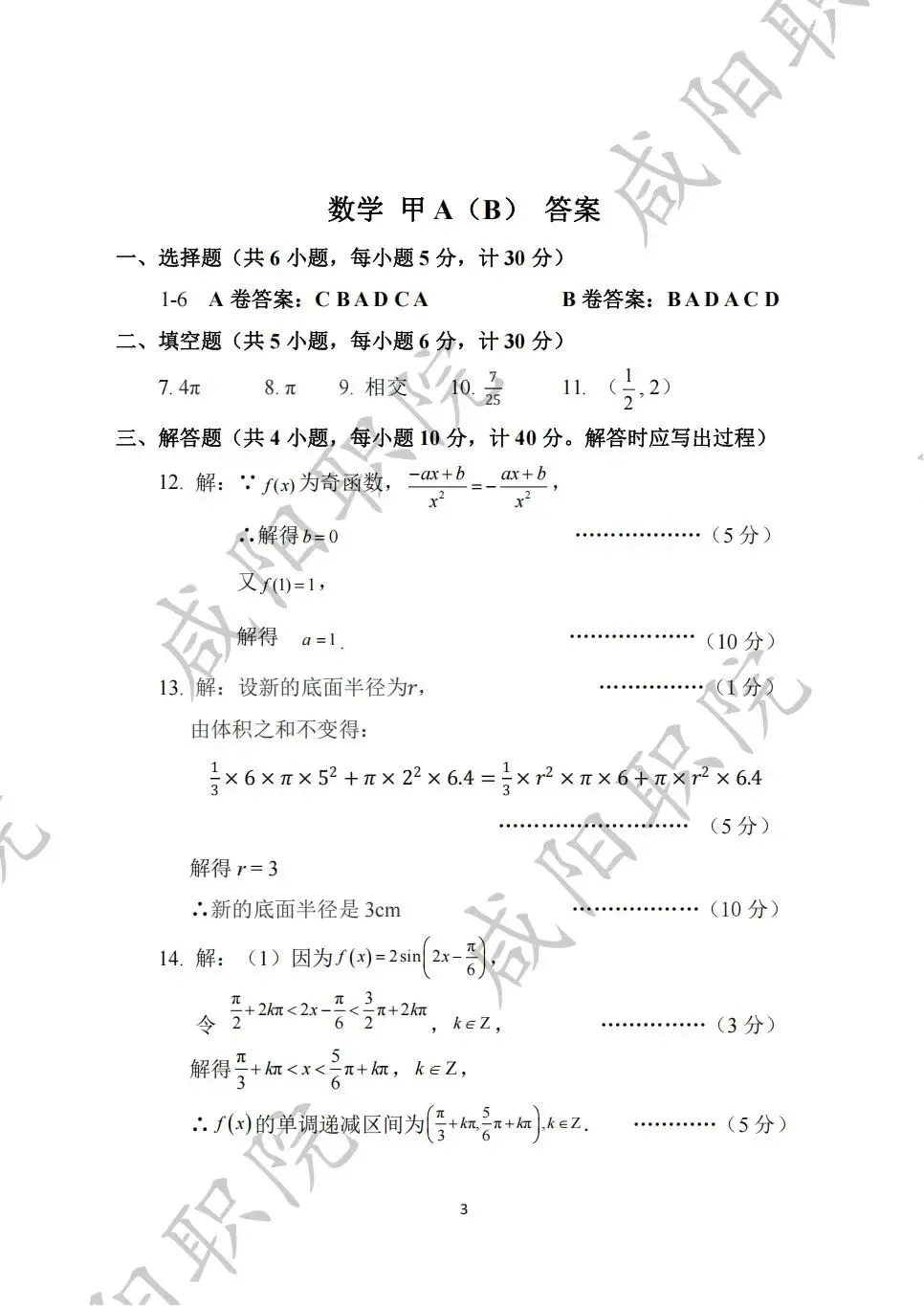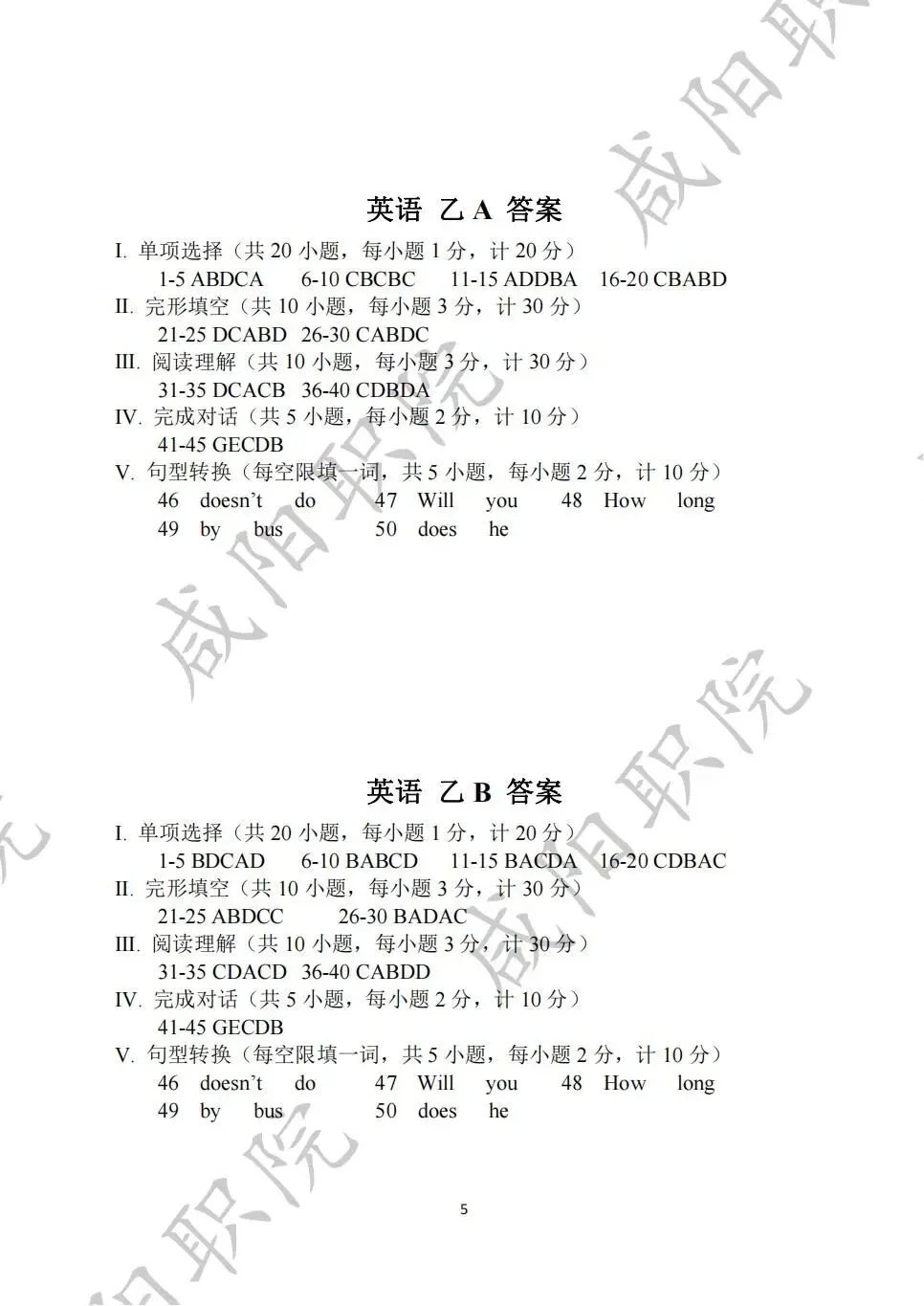 乙卷试题答案