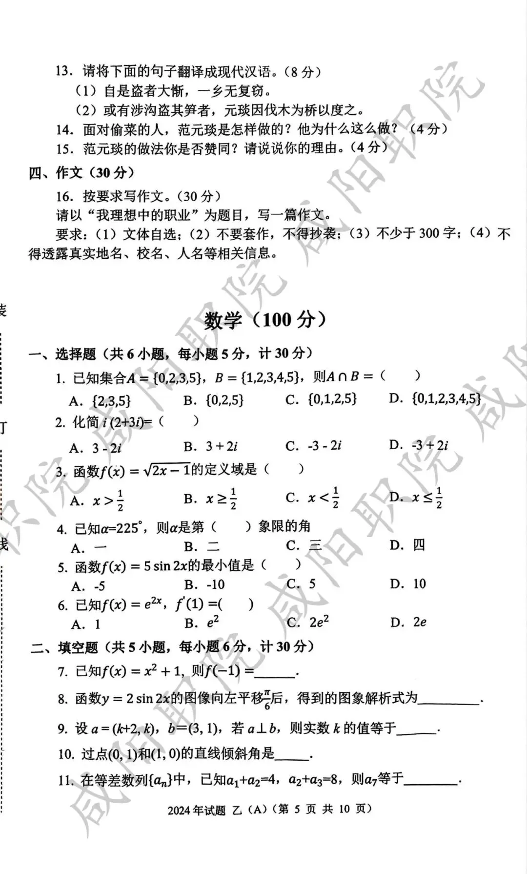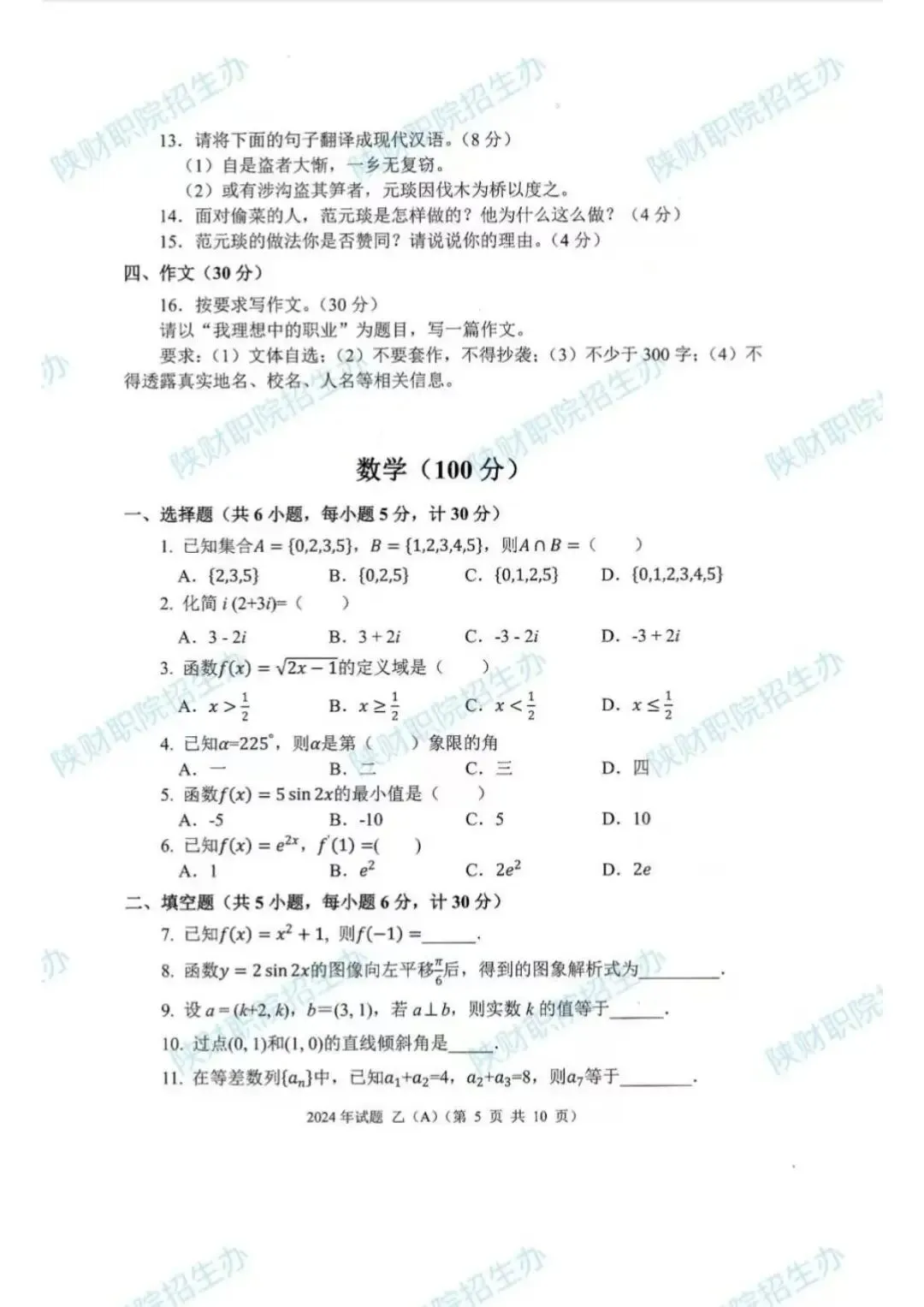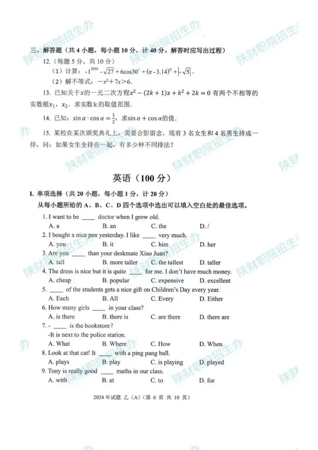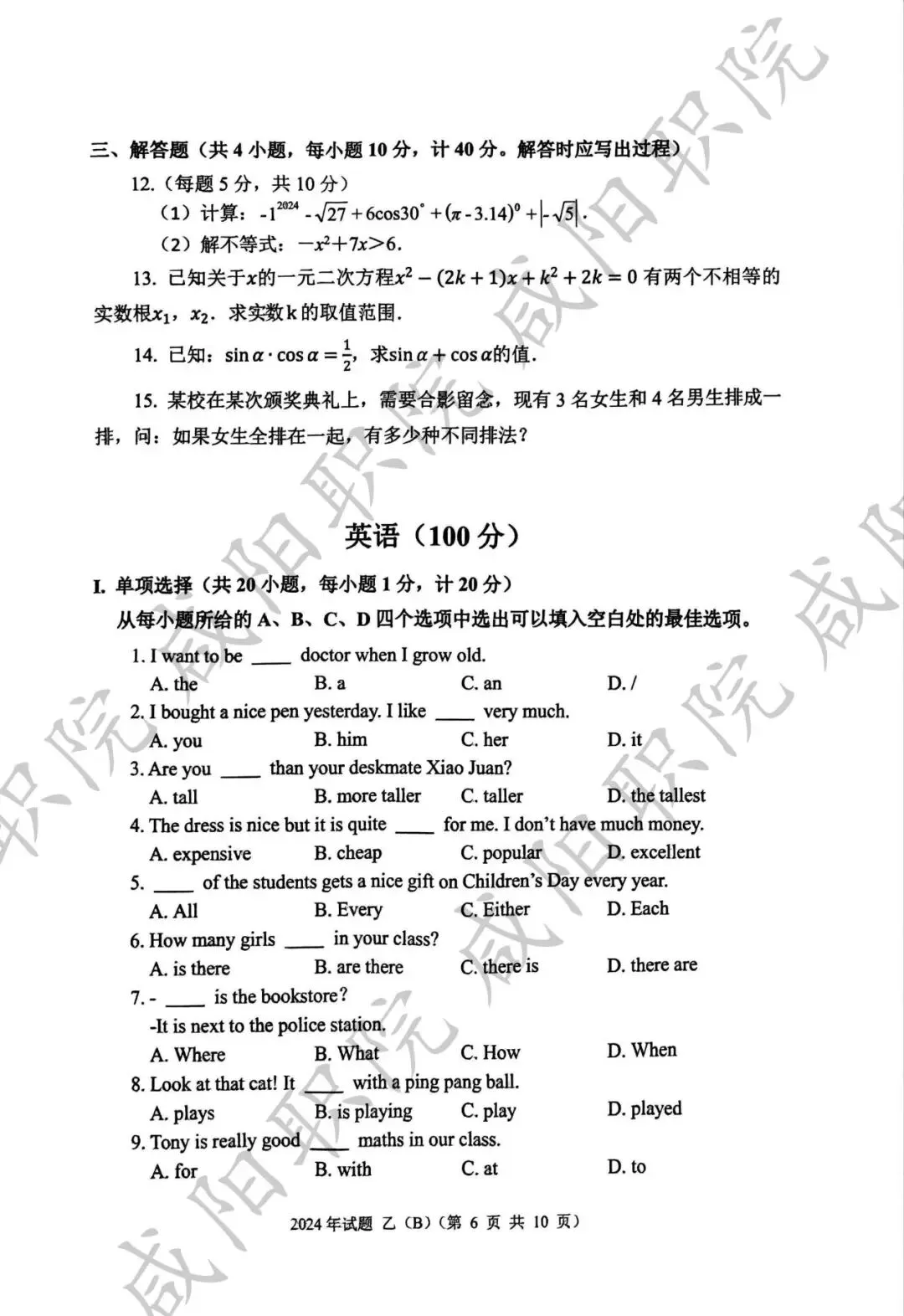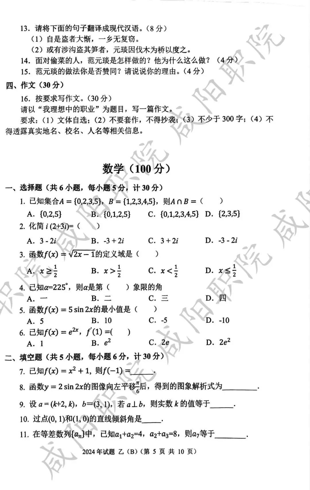 2024年乙卷-三校生