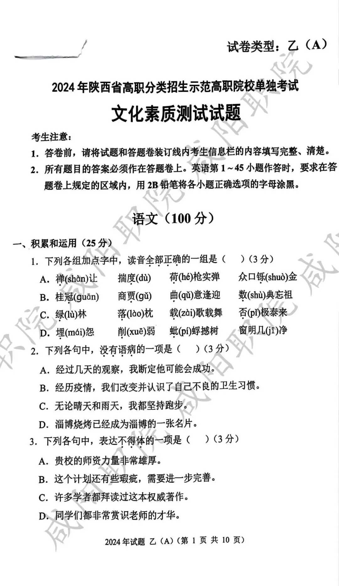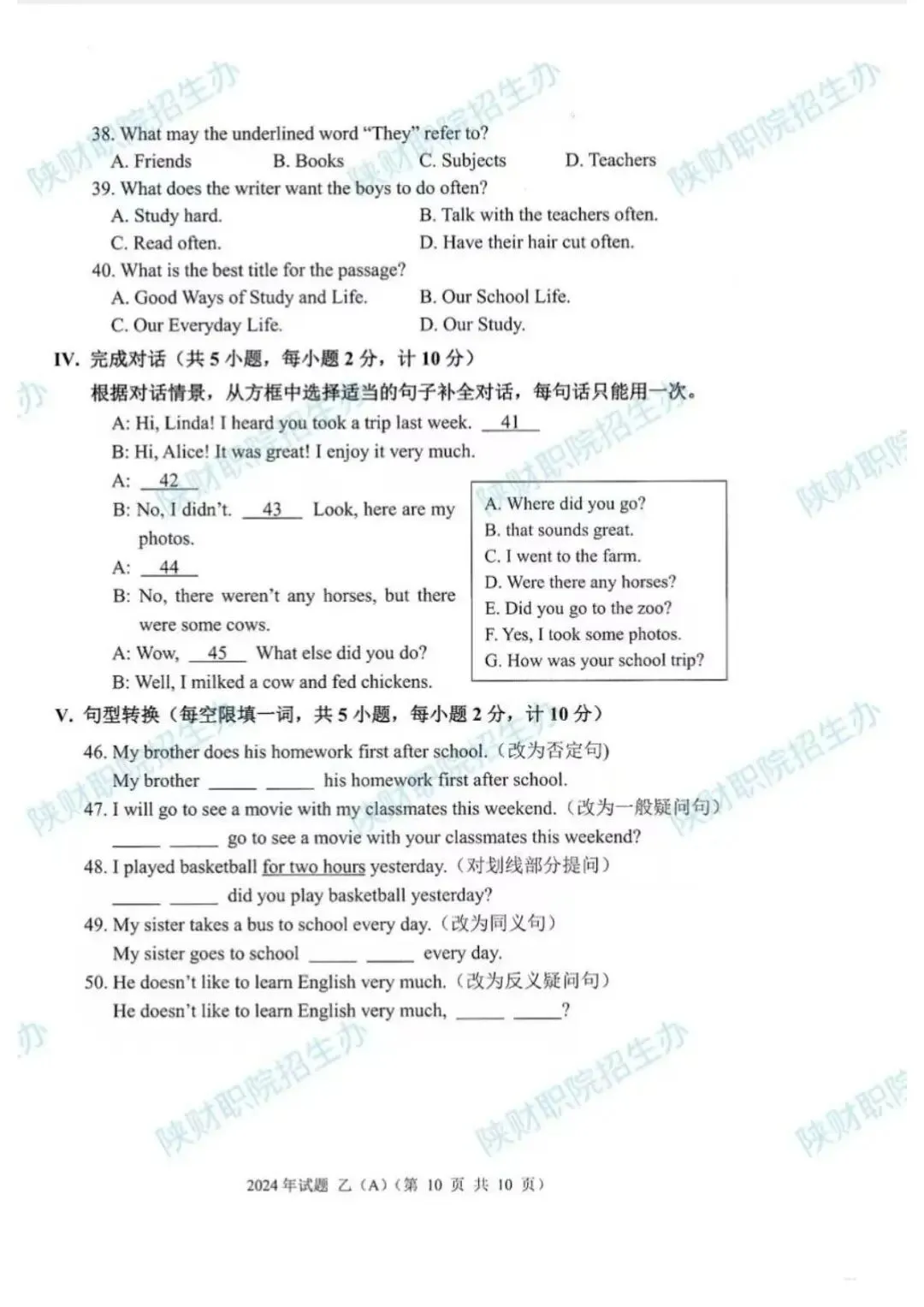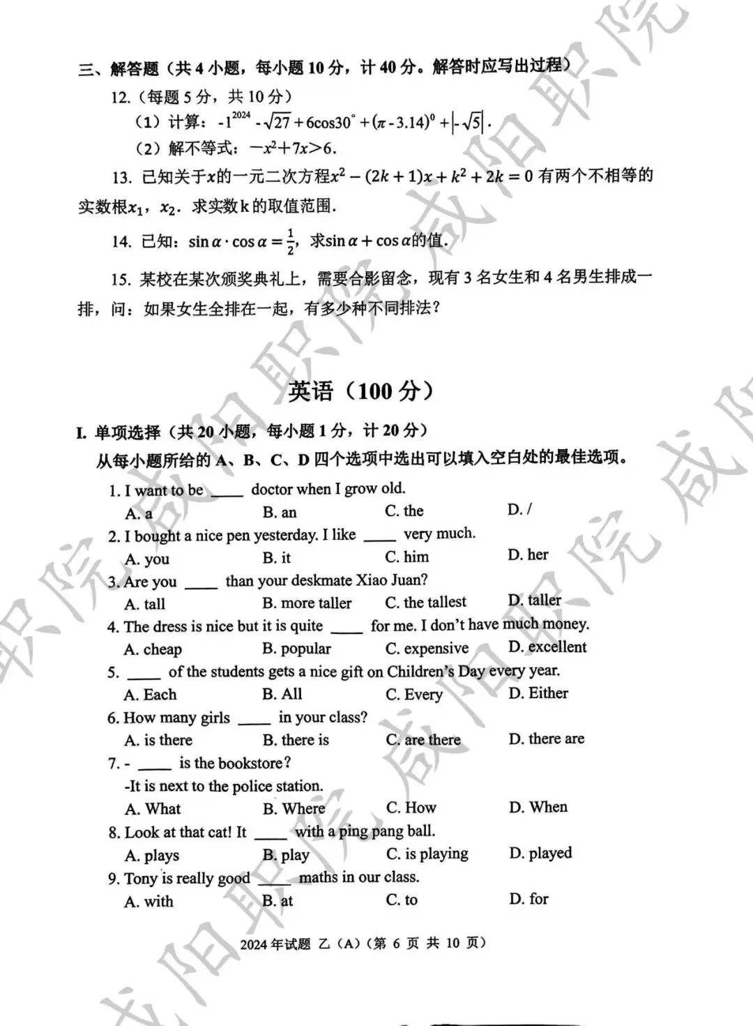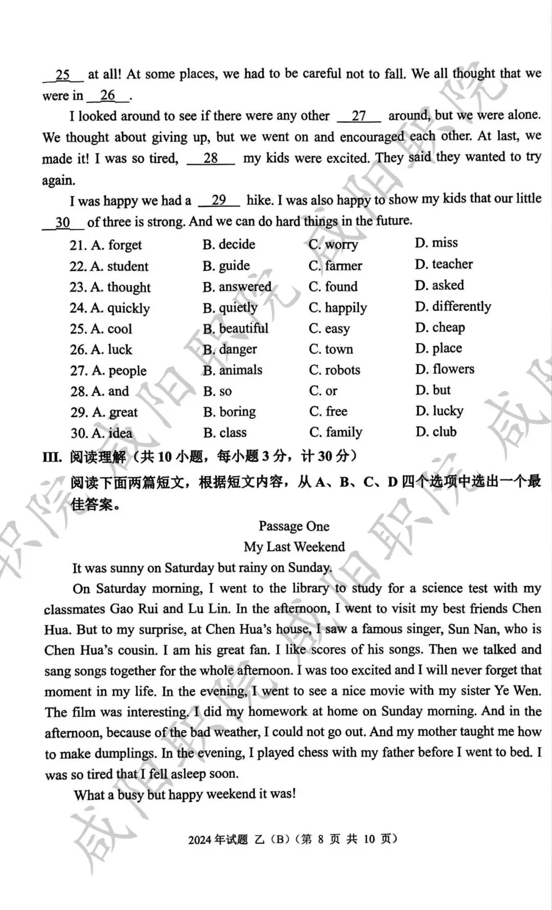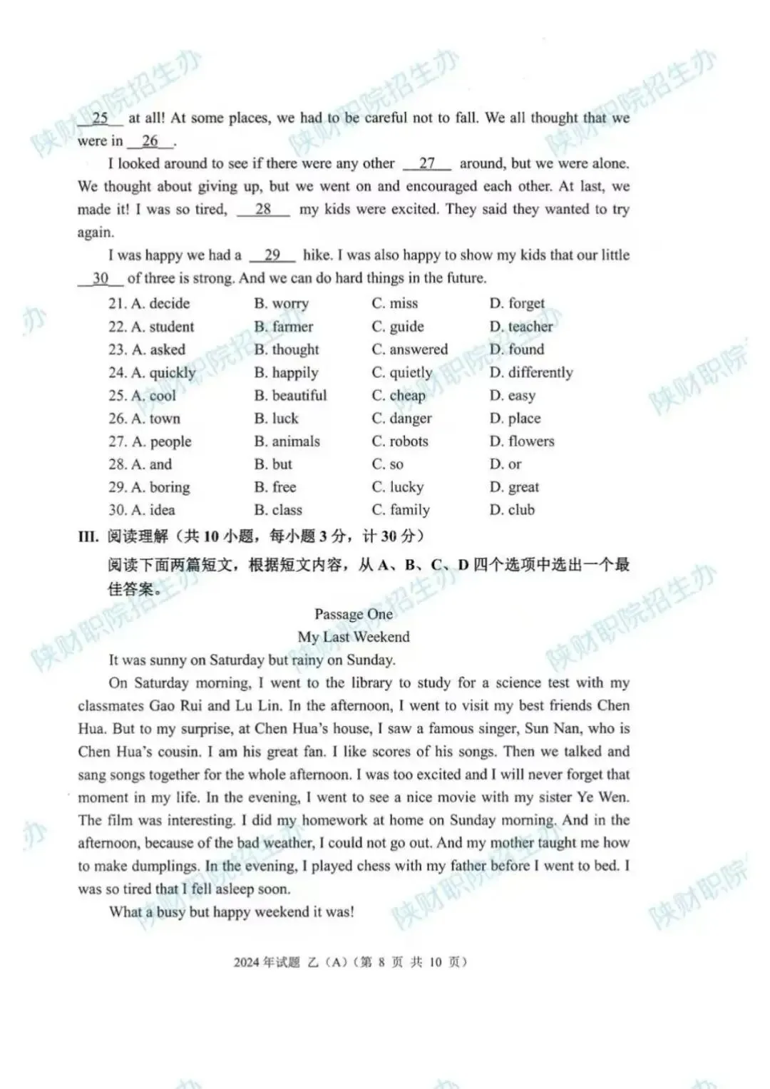 2024年乙卷-三校生