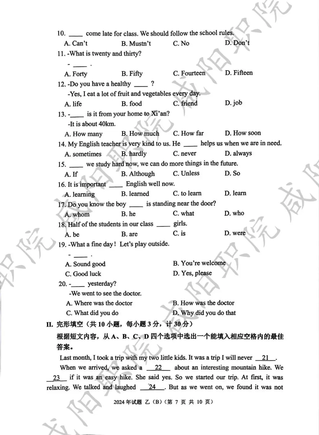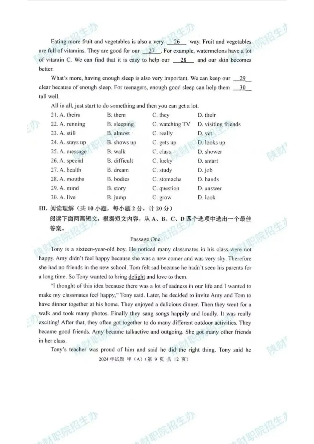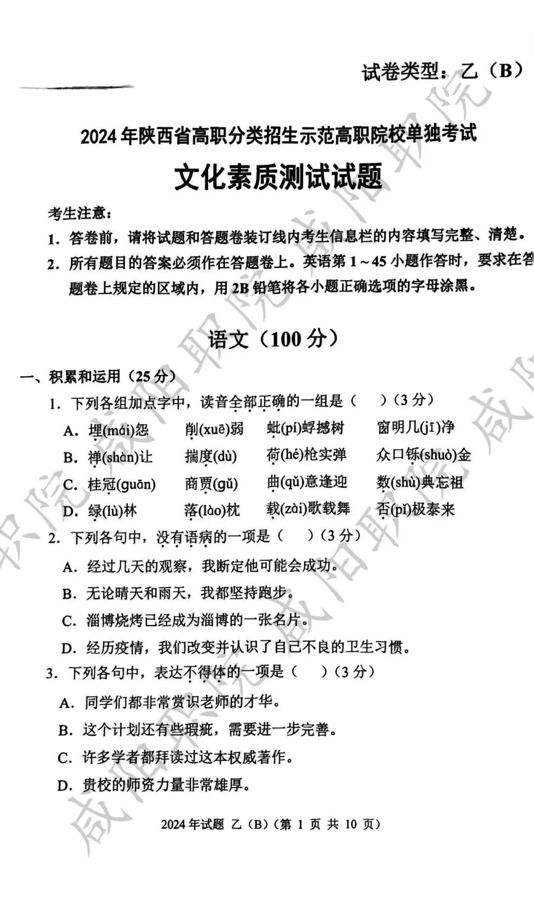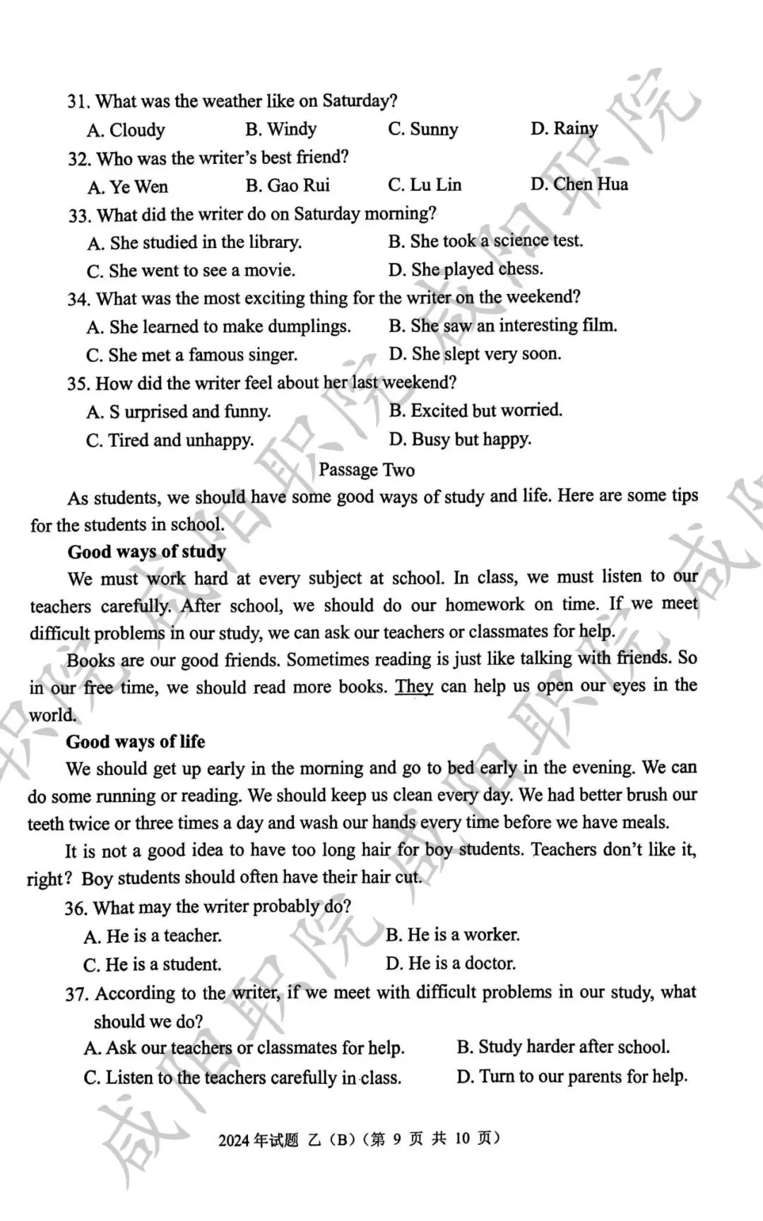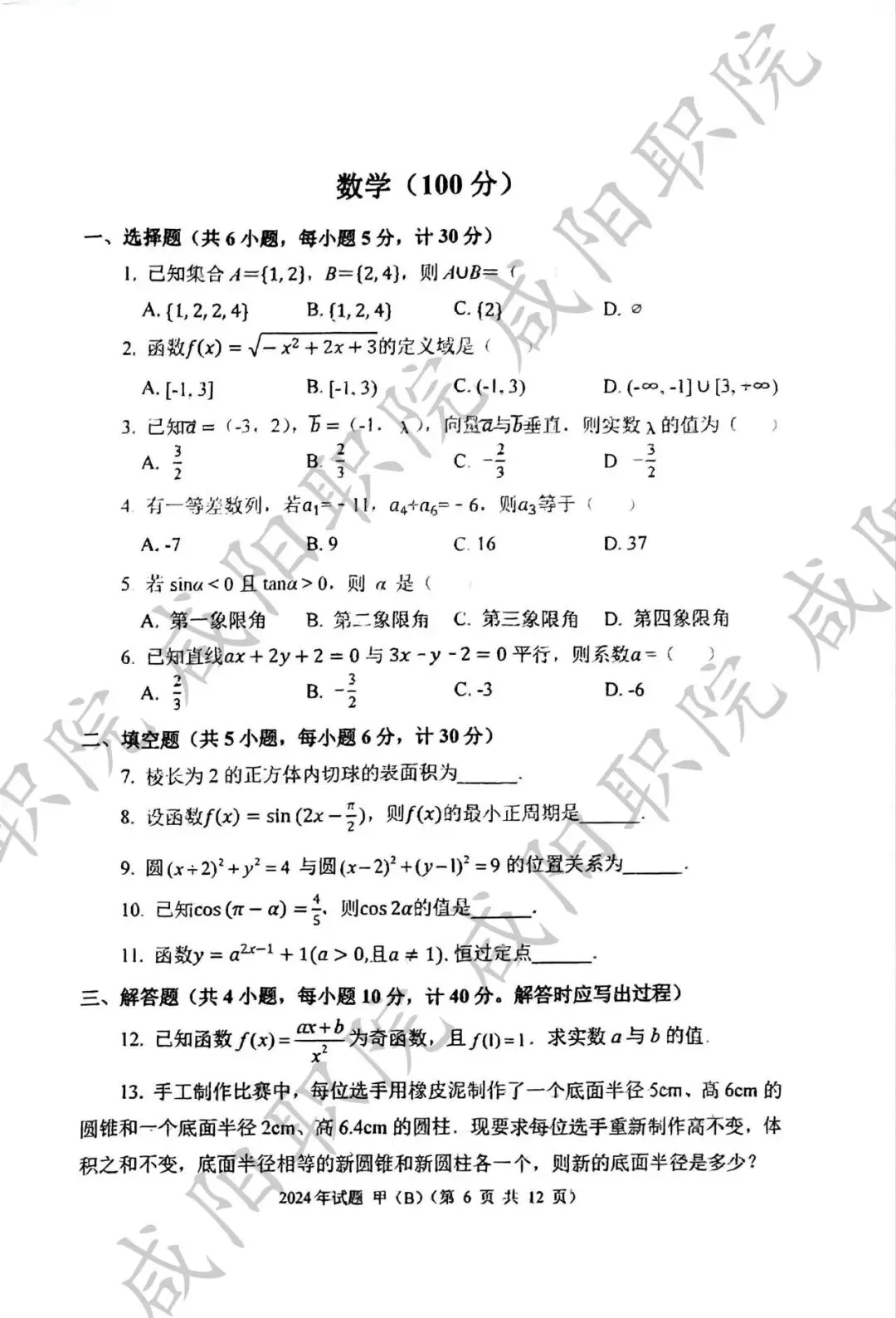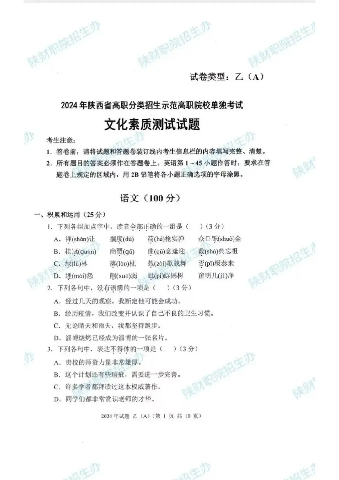 2024年乙卷-三校生