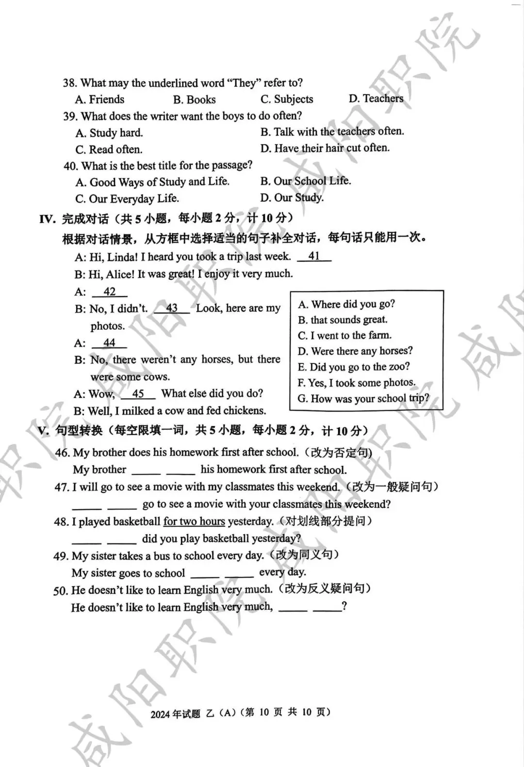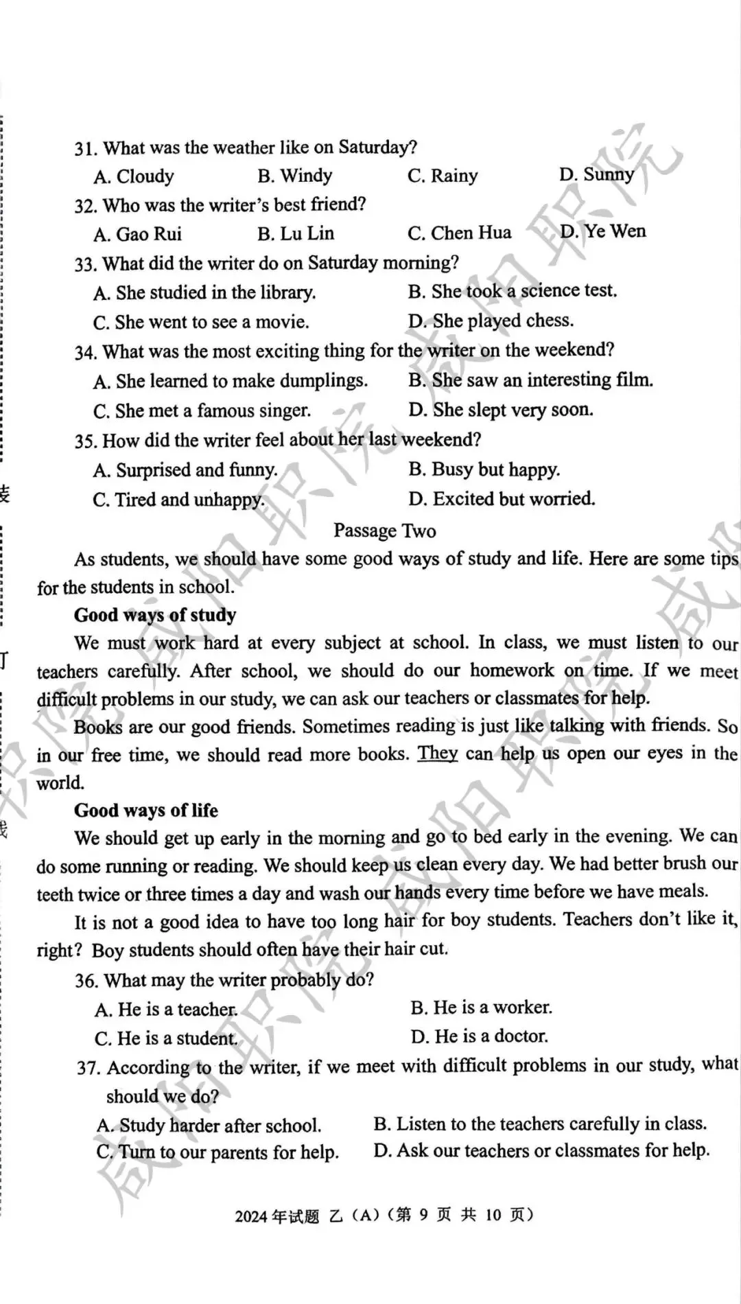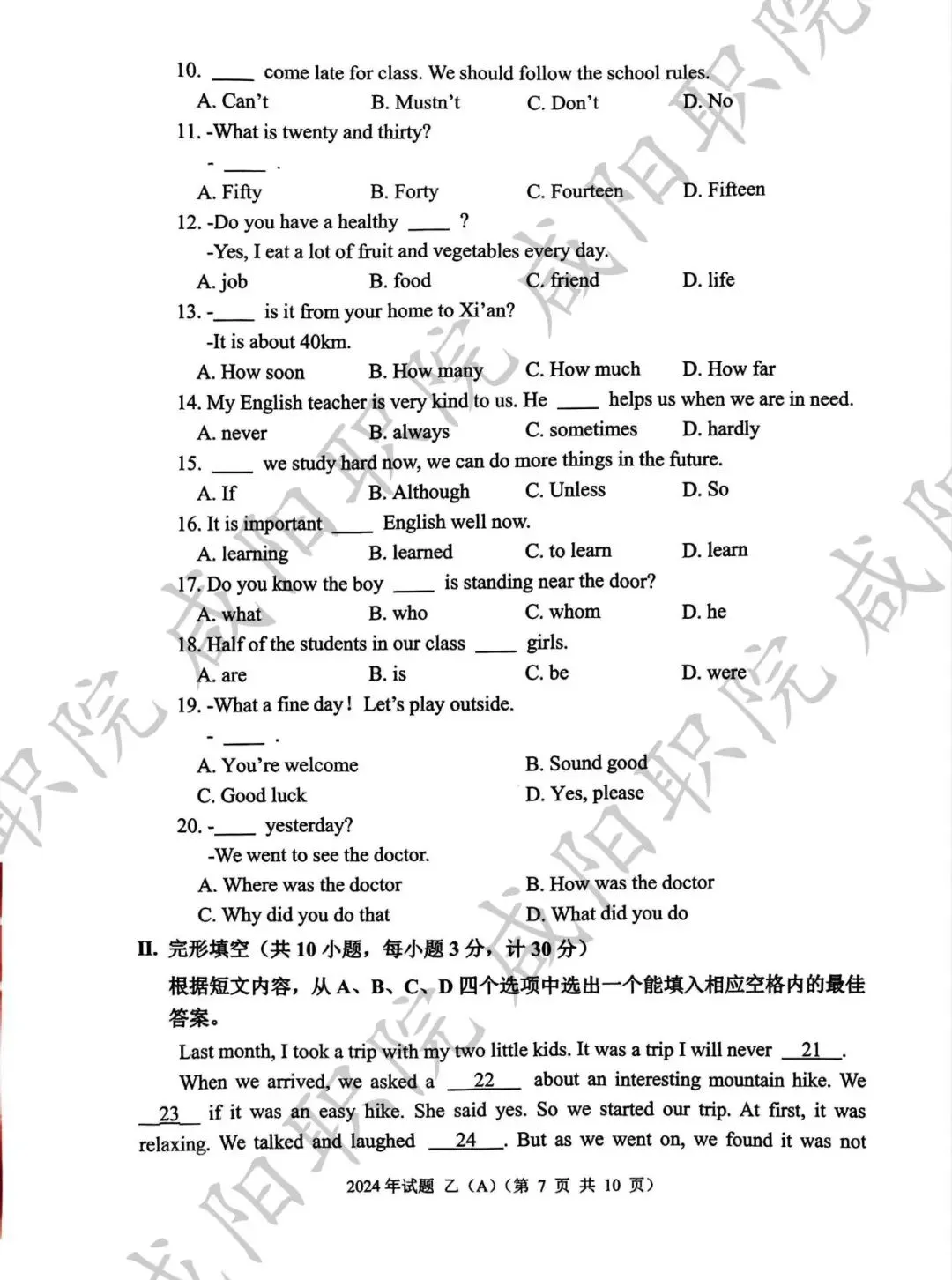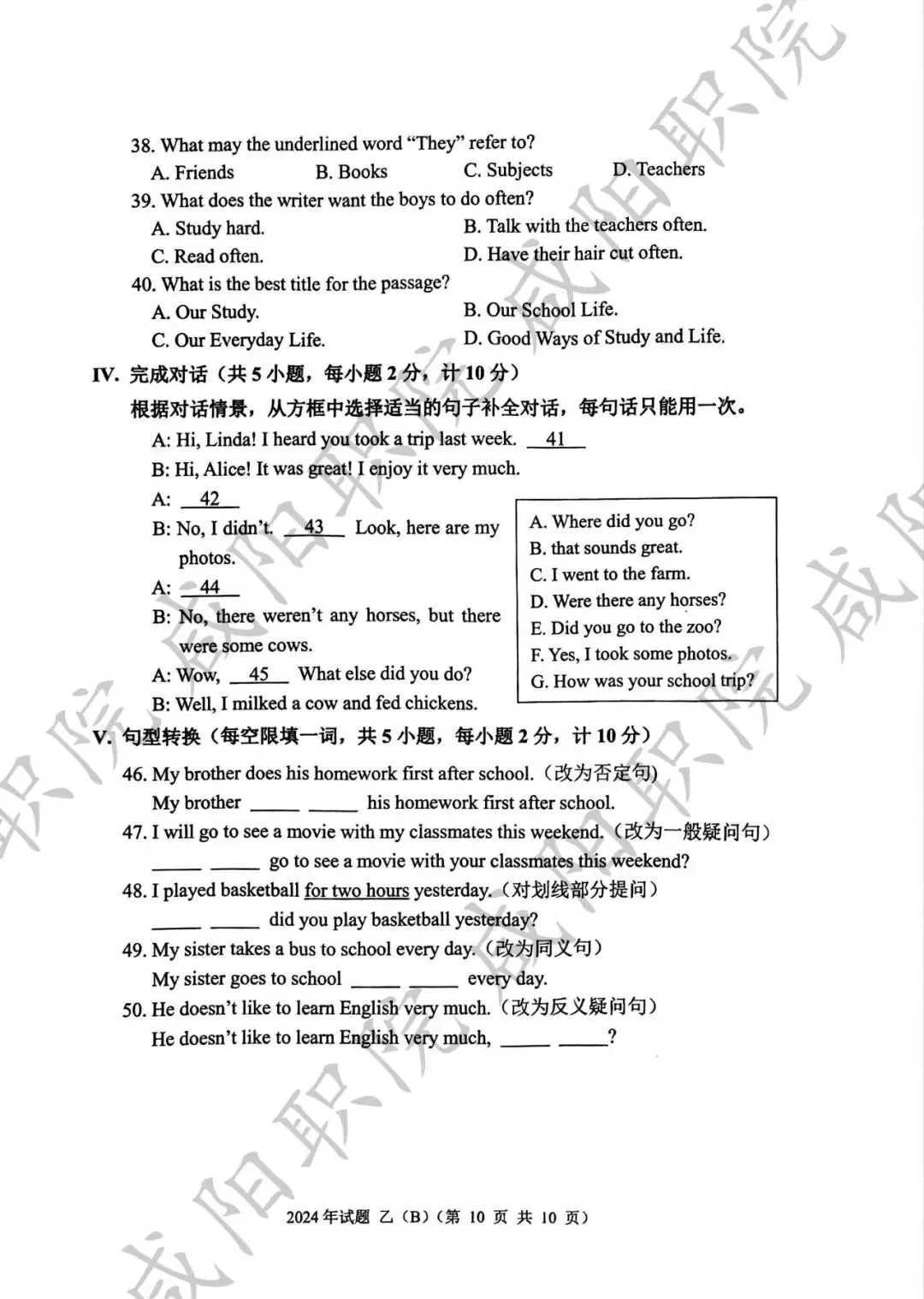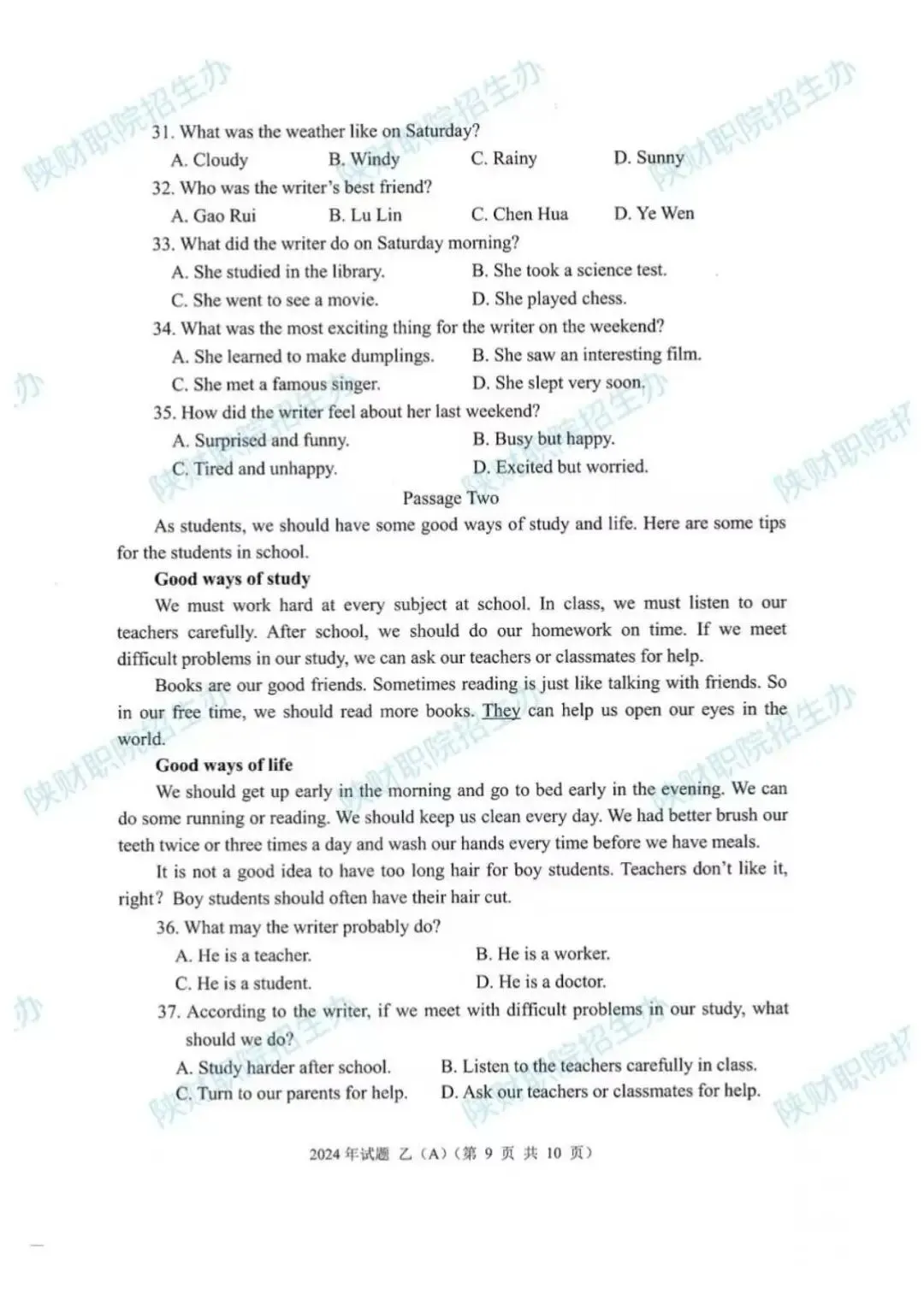 2024年乙卷-三校生