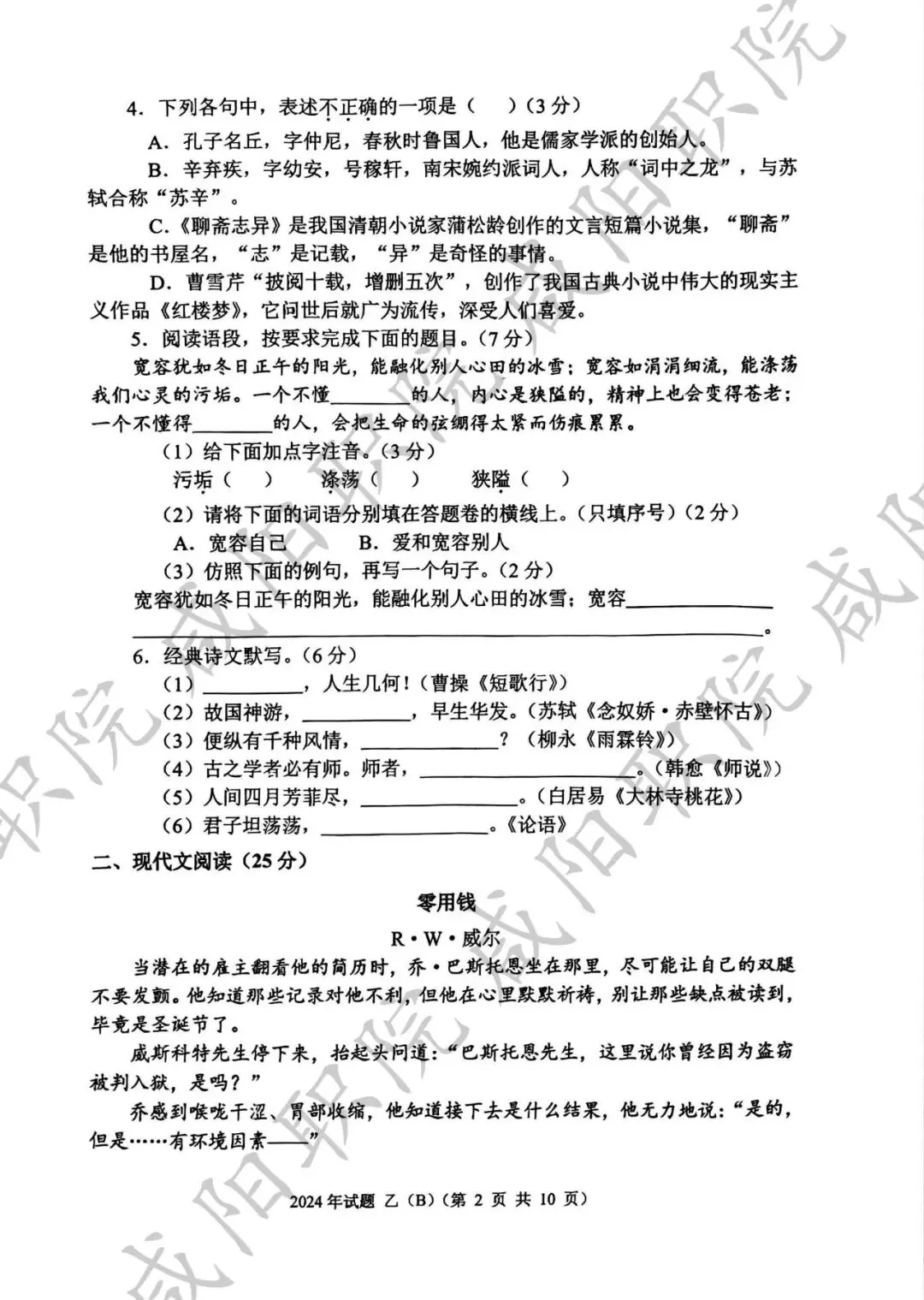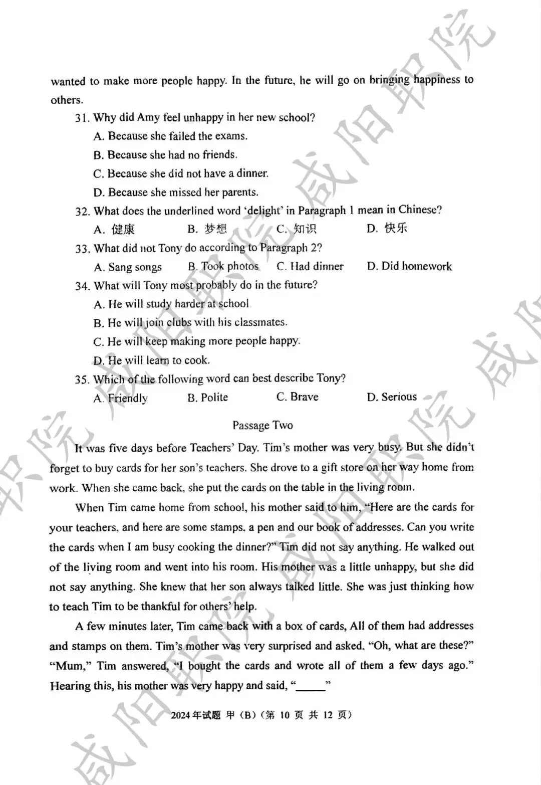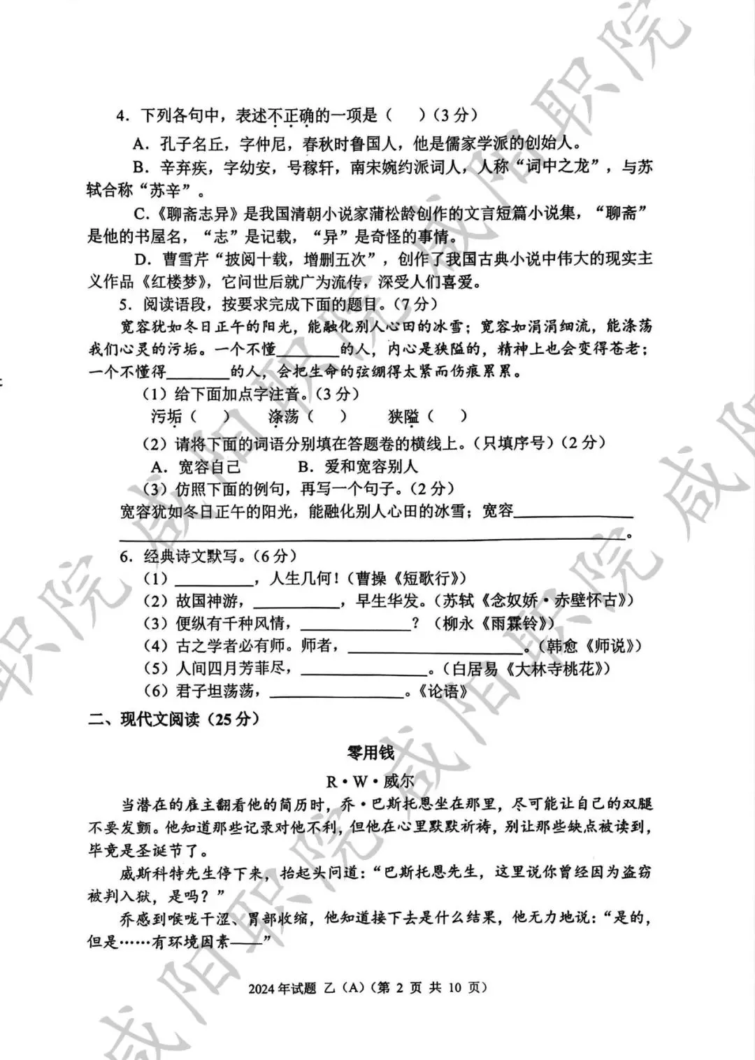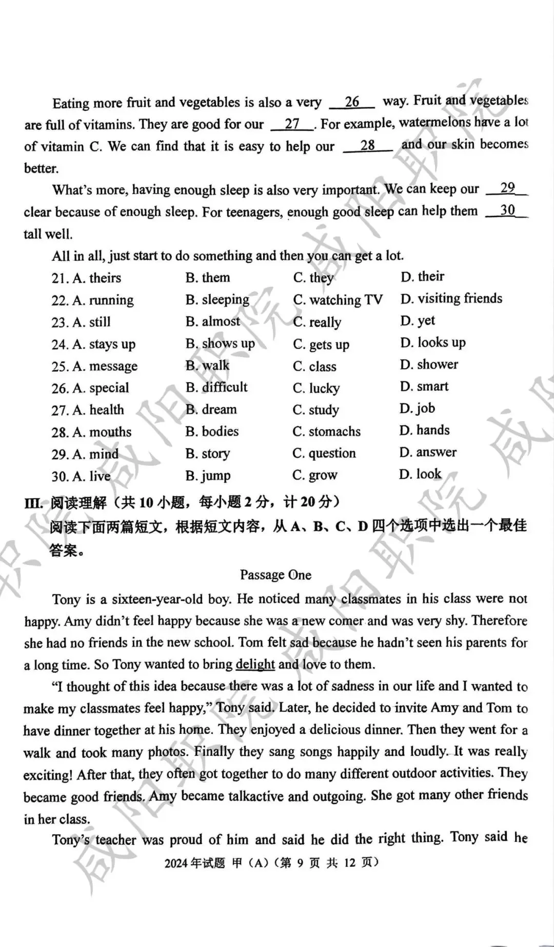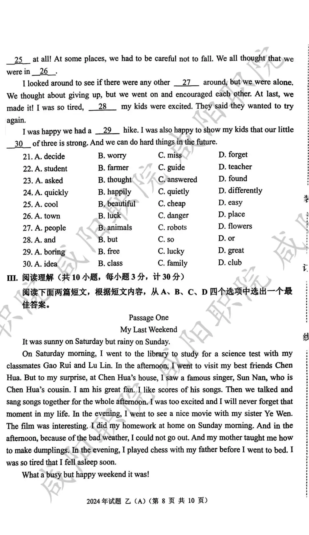 2024年乙卷-三校生