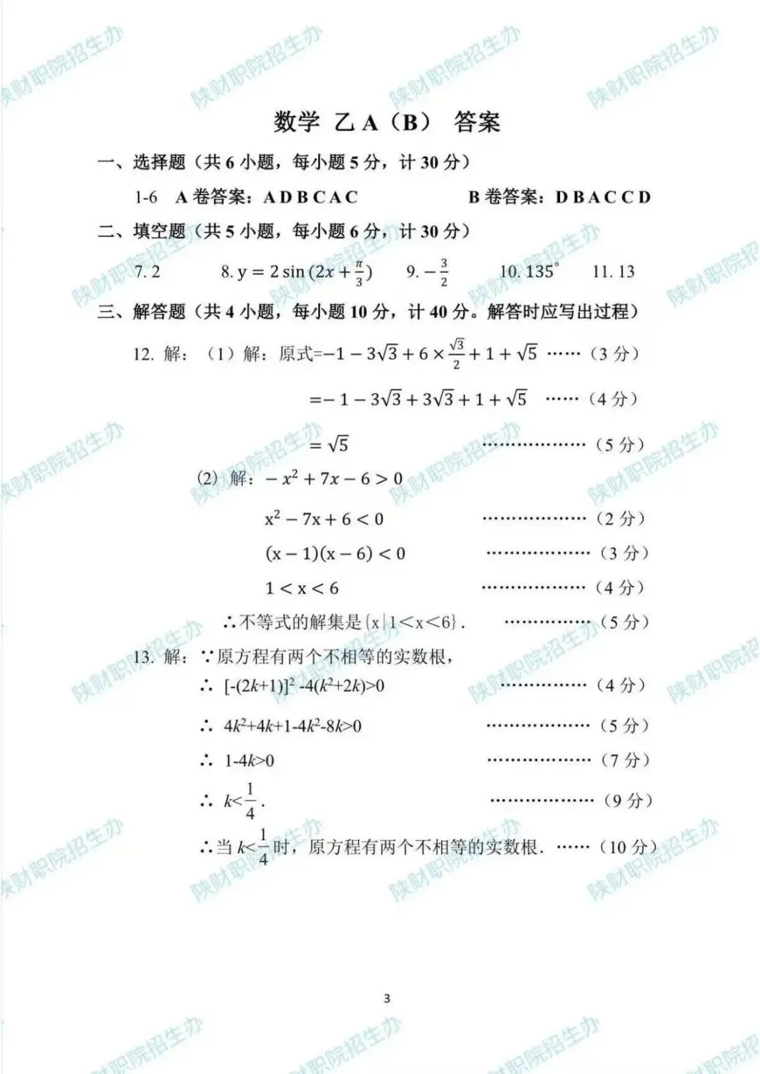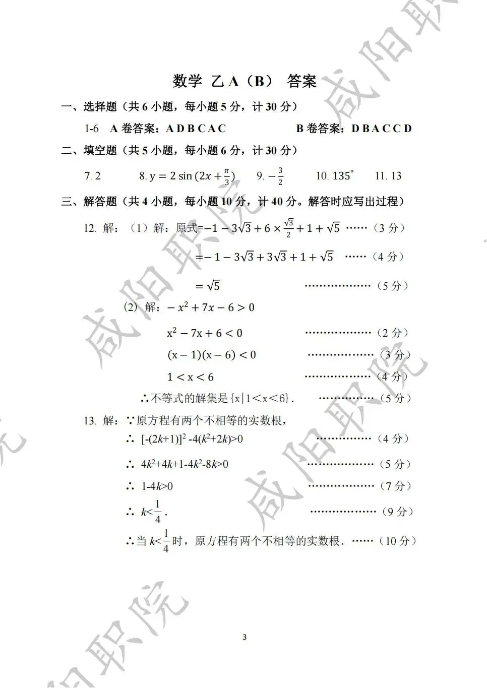 试卷类型:乙(A)三校生