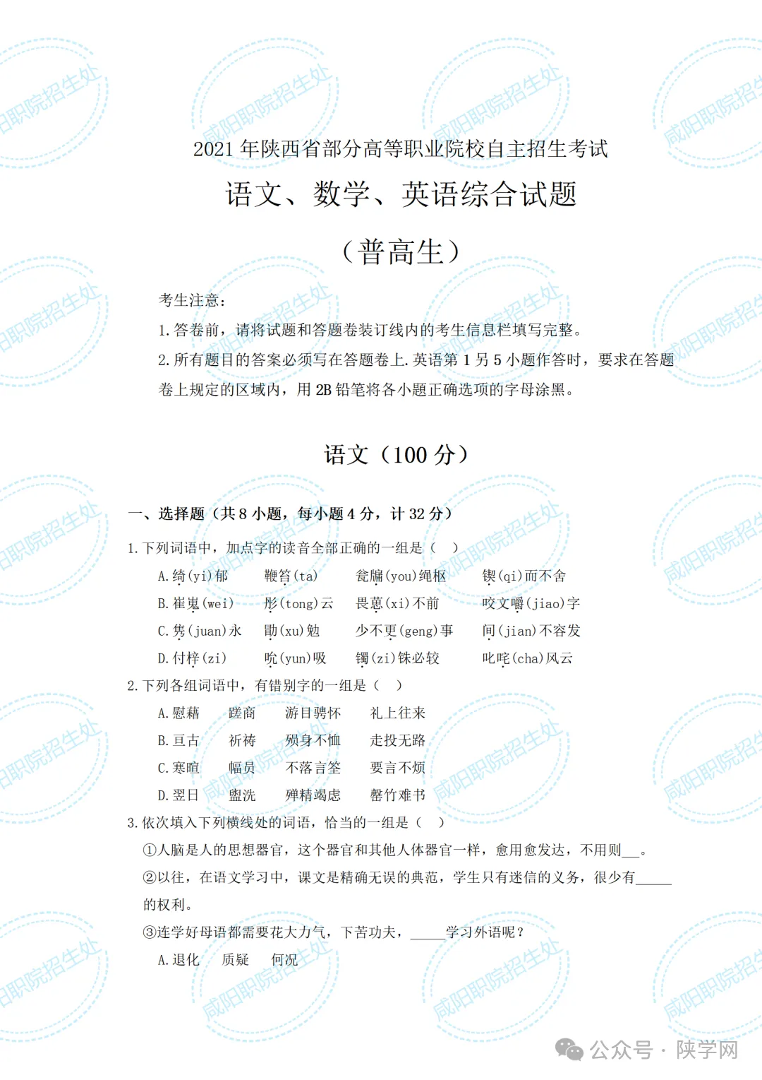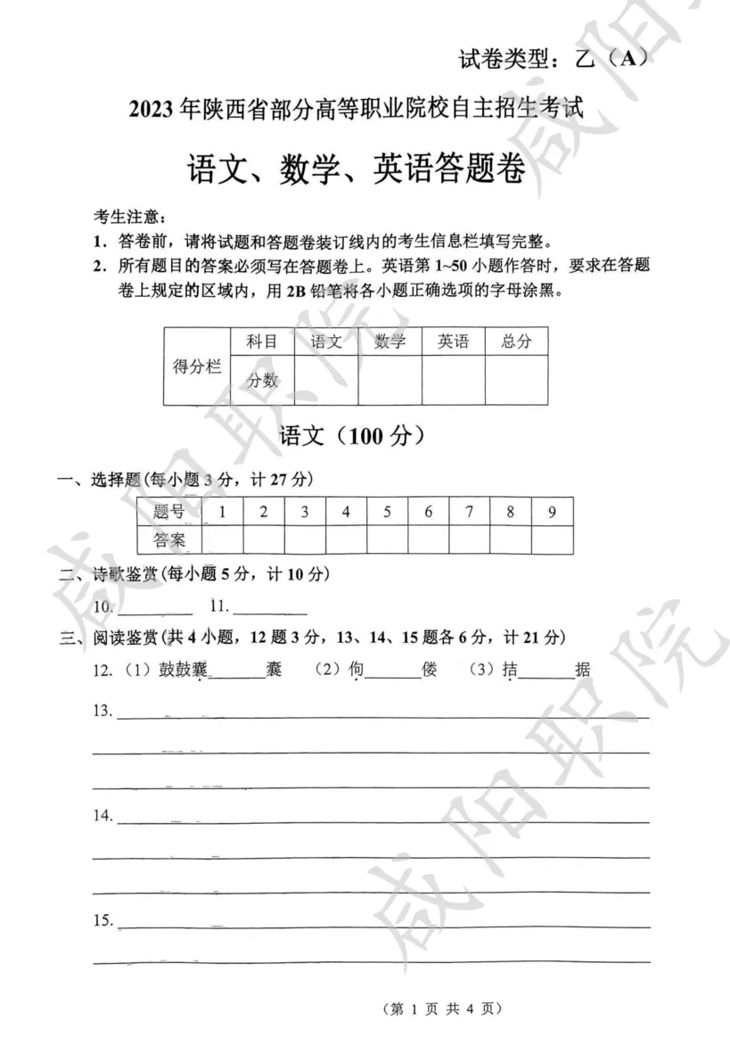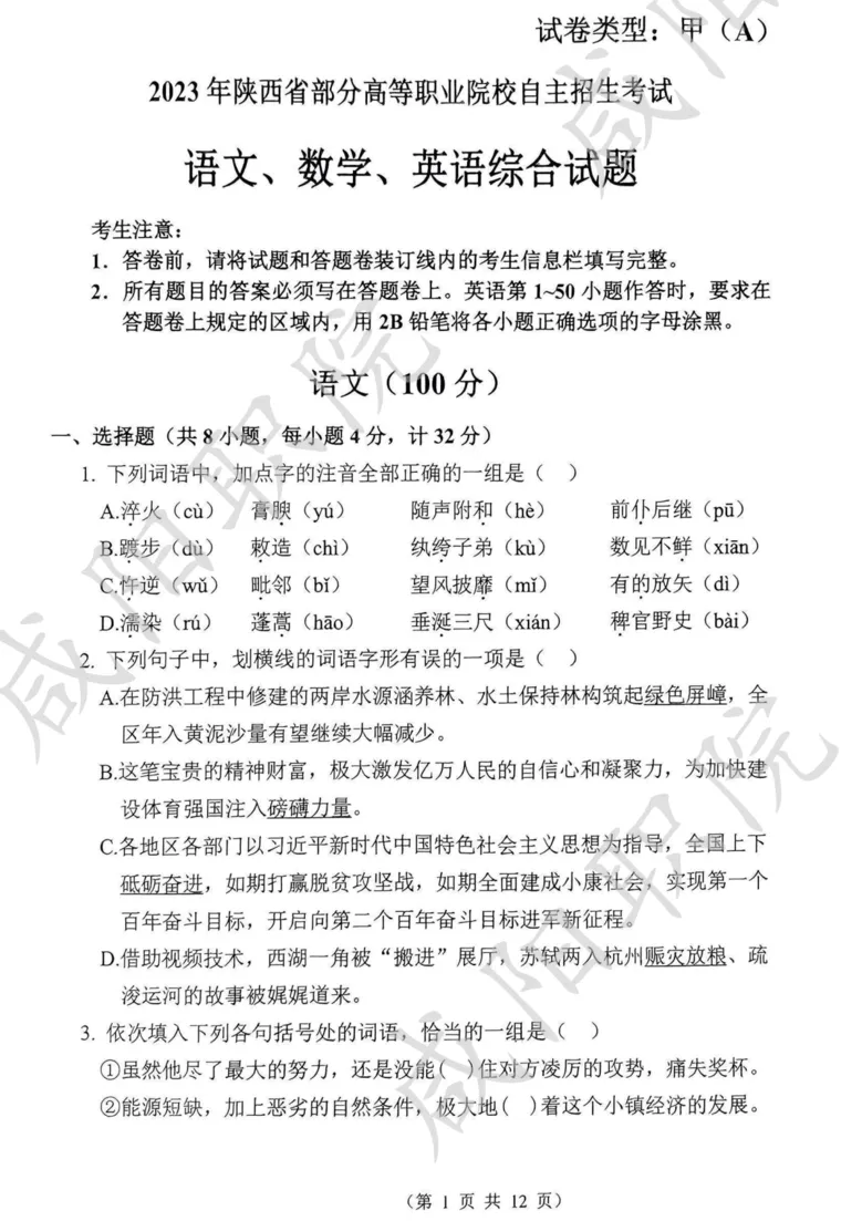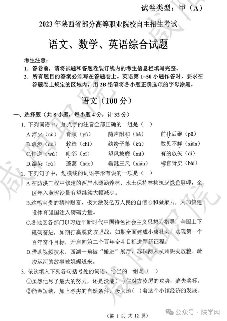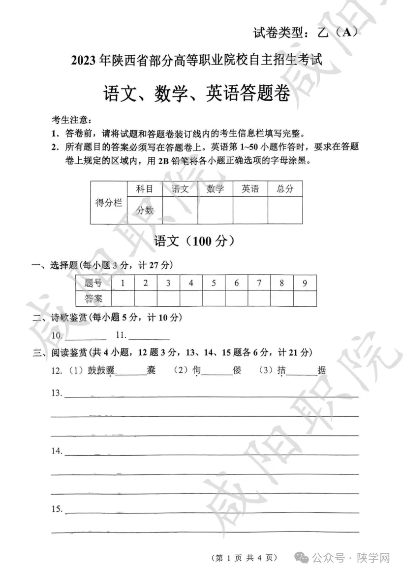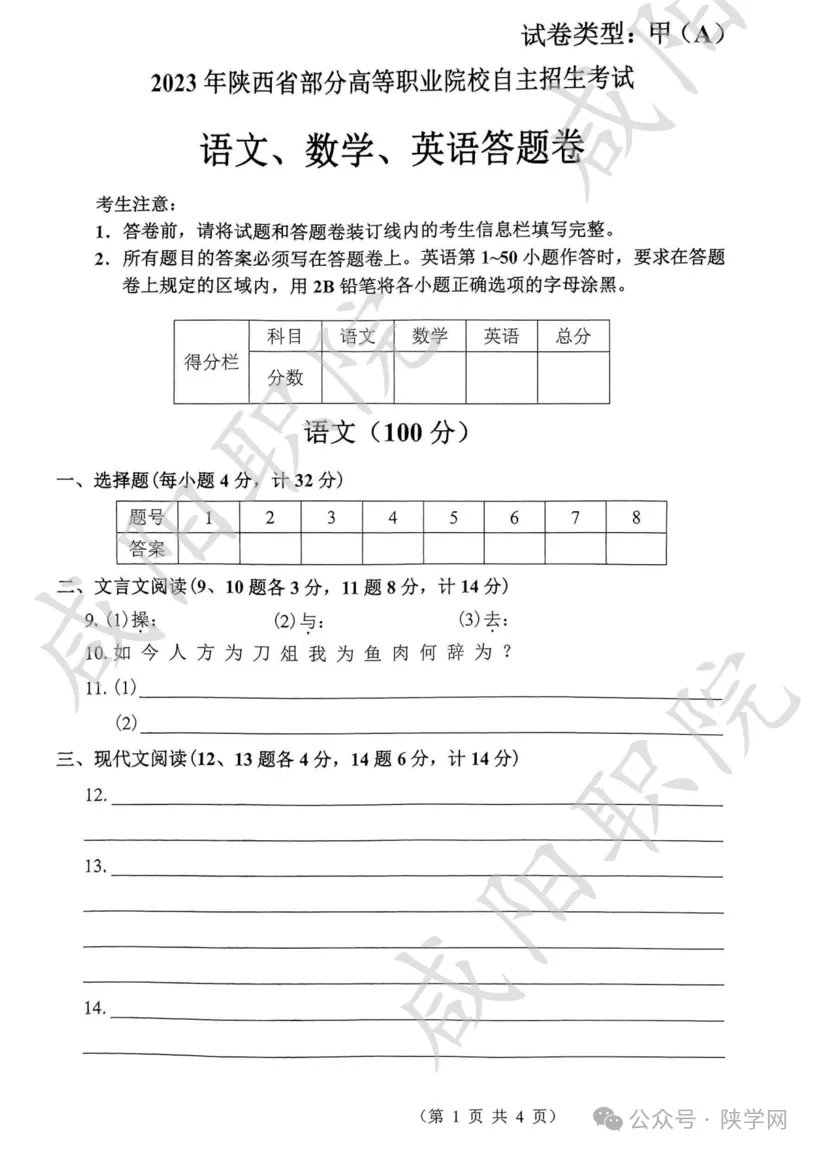 备战2026,蓄力未来!陕西省高职院校分类考试招生即将启动,为助力广大考生高效备考,我们特别整理并公布 2021-2025年陕西省示范高职单独招生考试试题及答案,供同学们自测参考,愿这份资料能为你的备考之路添一份力,助你更稳迈向理想院校。