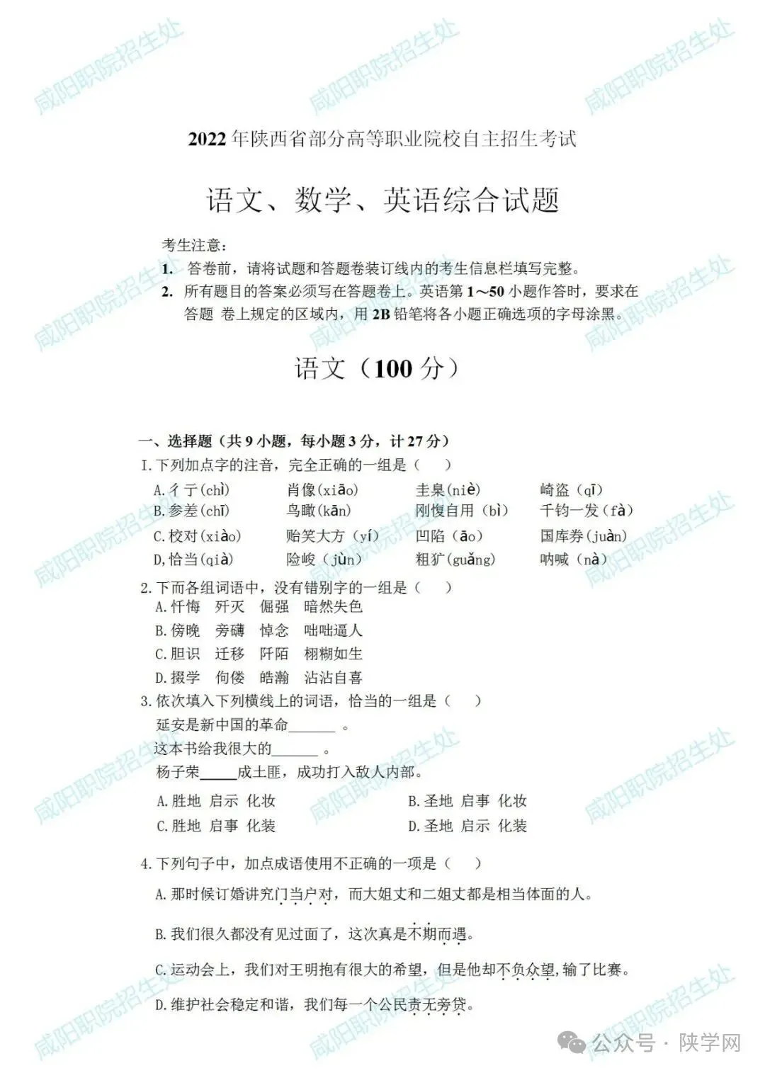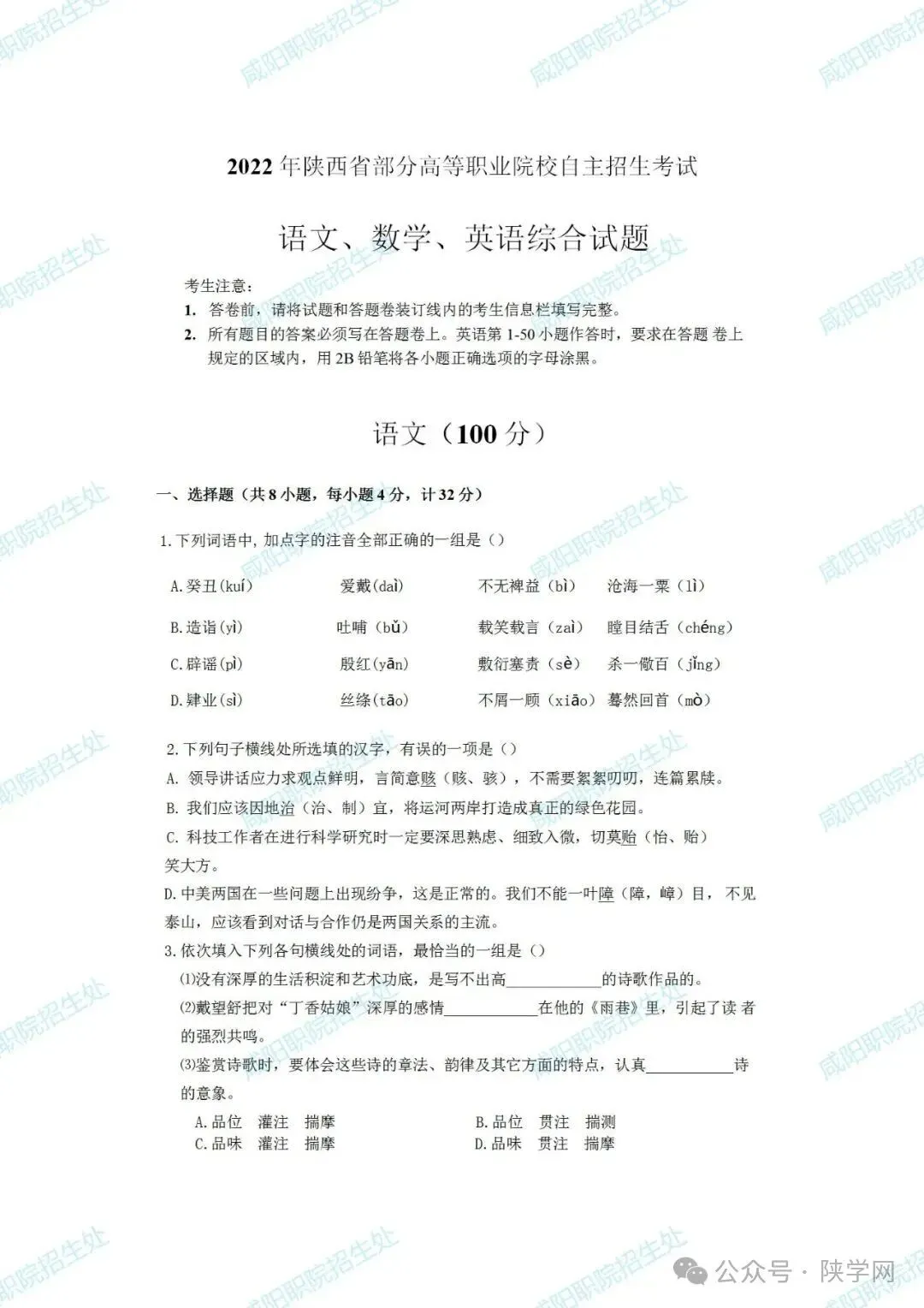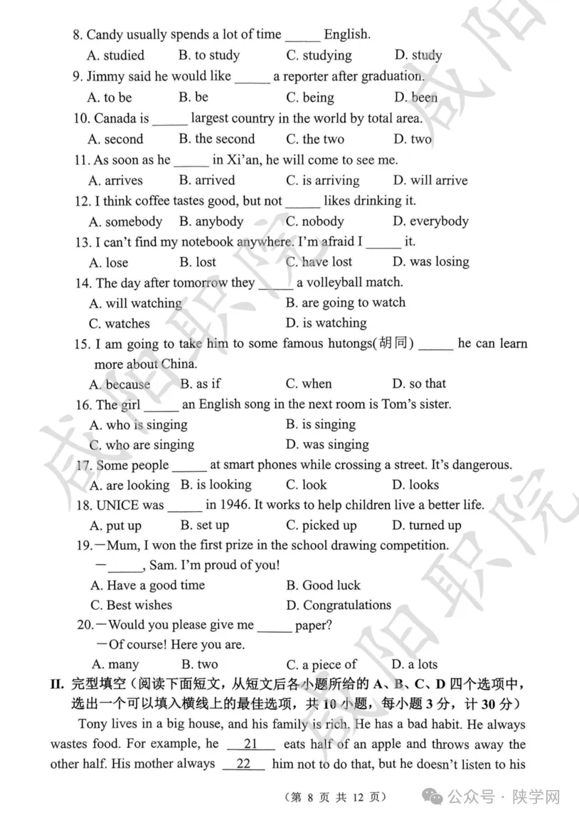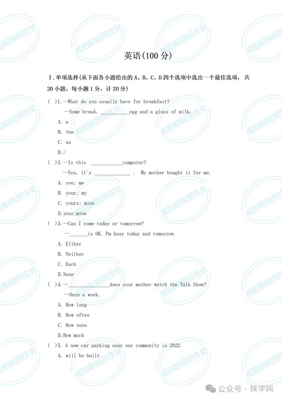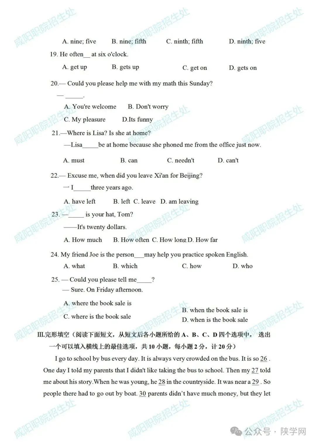 备战2026,蓄力未来!陕西省高职院校分类考试招生即将启动,为助力广大考生高效备考,我们特别整理并公布 2021-2025年陕西省示范高职单独招生考试试题及答案,供同学们自测参考,愿这份资料能为你的备考之路添一份力,助你更稳迈向理想院校。