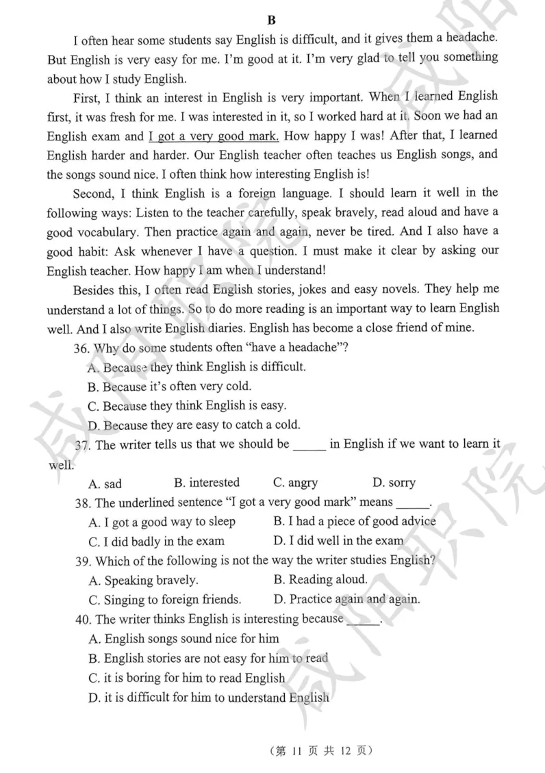 普高生试卷及答案