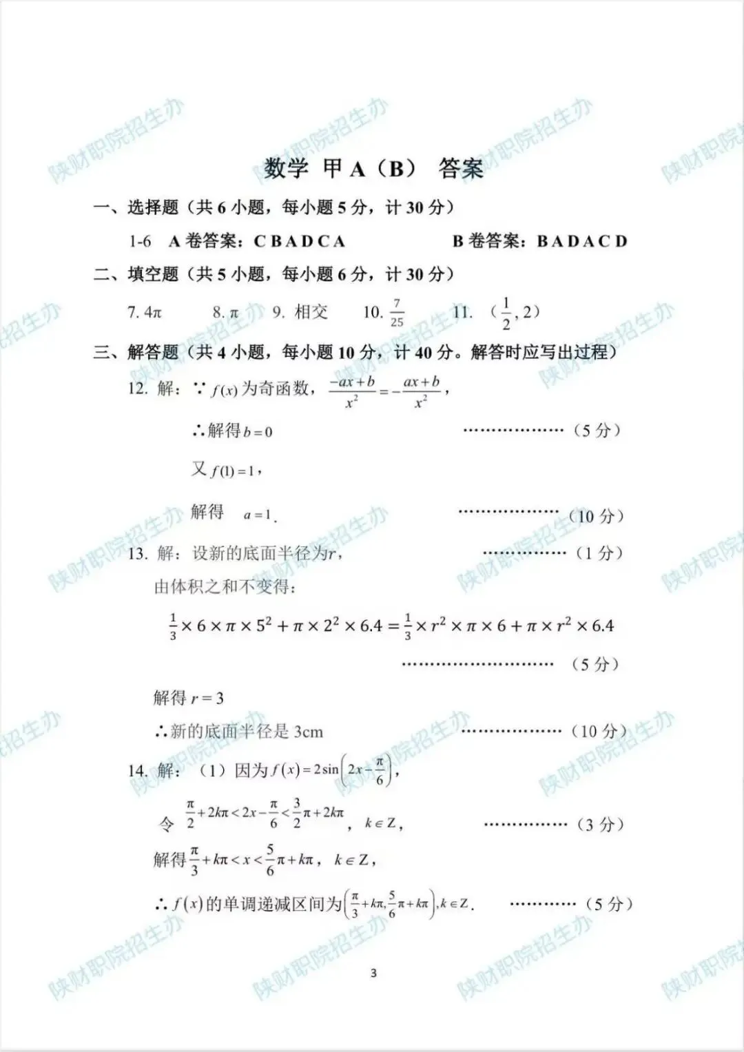 试卷类型:乙(三校生B卷)