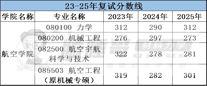 近三年,力学专业复试线先降后升,不过波动幅度不大;机械工程复试线恰好相反,先升后降,26年很可能会回升一些;航空宇航波动幅度较大,24年复试线一下降了44分,而25年仅上升了3分;和前面三个专业比,航空工程的复试线波动幅度最大,也是先下降后上升,24年下降了37分,25年上升了19分。