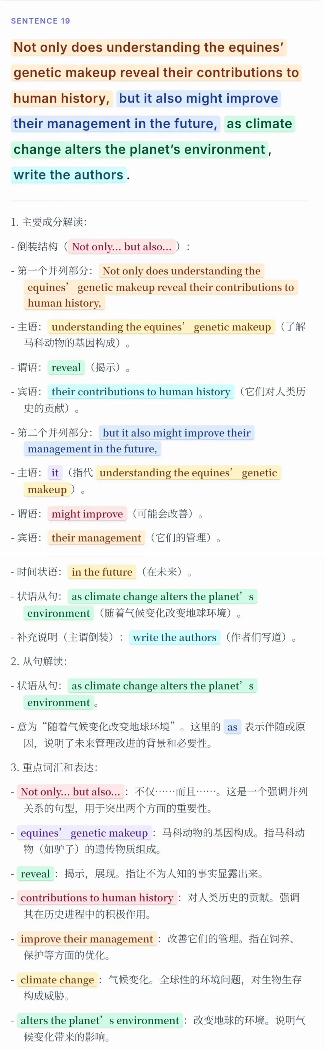 定位句: Not only does understanding the equines’ genetic makeup reveal their contributions to human history, but it also might improve their management in the future...