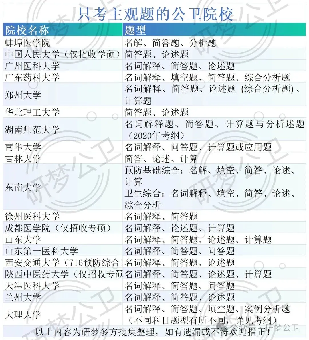 首先,让我们来看看都有哪些公卫院校只考主观题吧。