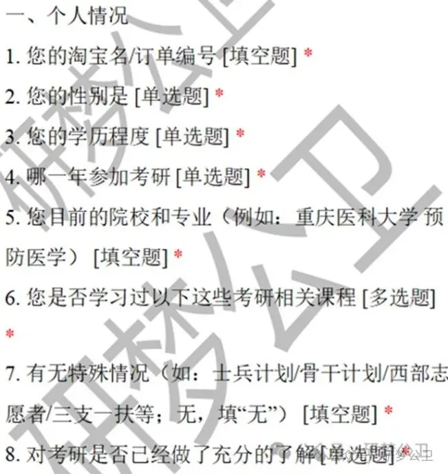 根据自己实际情况填写,表明本次服务诉求和预期 (问卷部分问题展示)