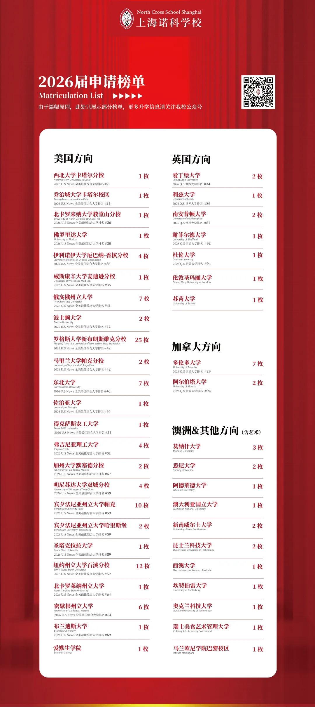 年关将至,捷报频传!上海诺科学校学子海外大学录取喜讯接连而至,在2026申请季斩获累累硕果。
