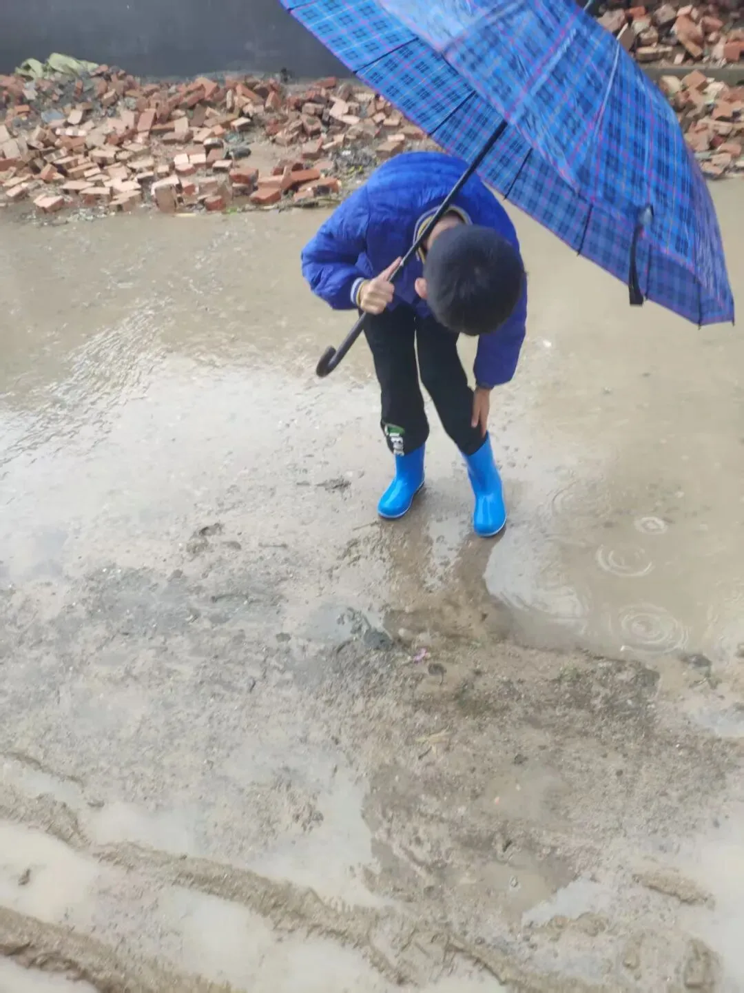 孩子玩雨的快乐,还担心弄湿裤子,感动……