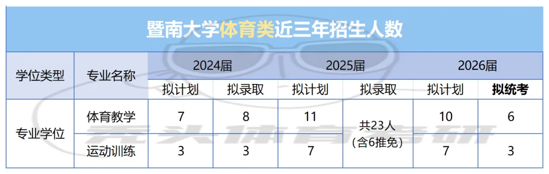 2026年暨南大学体育类研究生拟招收全日制硕士研究生17名,体育教学10人(统招6人),运动训练7人(统招3人),最终招生人数以教育部正式批准计划数为准。