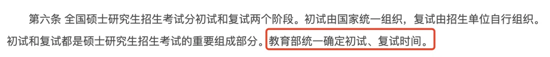 今年和去年都提到【全国硕士研究生招生考试分初试和复试两个阶段。初试由国家统一组织,复试由招生单位自行组织。初试和复试都是硕士研究生招生考试的重要组成部分。教育部统一确定初试、复试时间】