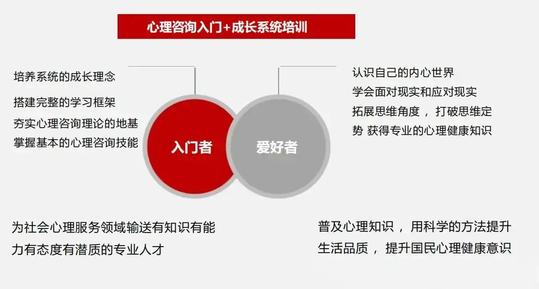 课程设计参考了《心理咨询师国家职业标准》,涵盖心理咨询所需的理论知识、操作技能和职业伦理;授课老师都是行业大咖,可以让你真正学到东西,筑牢个人专业基础,获得个人成长。