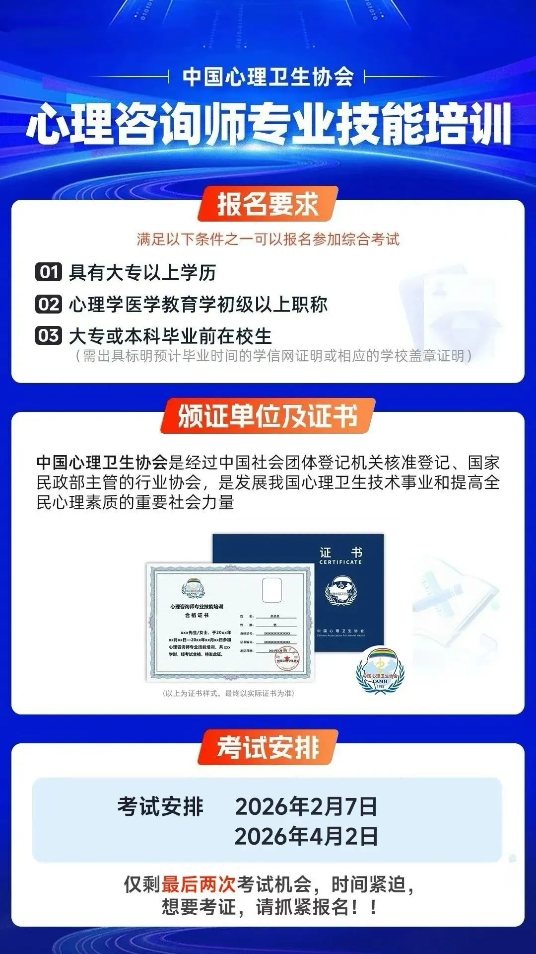 4月2日考试!2026年心理咨询师全国统一最新报考条件、报名方式及流程详解~(最新)
