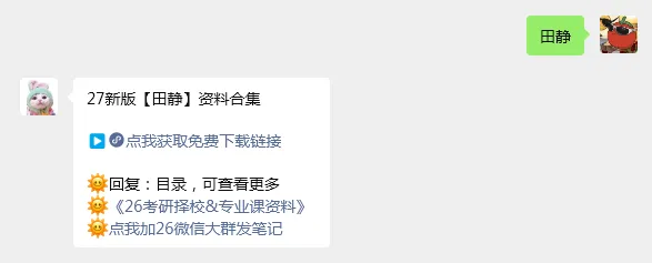 公众号研料库后台回复:网盘群,并按照要求发布推荐评论、海报、小红书帖文宣传公众号,完成任务后上传截图,管理员审核通过后即可免费进入27考研网盘群。✅